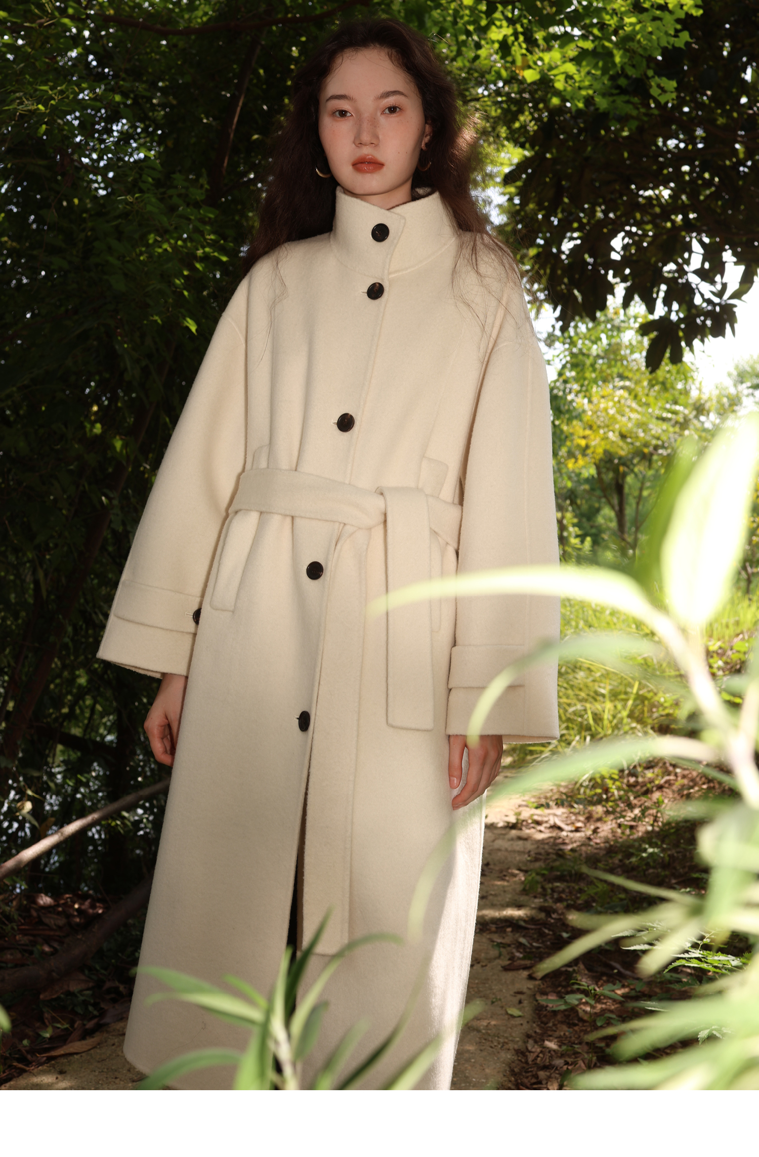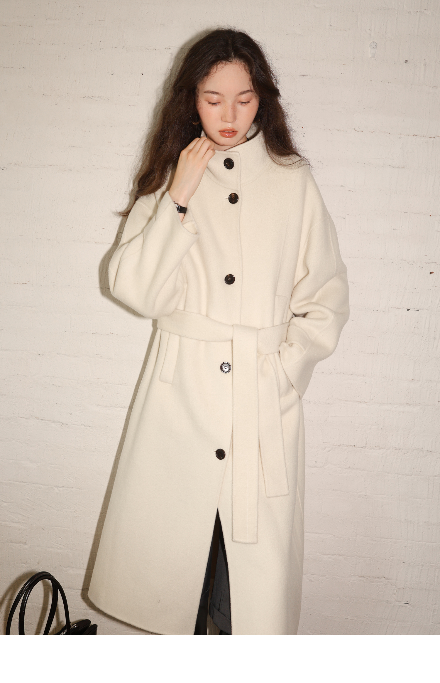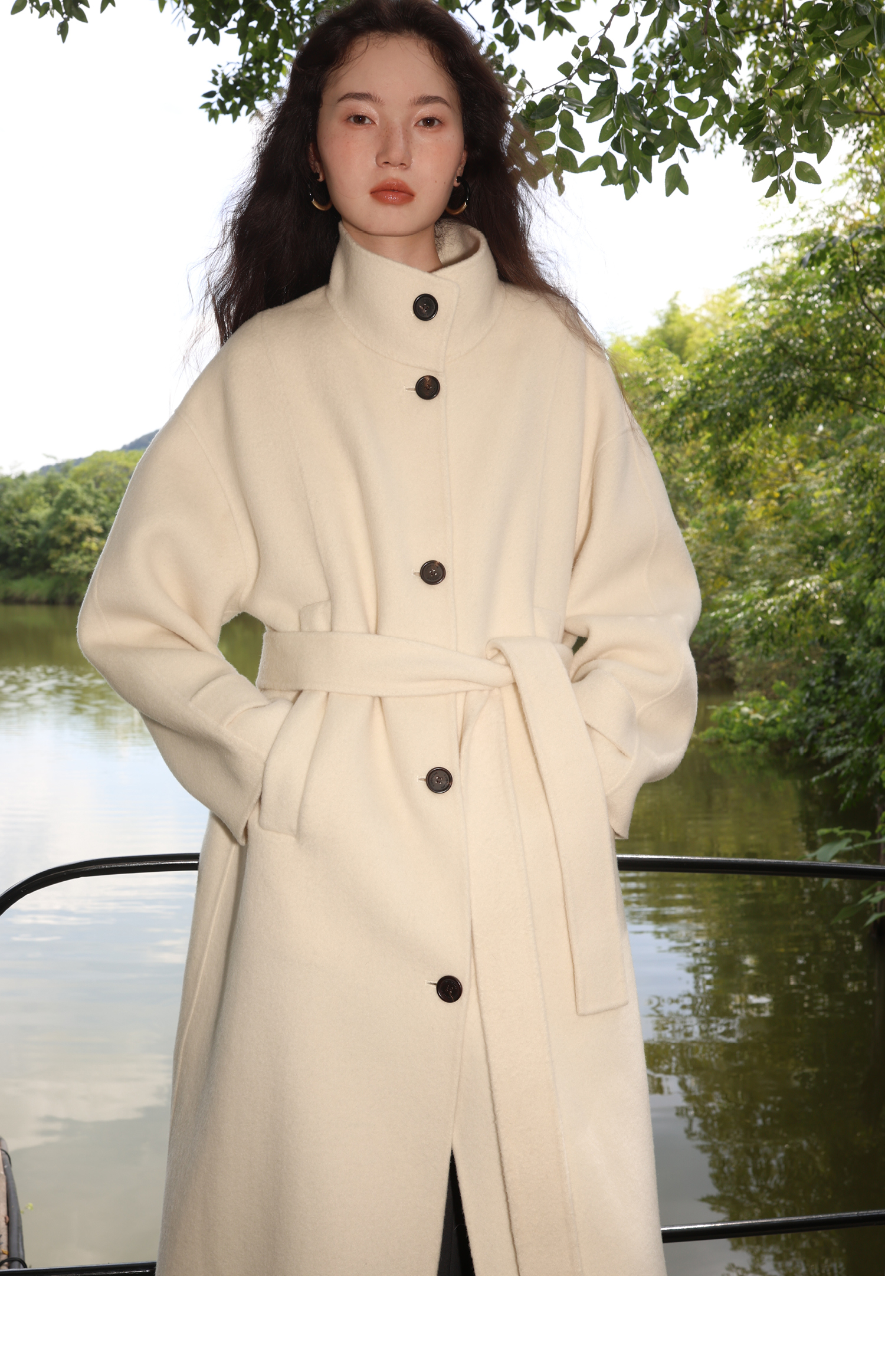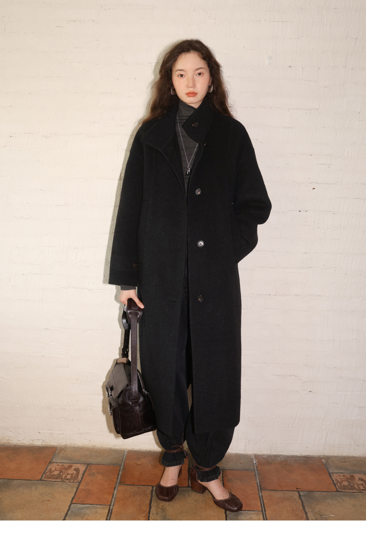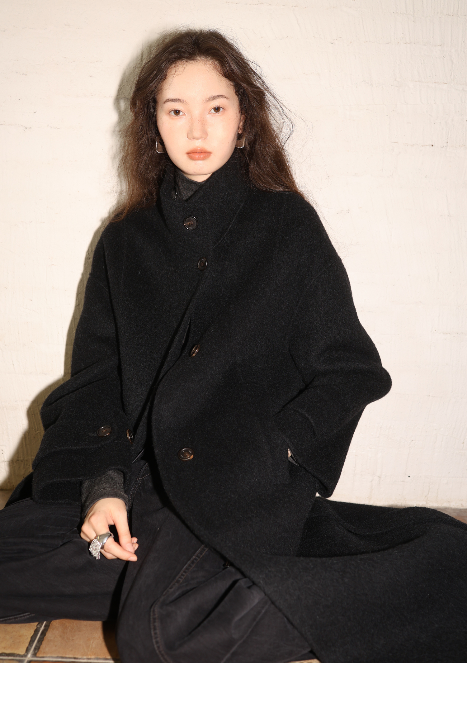 素舶 牦牛绒绵羊毛 分割线立领长款双面呢大衣
