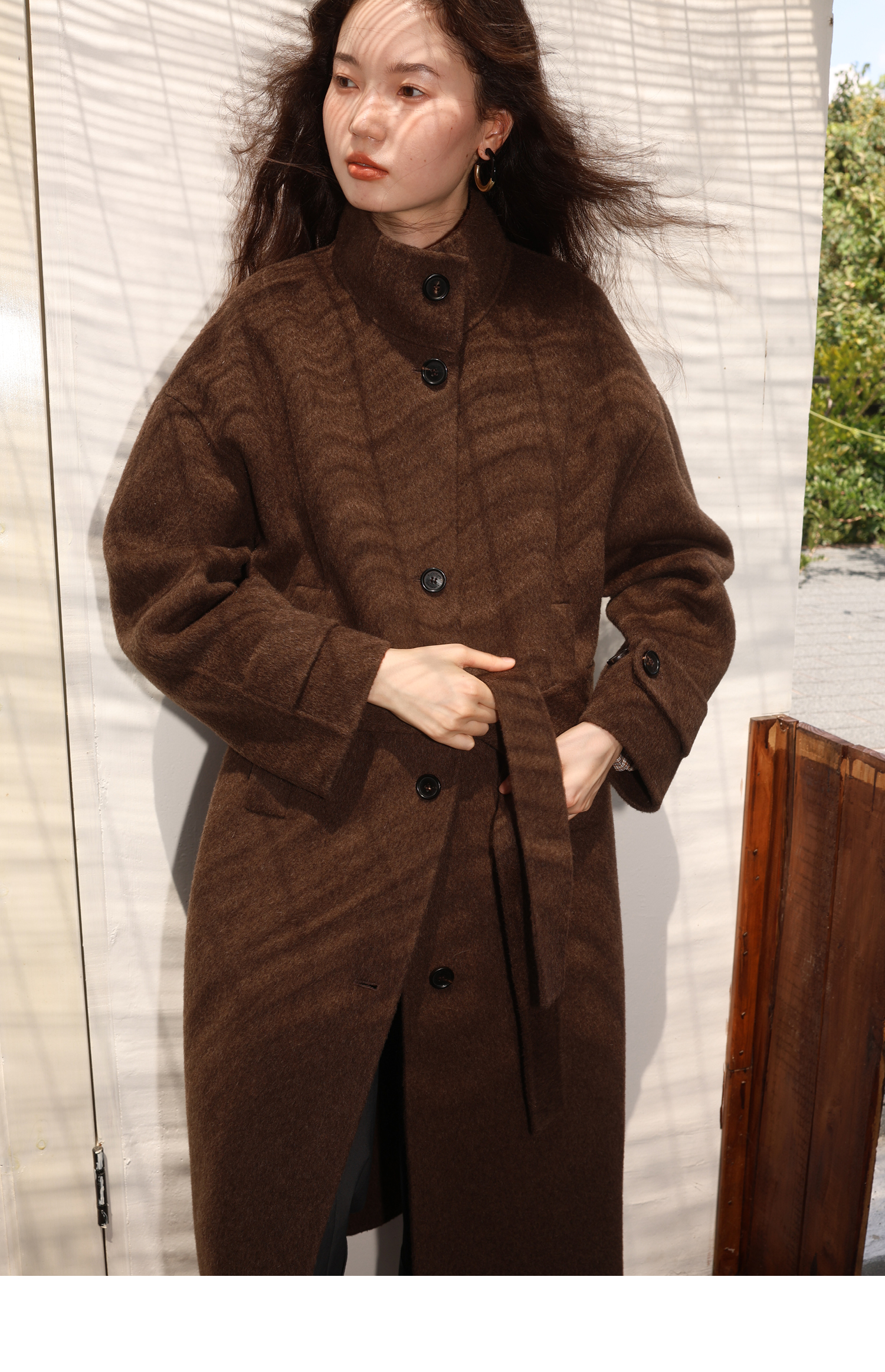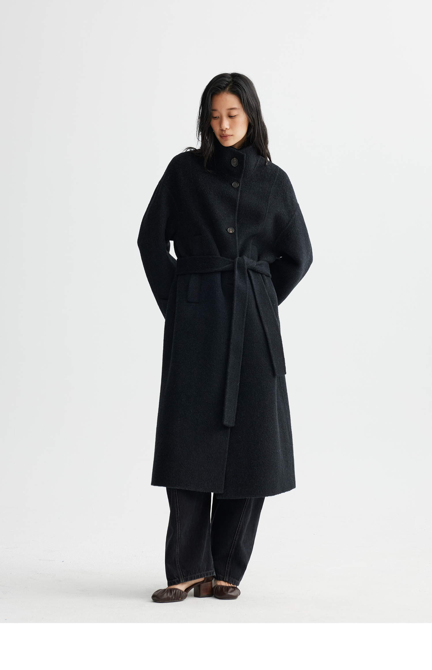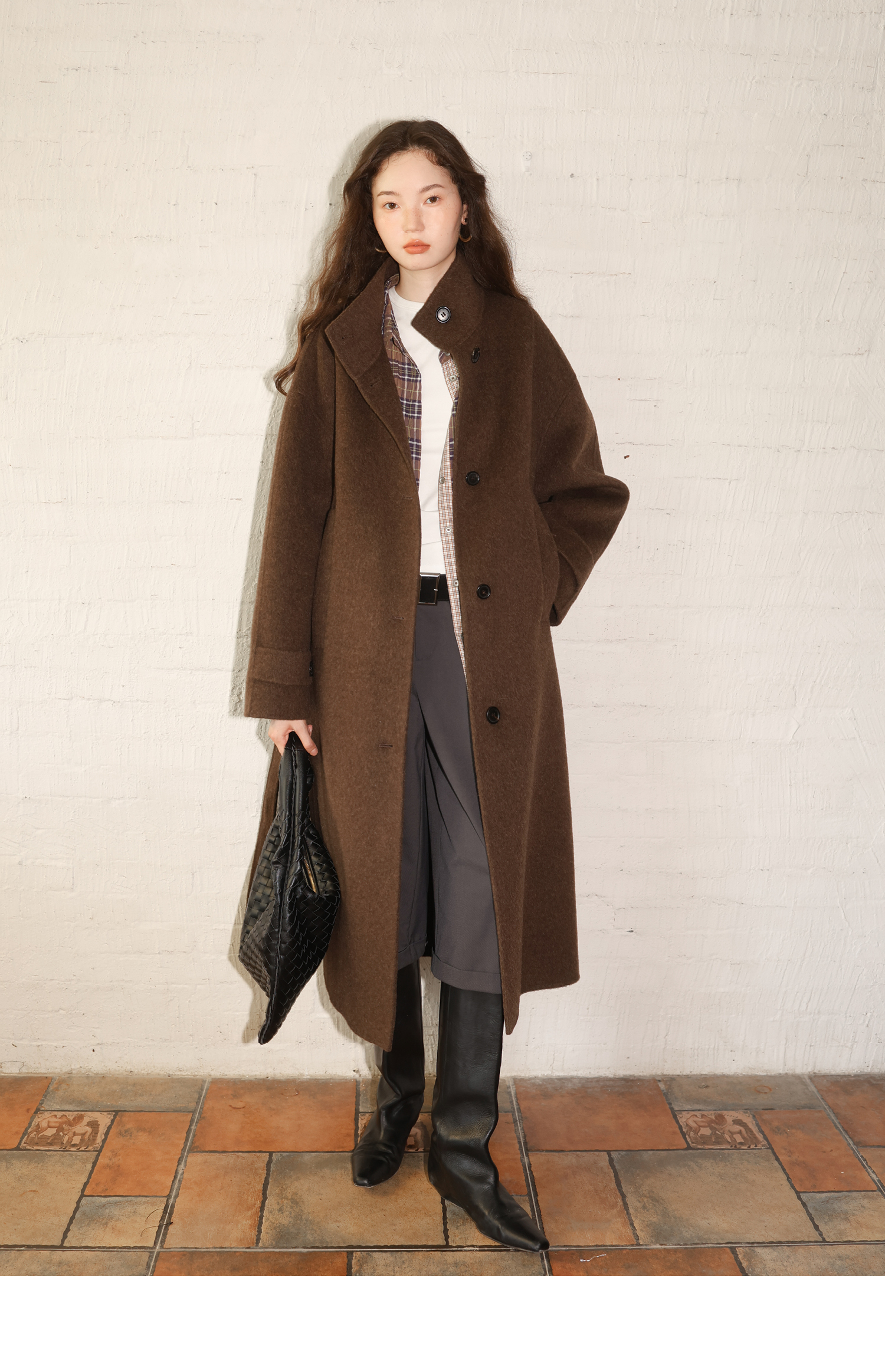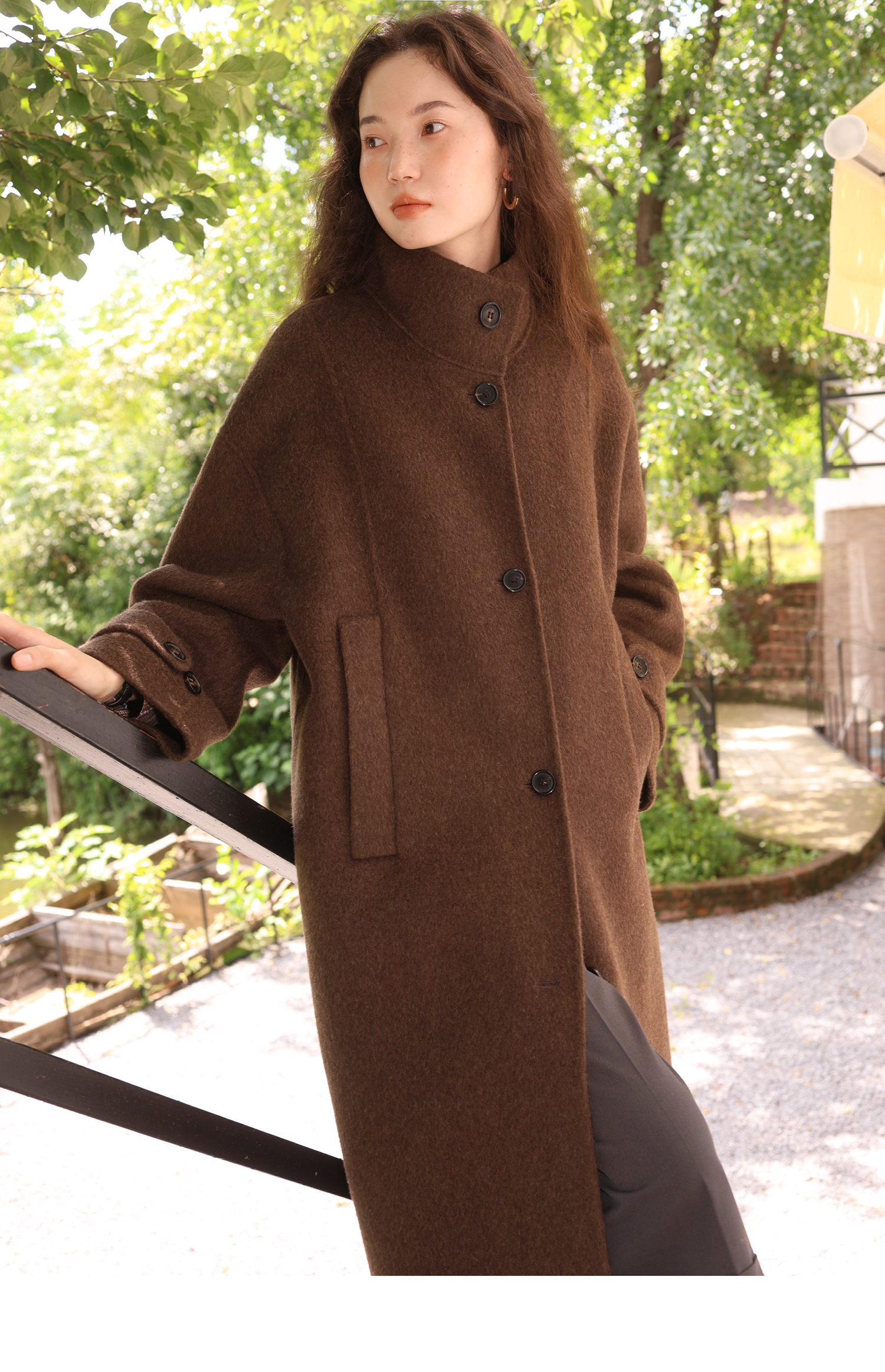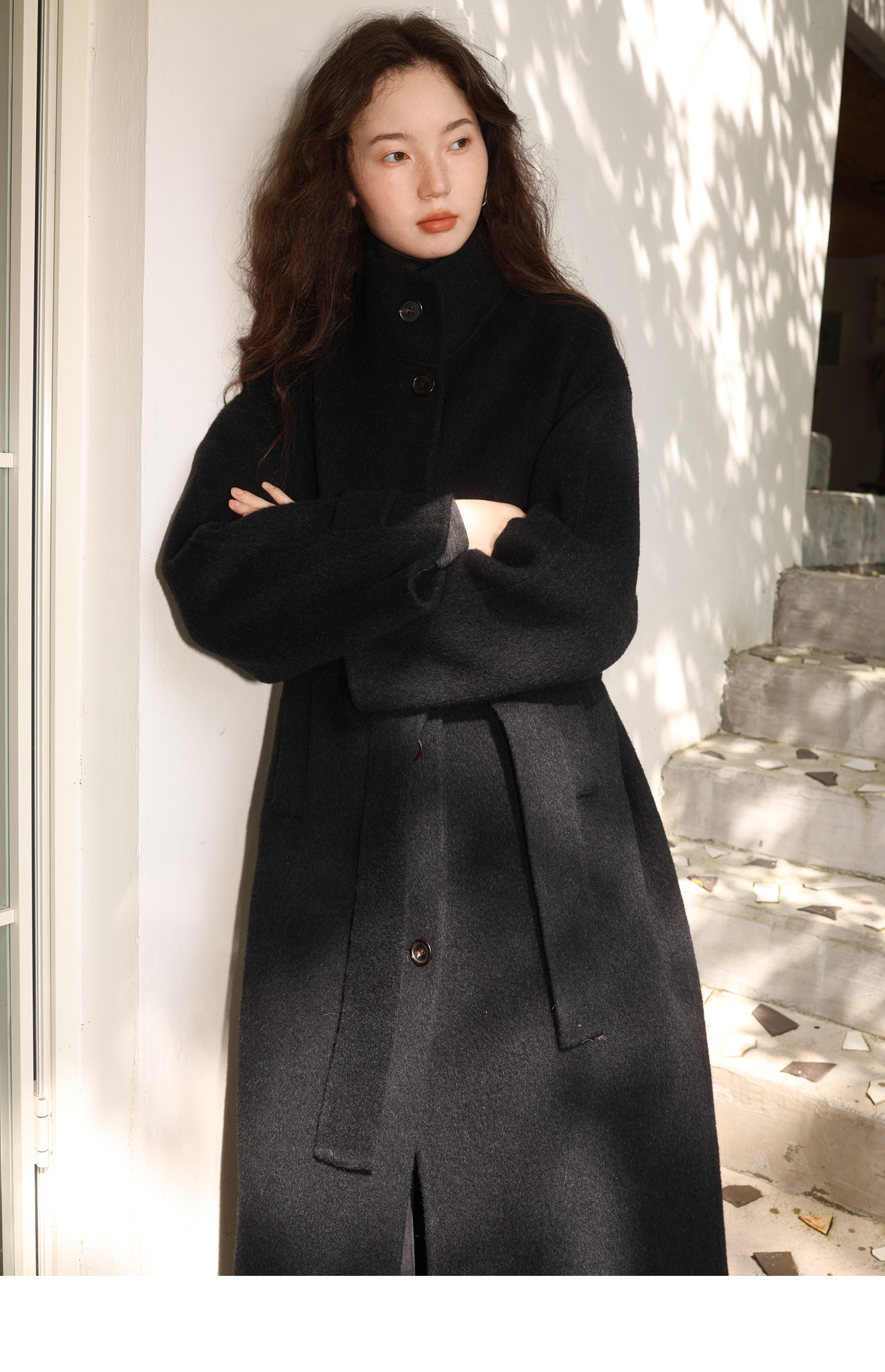 素舶 牦牛绒绵羊毛 分割线立领长款双面呢大衣