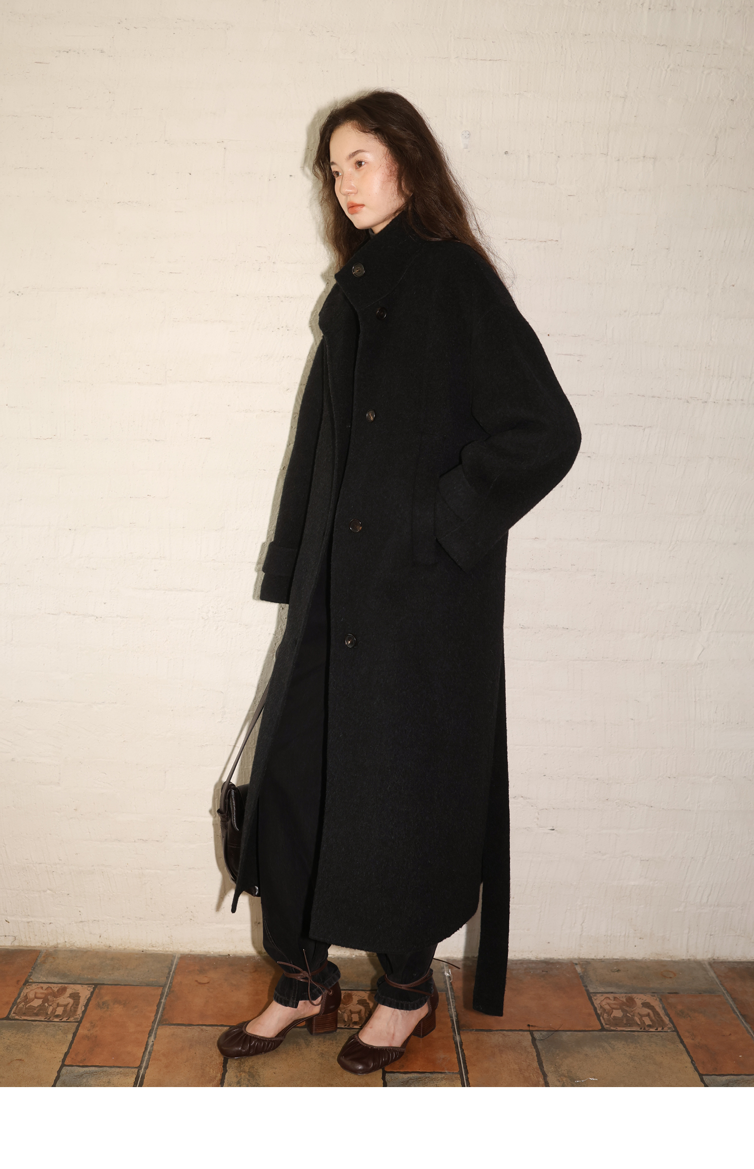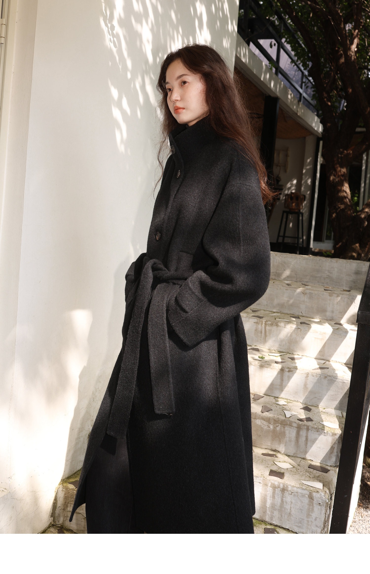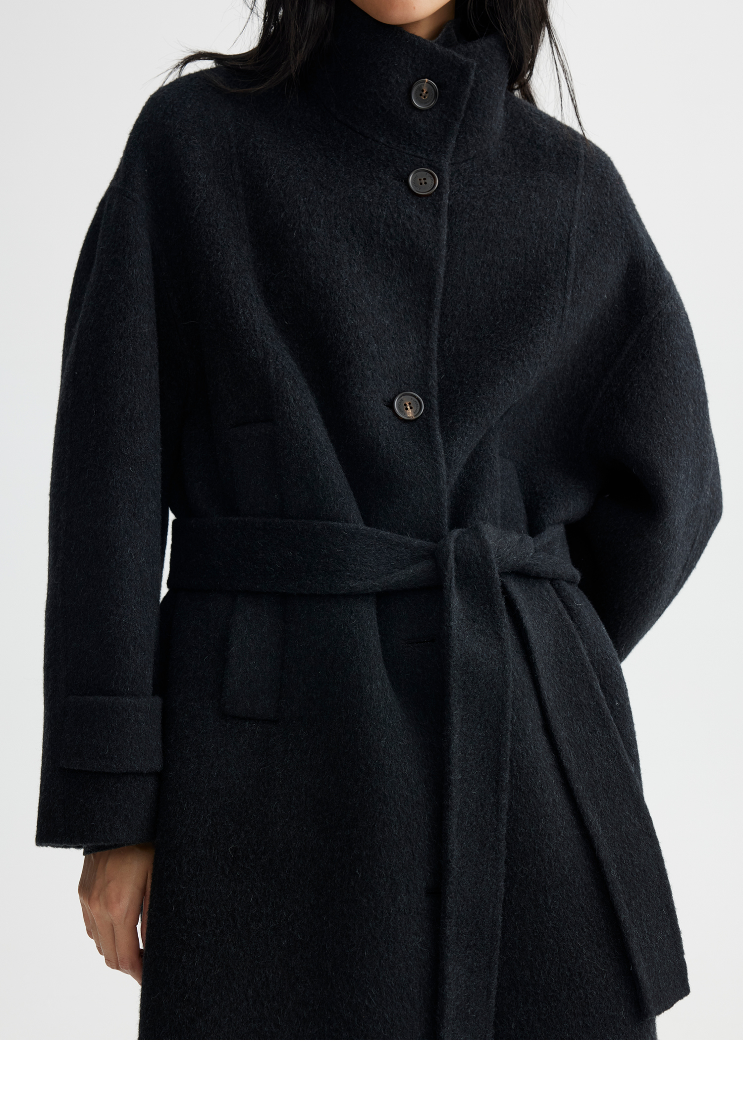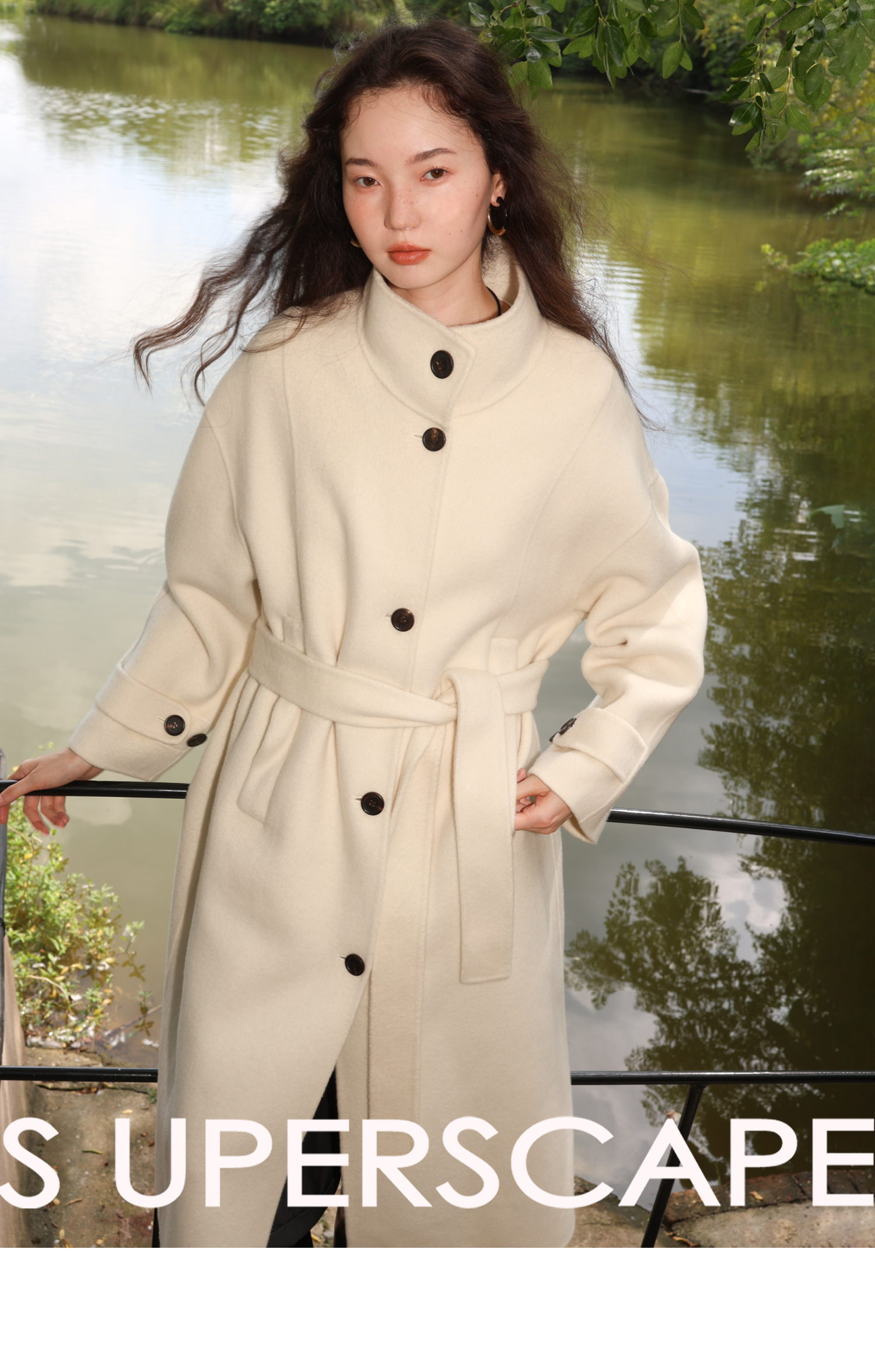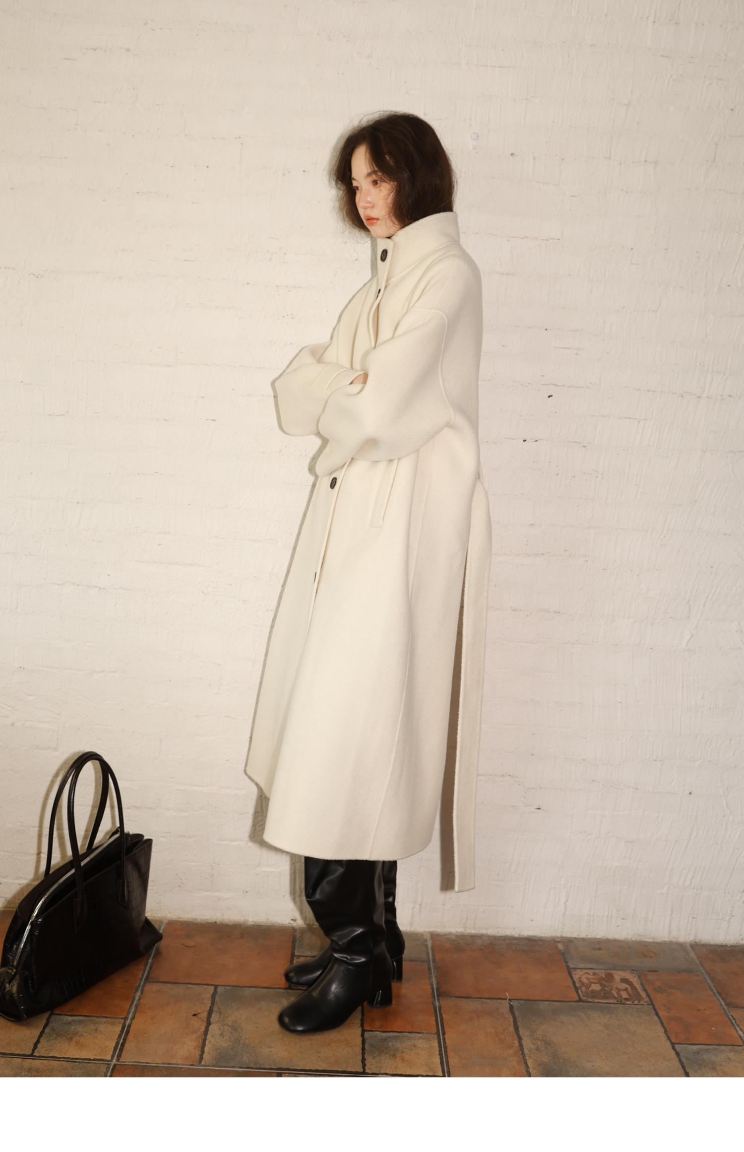 素舶 牦牛绒绵羊毛 分割线立领长款双面呢大衣