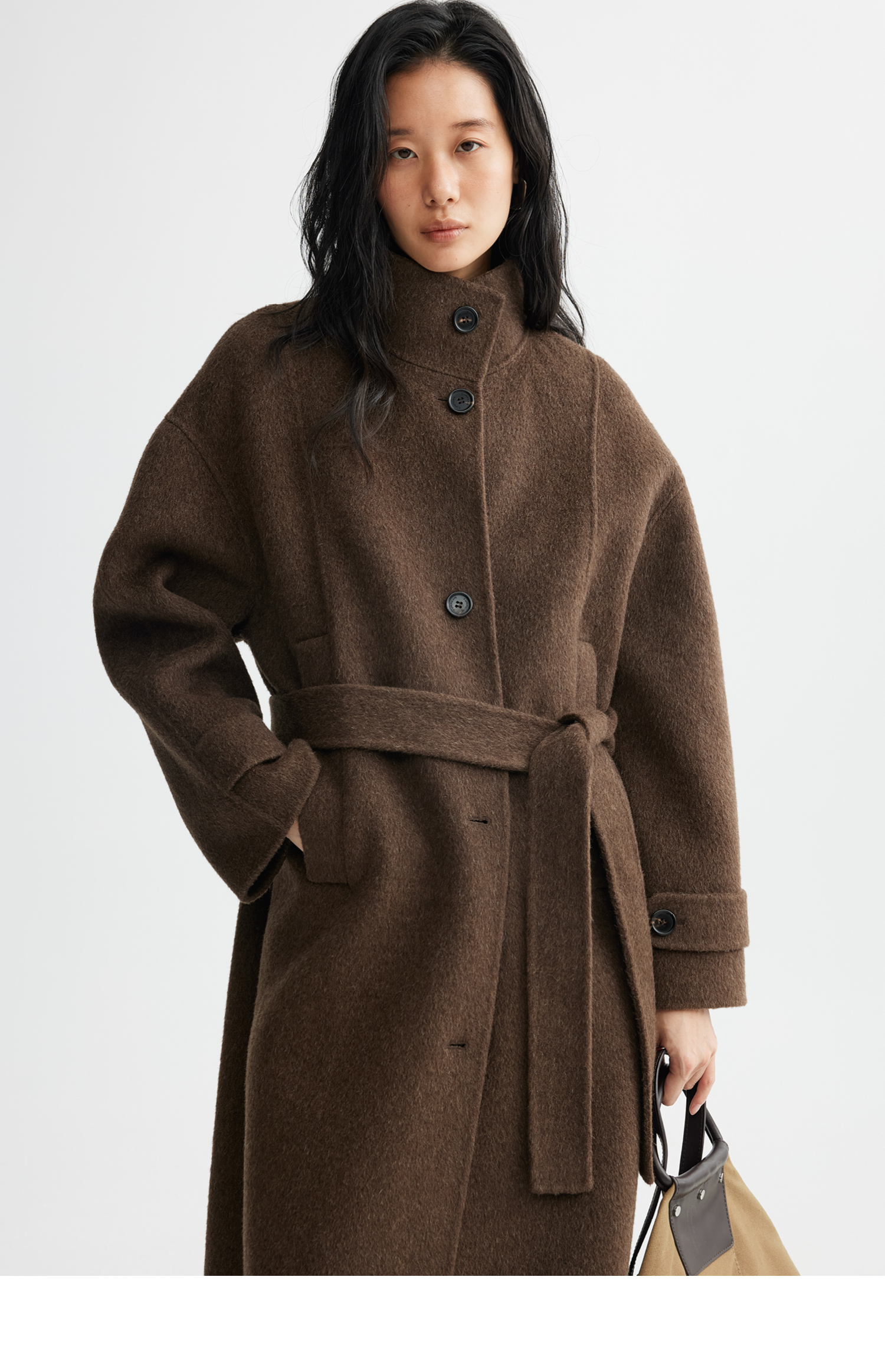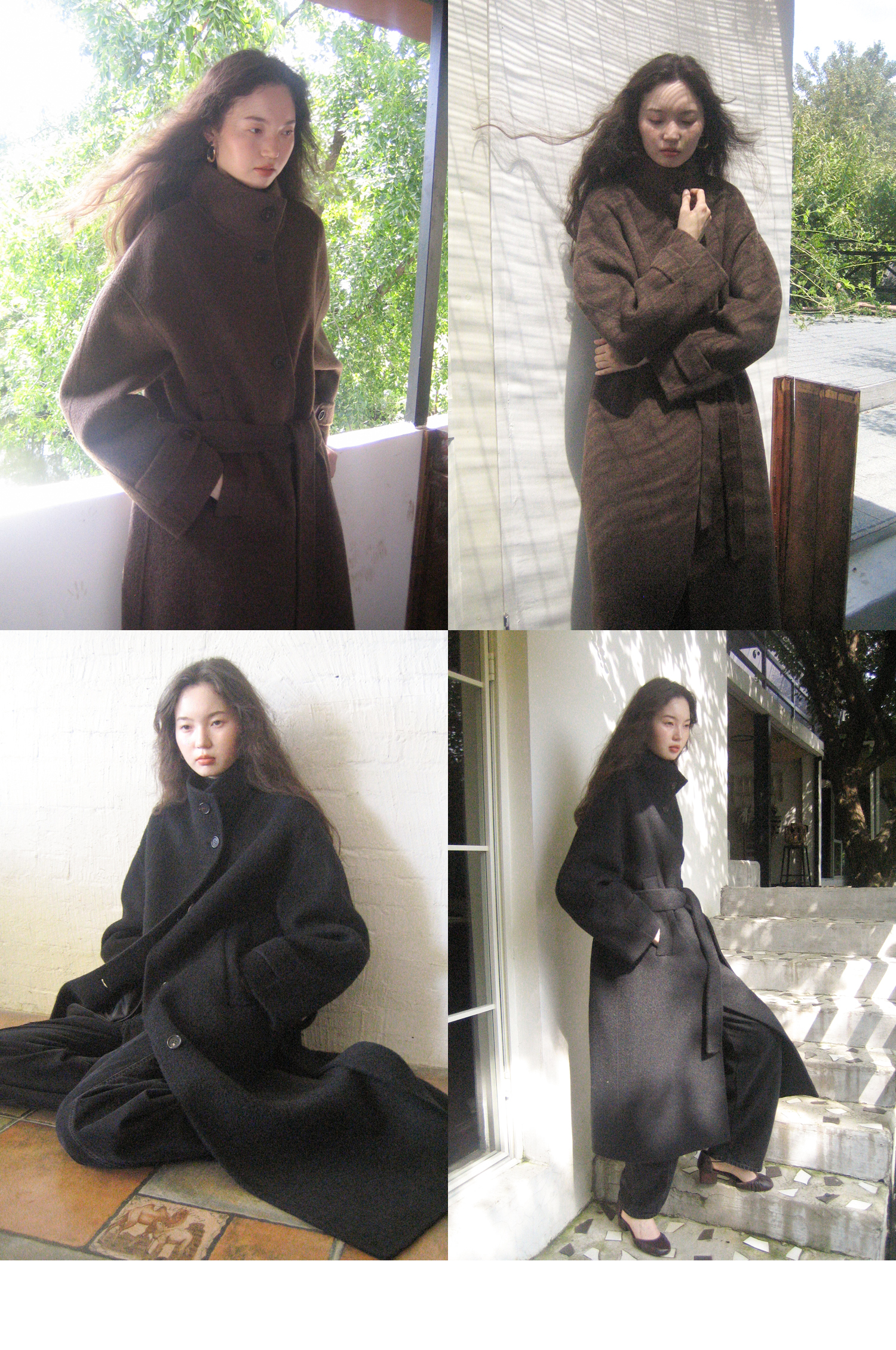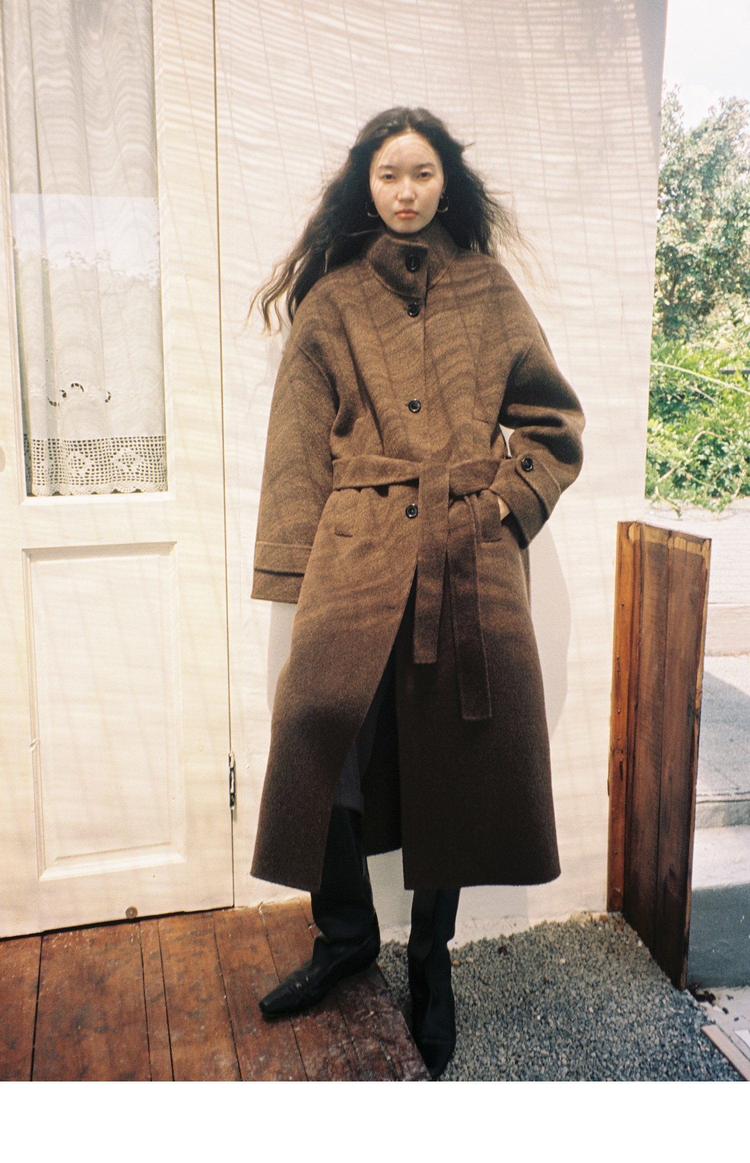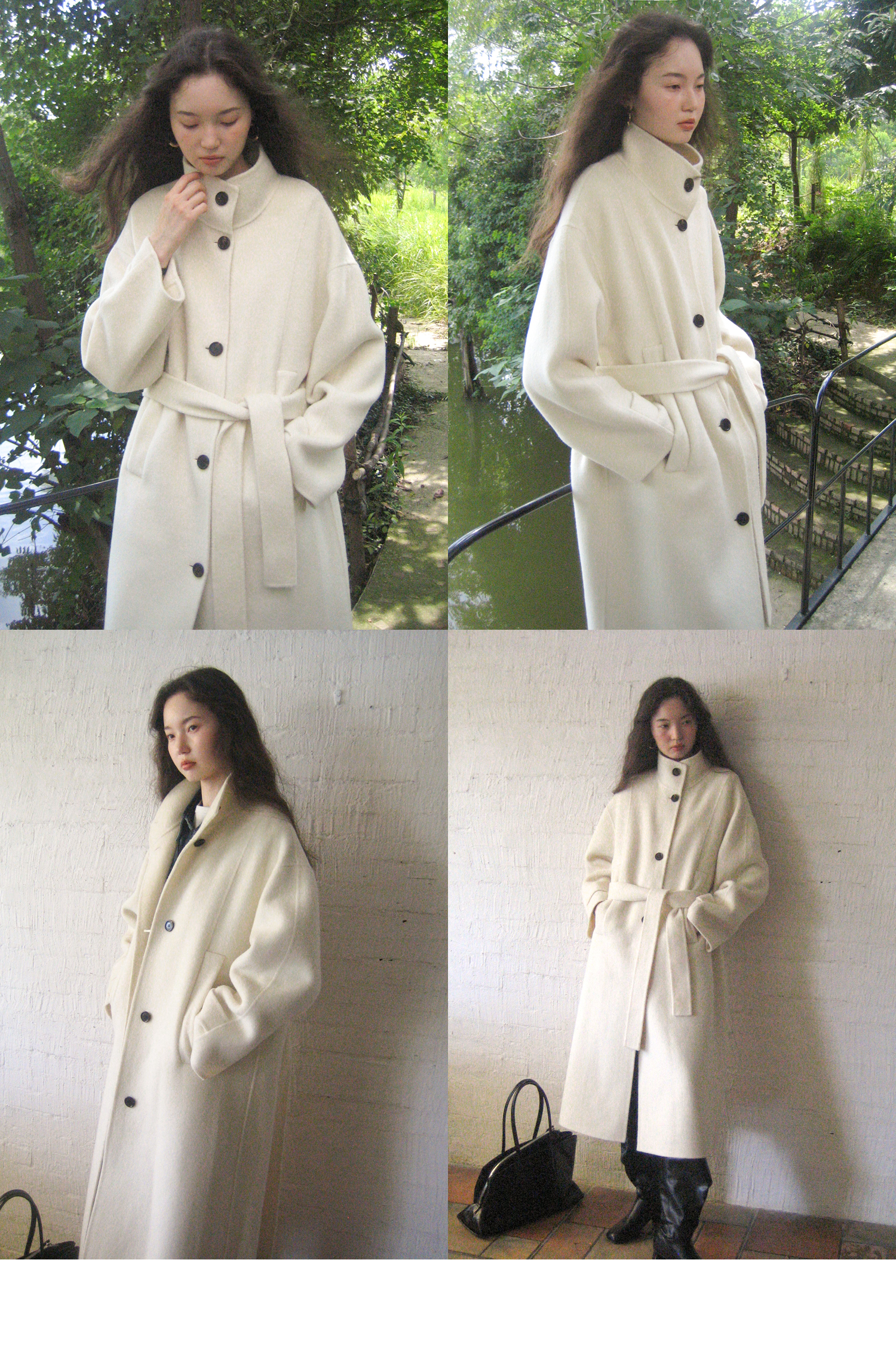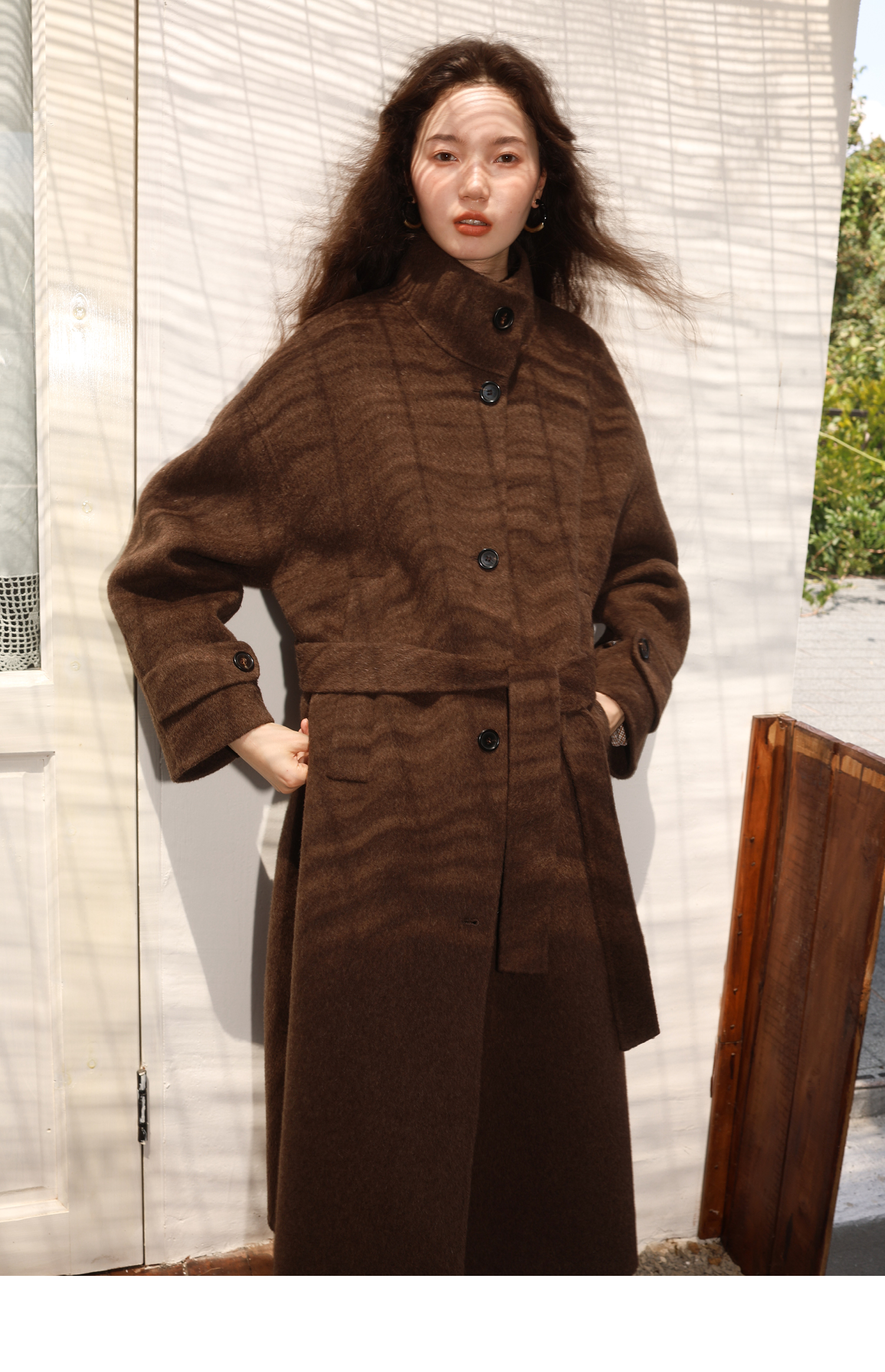 素舶 牦牛绒绵羊毛 分割线立领长款双面呢大衣
