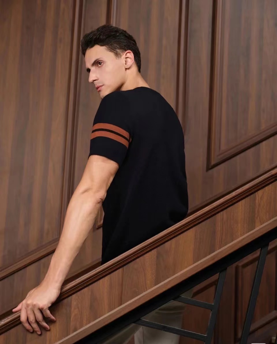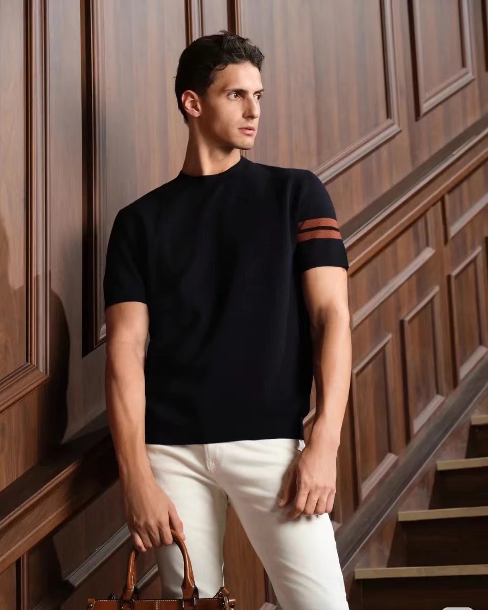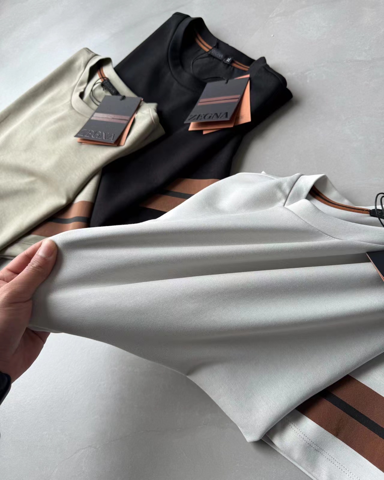 26ss夏季新款圆领运动休闲短袖T恤,采用240克天丝云感空气层面料取材与可再生木源的自然环保的绿色纤维素中空结构设计外层排汗面,通过排汗微型槽,快速导出排至衣服表面扩散蒸发内层贴肤面,不让汗水滞留,不易反渗,减少粘腻保持肌肤干爽。云朵般的舒适触感定织定染/周期长达3个月天然纤维纱线与高科技融合交织出高密度新型三明治空气层四面弹面料搭配精典无痕撞色织带简约时尚,低调不失活力