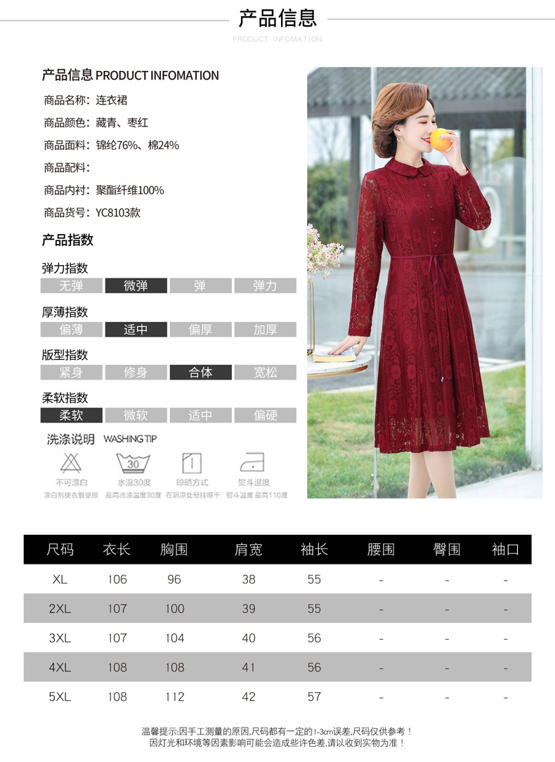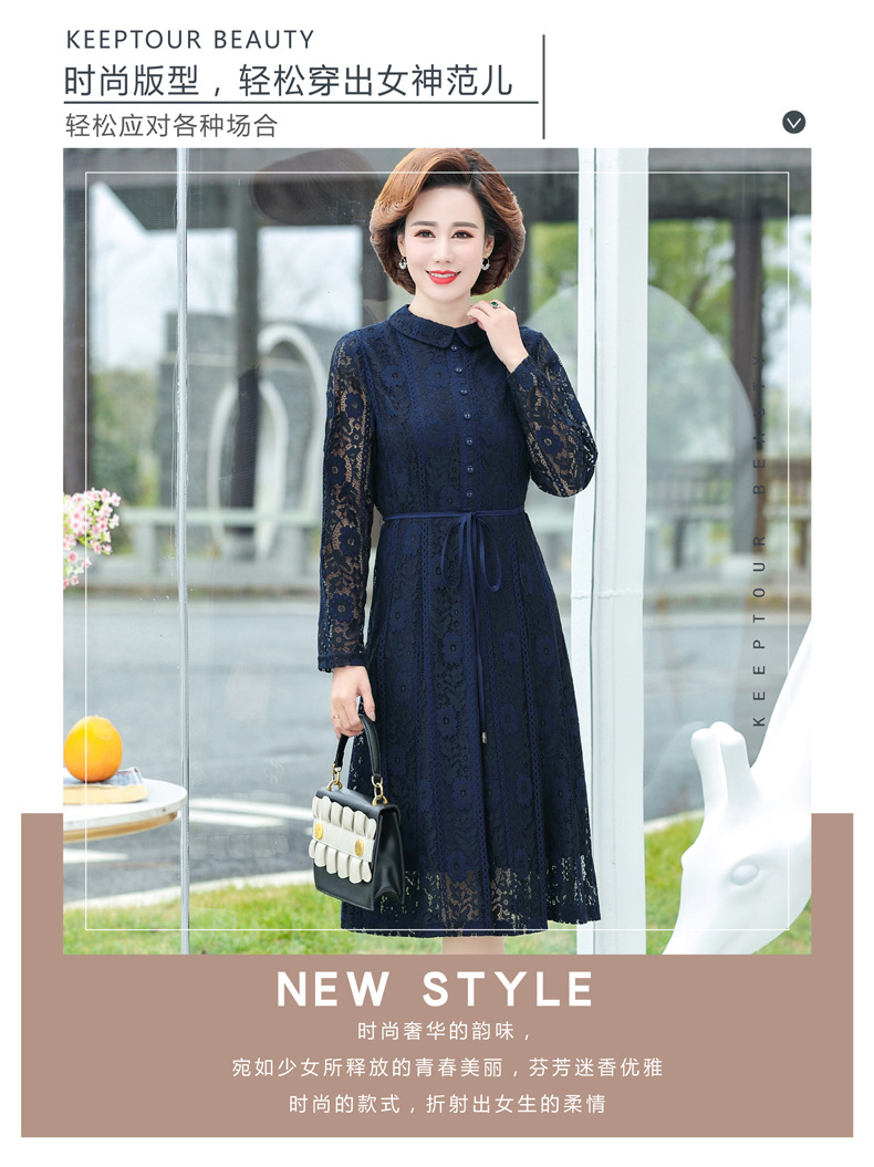 YCE A945-8103 蕾丝收腰显瘦裙中长款气质连衣裙【优】