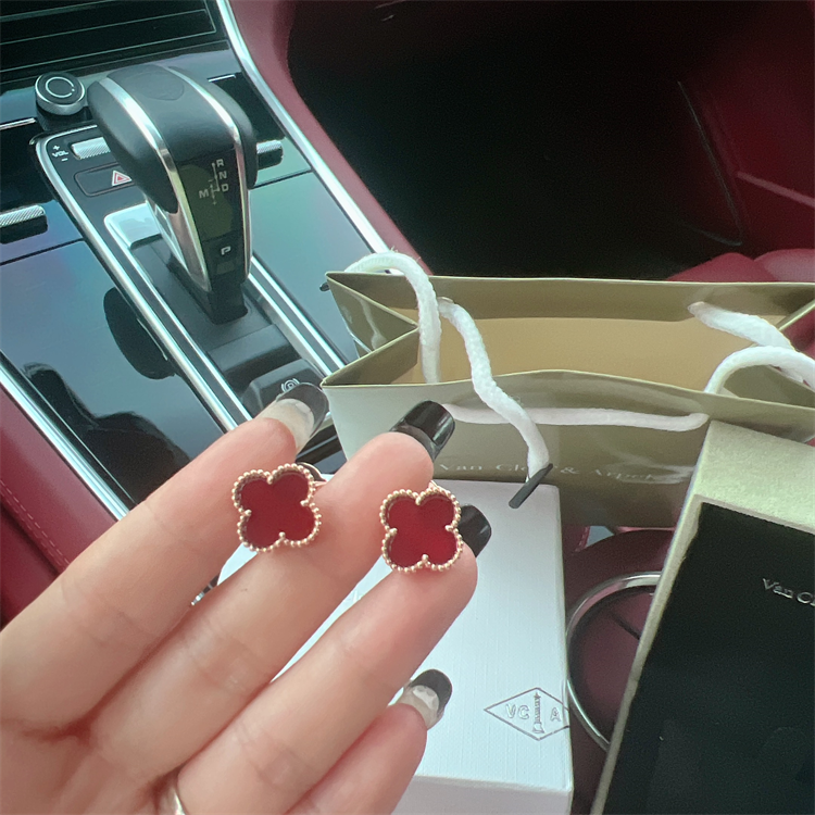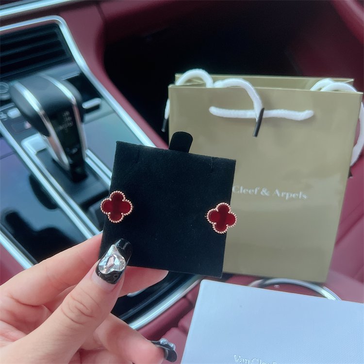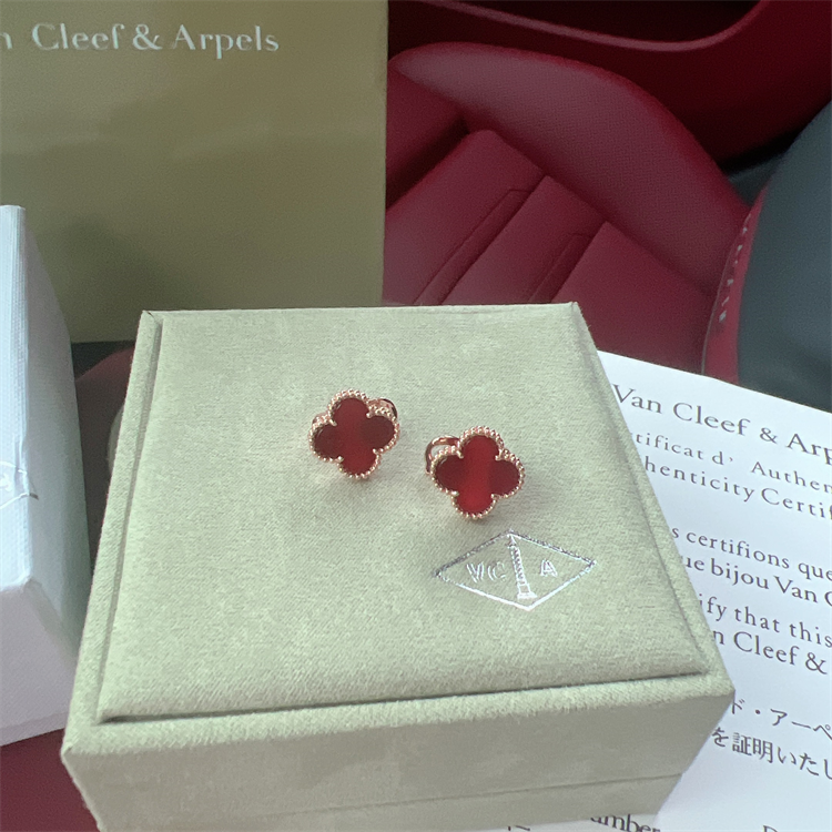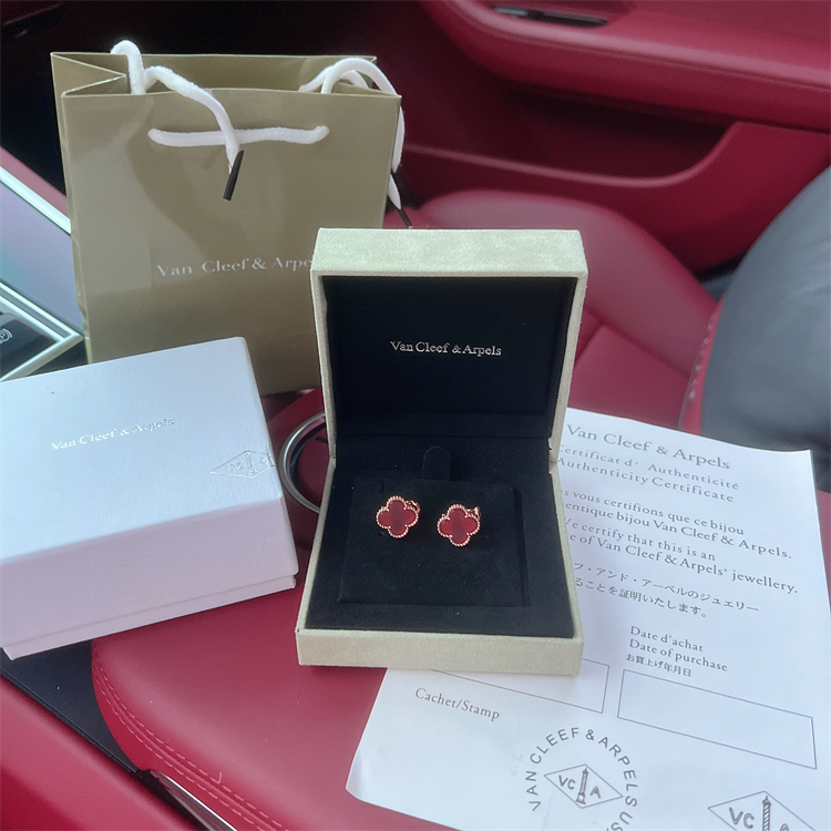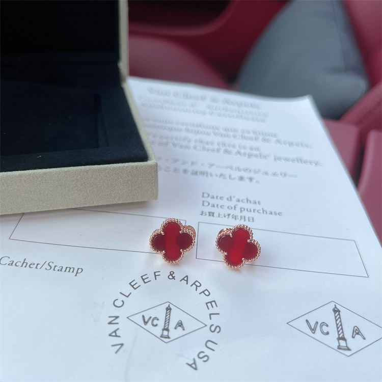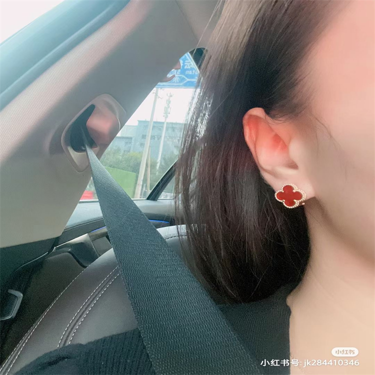 代购级品质 梵克雅宝/vca四叶草中号经典红贝母耳钉、每年热卖的爆款925纯银镀金材质。镶嵌天然红玉髄,天然石金货切工,无隙镶嵌。防过敏!最高品质 配专柜全套包装!