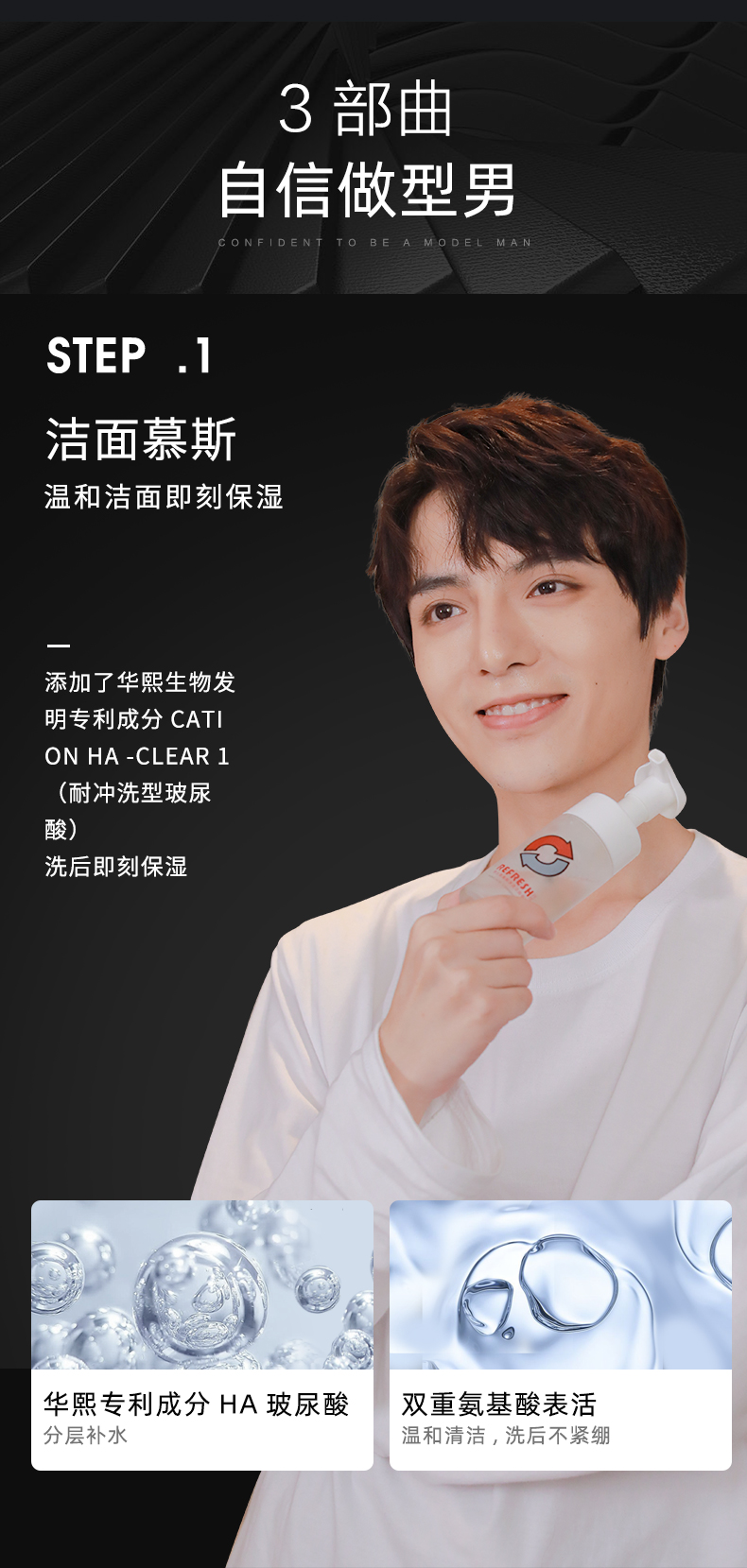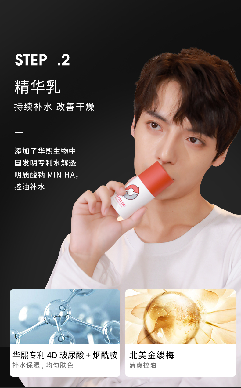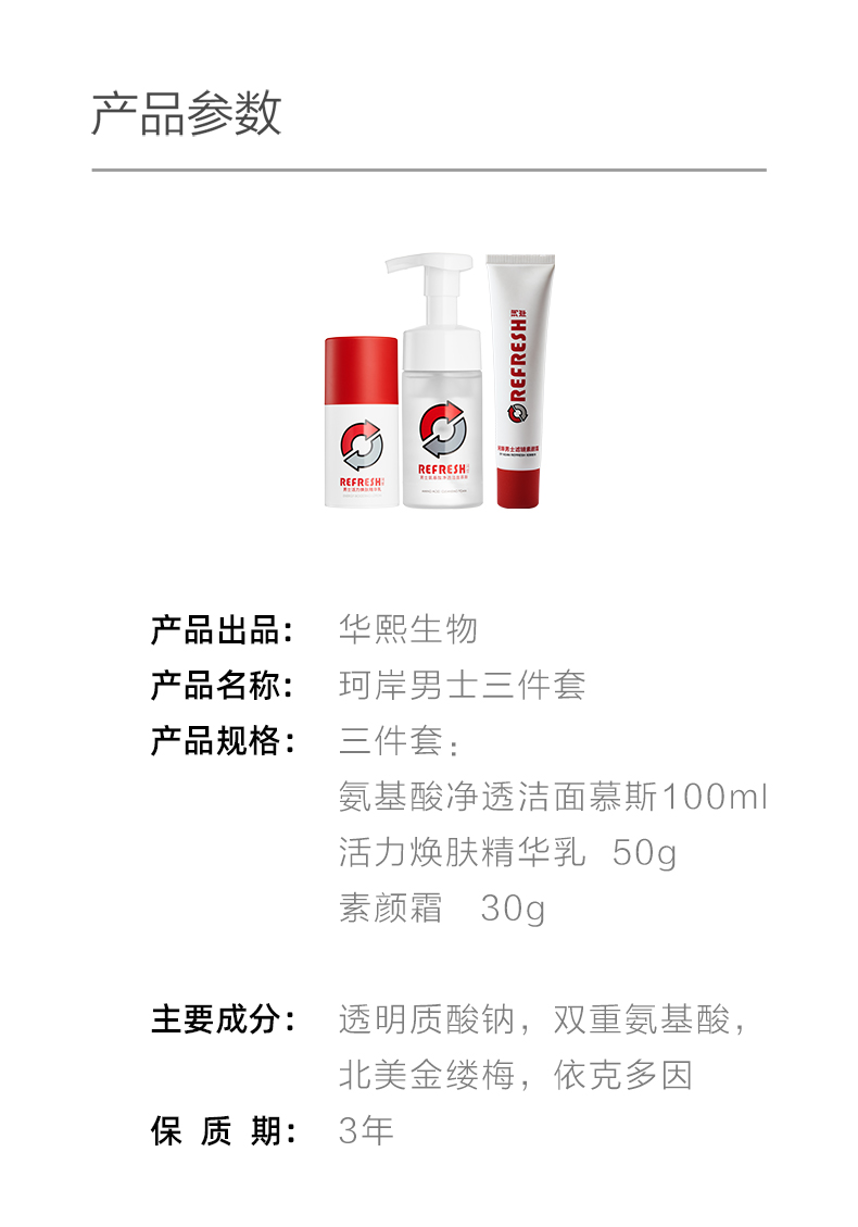 【华熙生物】珂岸男士氨基酸洗面奶玻尿酸精华乳素颜霜润肤套装 三件套
