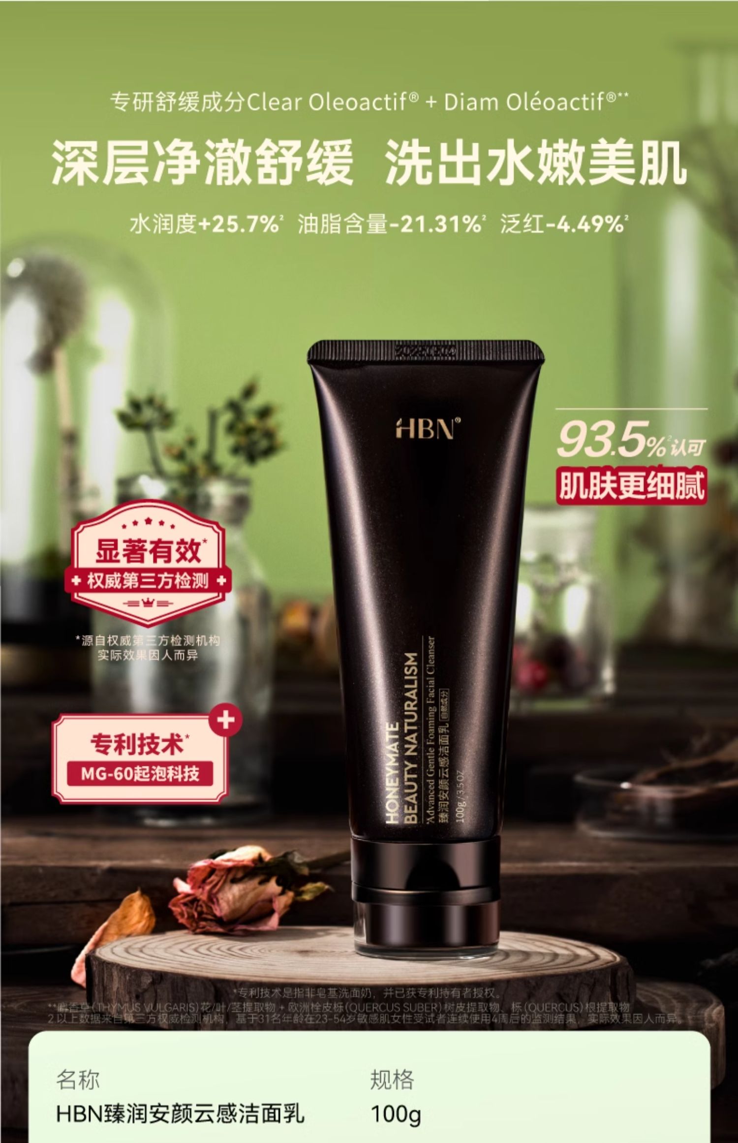 【门店直发】HBN臻润安颜云感三重氨基酸洗面奶洁面乳100g