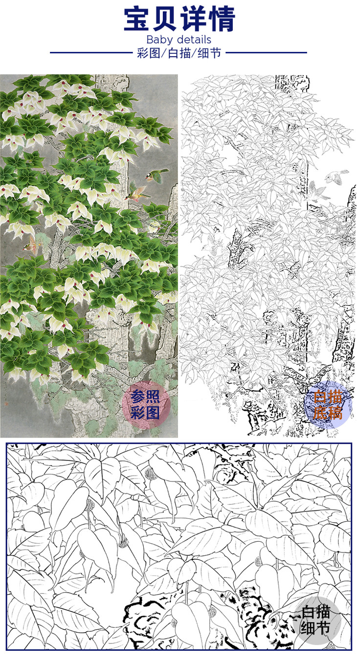 竖幅工笔花鸟白描底稿-周彦生《峨眉飞鸽》-多种白描尺寸可选-QN21