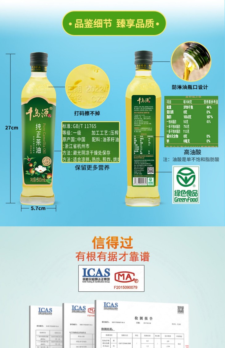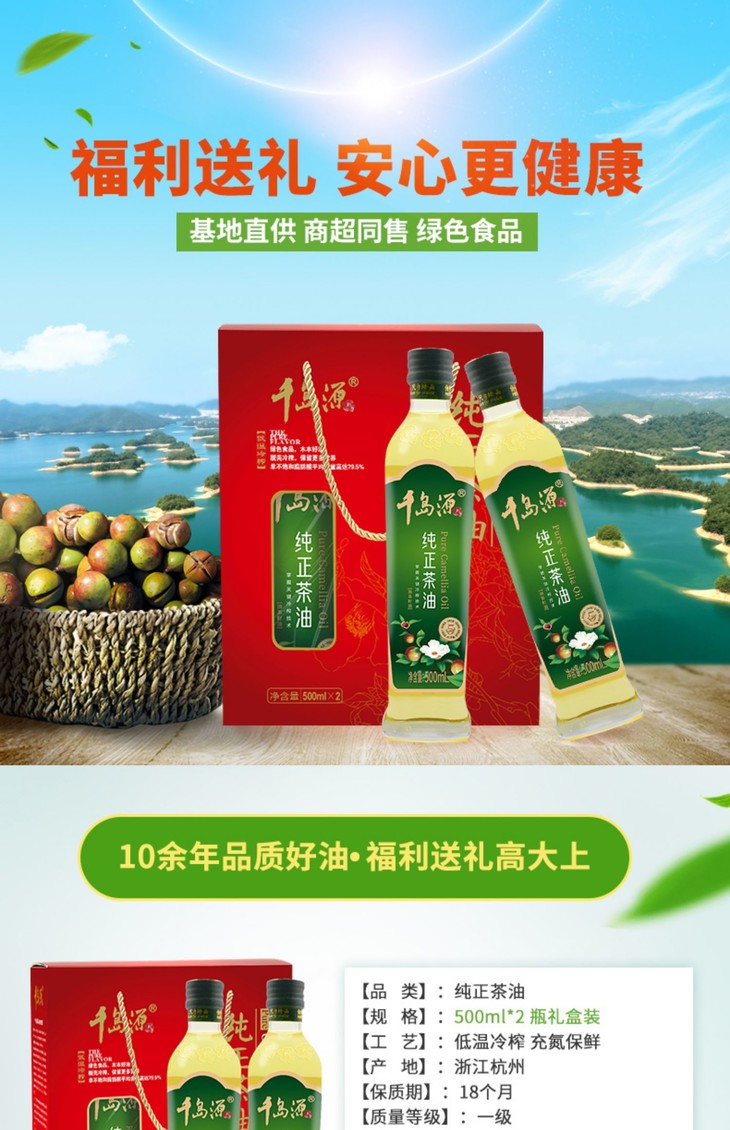 500ml*2千岛源纯正茶油(油茶籽油)礼盒(红色)