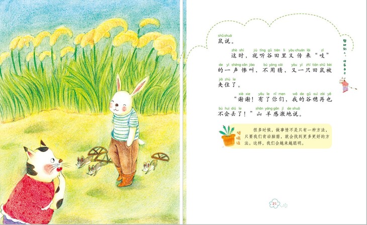 “叮当小铃铛童话第一季”是一套励志童话书,也是一套儿童由看图画过渡到读文字的桥梁书。书中以小朋友们喜爱的动物呼噜猫、萝卜兔、米喜熊、小福象为主人公,写了涉及儿童成长各个方面的故事,将善良、爱心、友谊、诚实、勇敢、机智、分享等美好品质巧妙地融合进童话故事里,让小读者们能够在阅读中增长智慧,增强信心、敢于自我肯定、勇于战胜困难。 书中插图色彩明亮,形象可爱,再加上注音,是专为学龄前儿童和小学一、二年级学生设计的。每个故事后设有“悄悄话板块”,起到画龙点睛的作用,引导小读者对本篇故事的主题进行思考和领悟,也特别适合父母和孩子亲子阅读时引发讨论话题,起到抛砖引玉的作用。