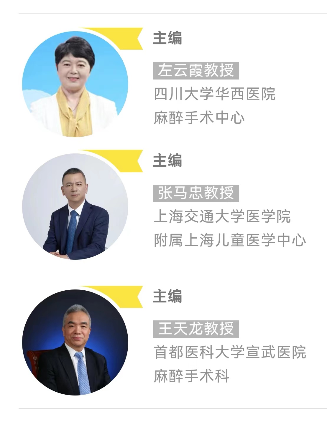 本教材的主编左云霞教授、张马忠教授和王天龙教授,副主编李军教授、宋兴荣教授和张建敏教授,均为国内儿科麻醉学领域的领军人物。他们领衔的编委团队均为全国各大医院及高校的麻醉学专家,不仅在临床与教学方面具有丰富的经验,同时在科研领域也有深厚的造诣,确保了本教材的高质量与高水平。
