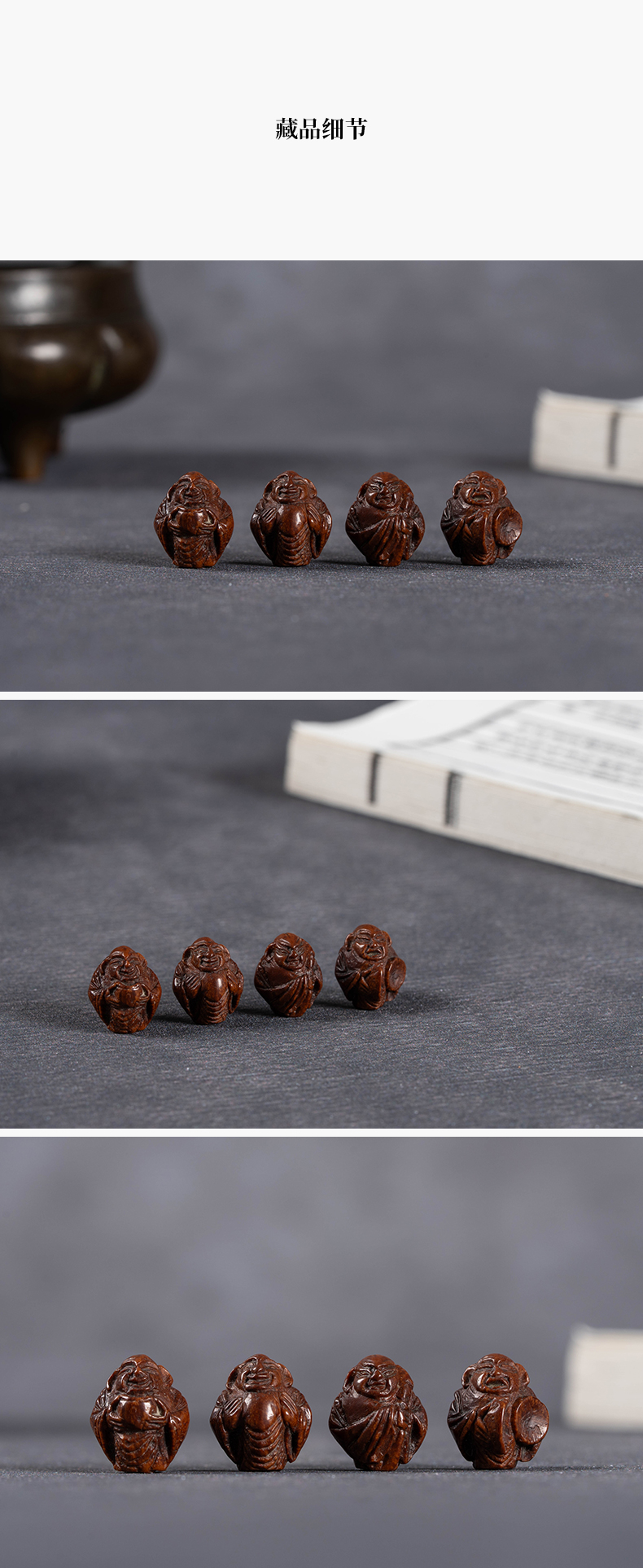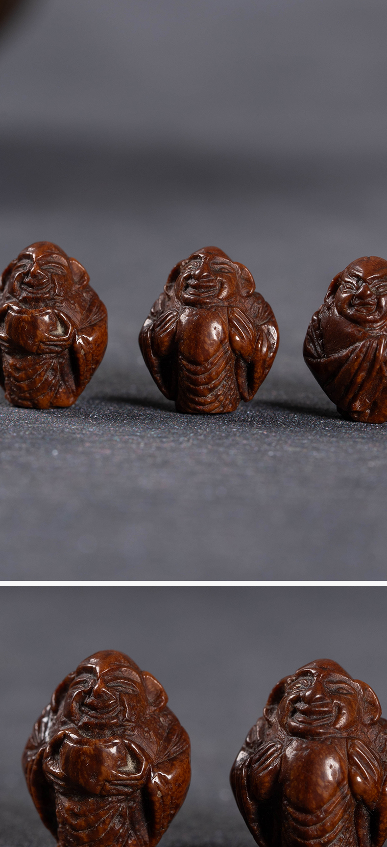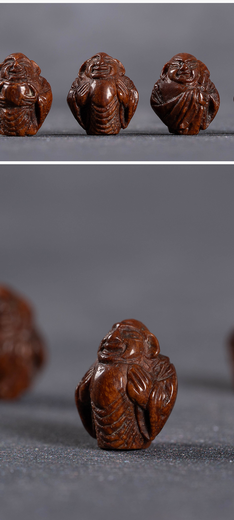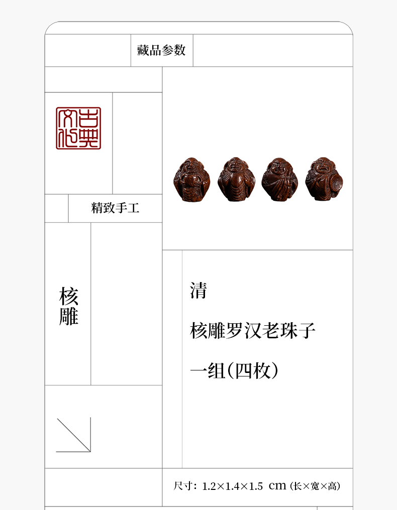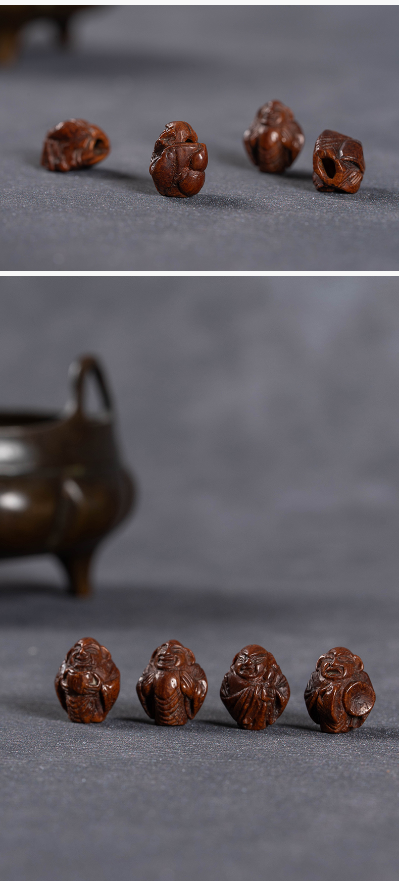 清 核雕罗汉老珠子一组(四枚)