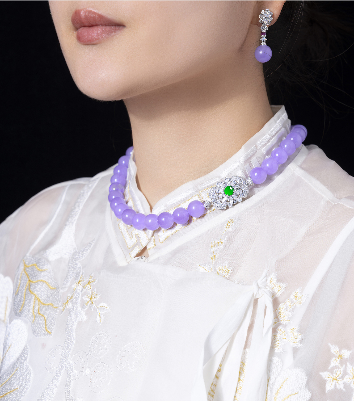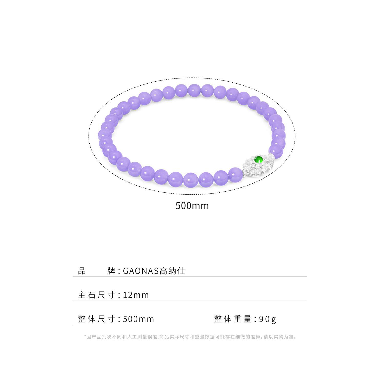 GAONAS 紫霞仙子 中式贵气紫色12mm珠项链10389XPR