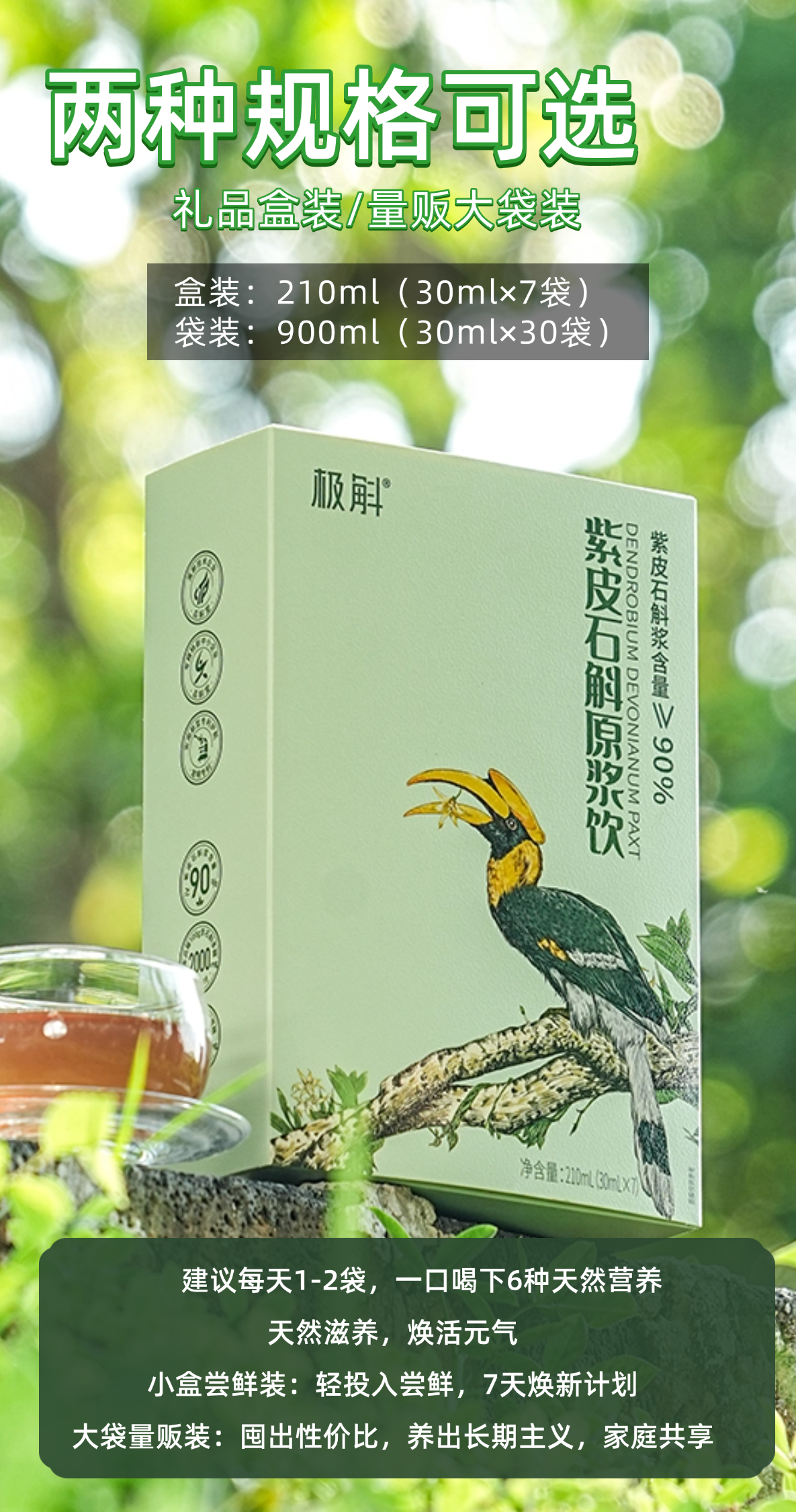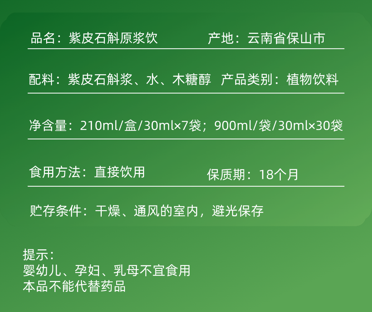 菜头商城 紫皮石斛原浆饮 净含量:210ml/盒/30ml×7袋;900ml/袋/30ml×30袋