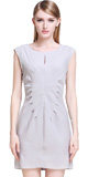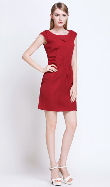 EITIE爱特爱旗舰店女装夏装时尚纯色褶裥拉链高腰修身无袖连衣裙3907649