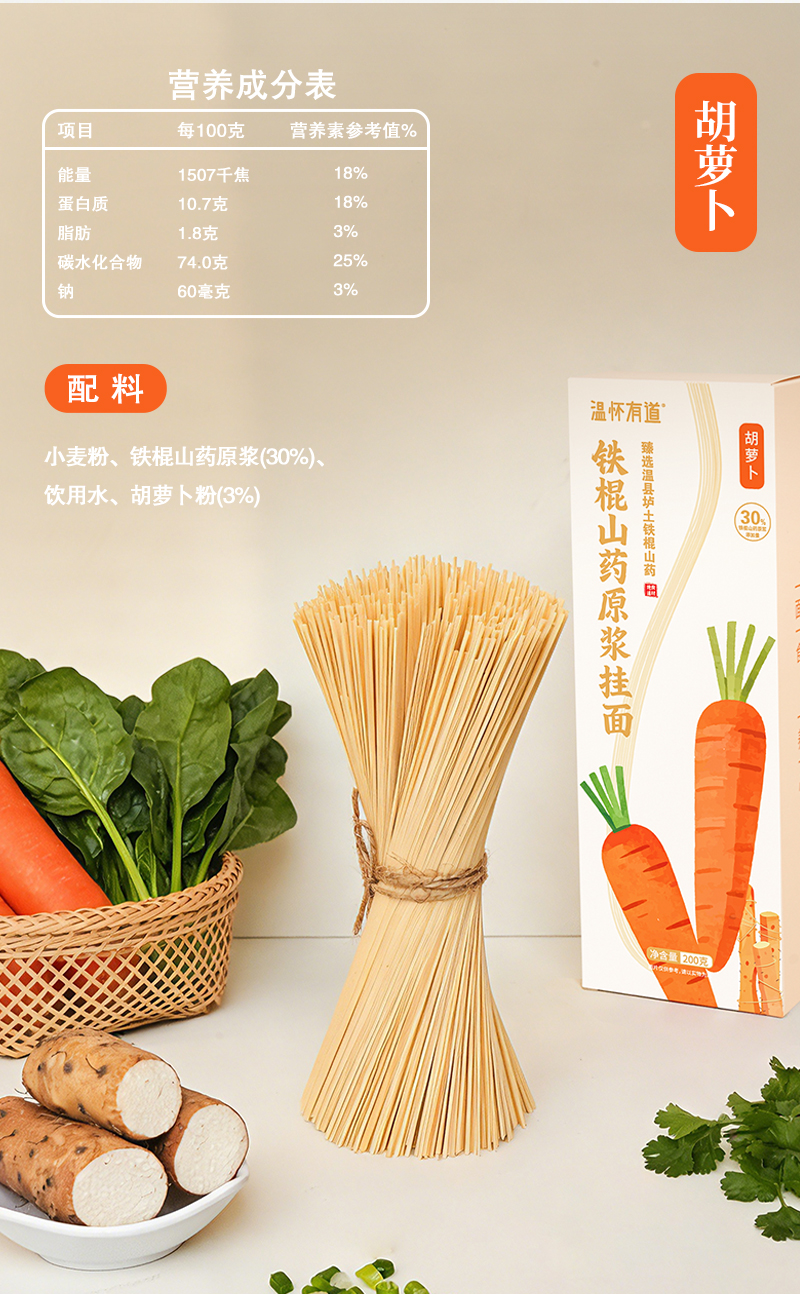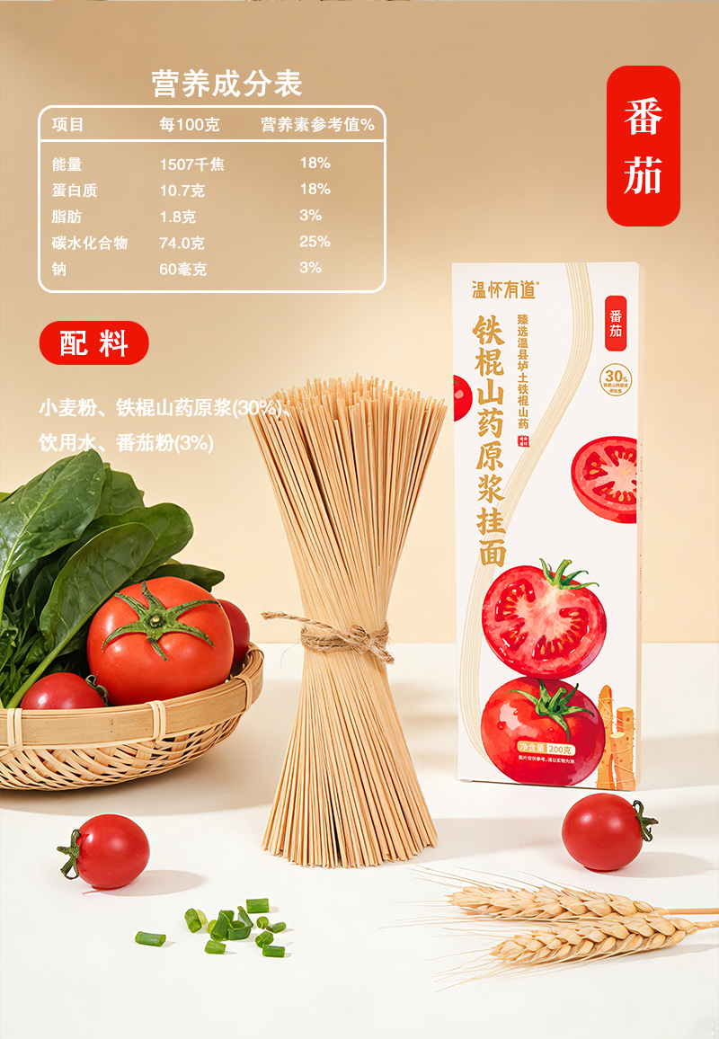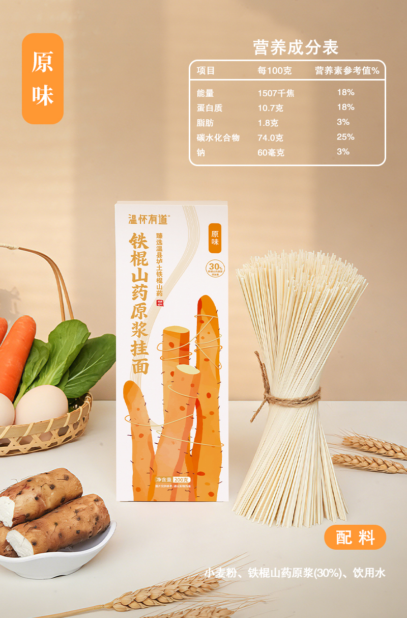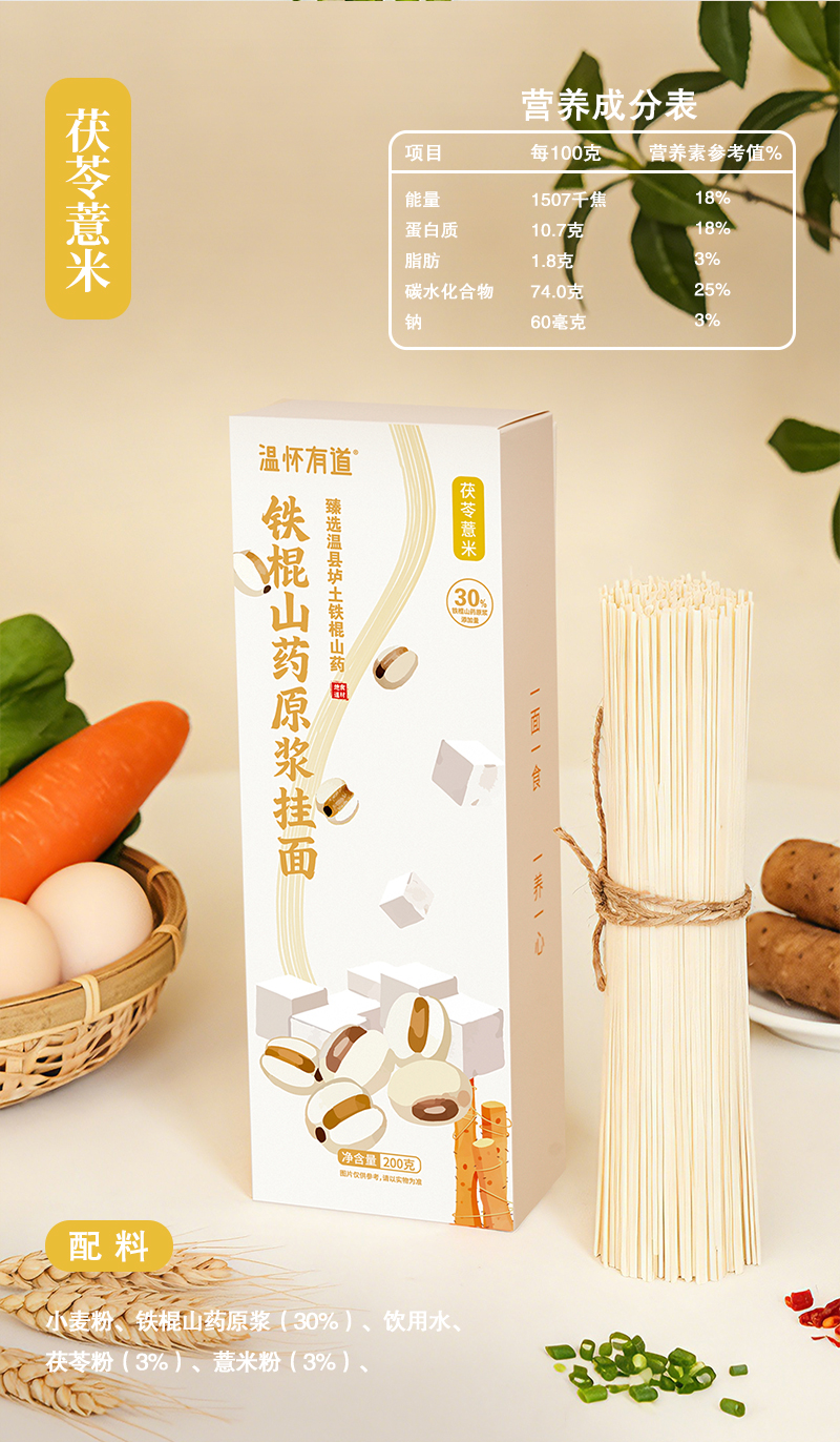 温怀有道 铁棍山药原浆挂面 甄选30%温县垆土铁棍山药原浆
