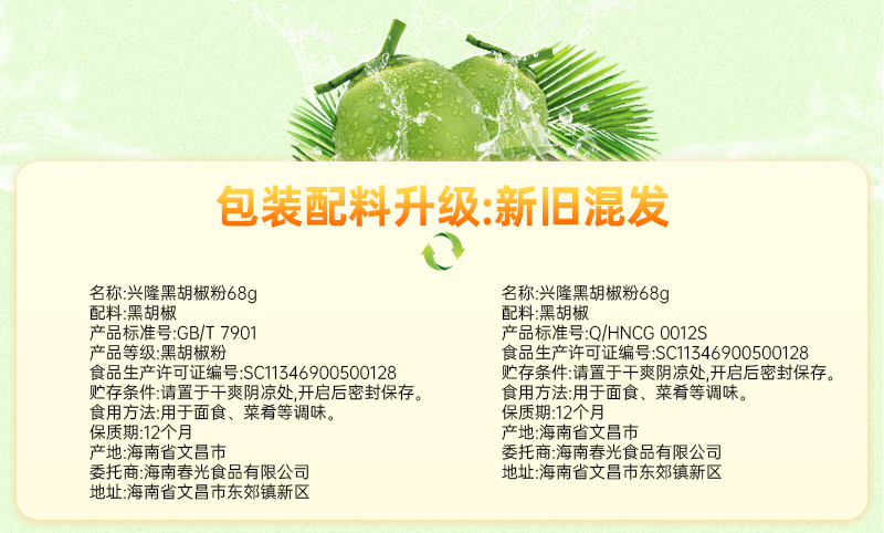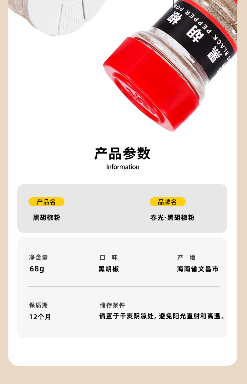 兴隆白胡椒粉/兴隆黑胡椒粉68g*2 瓶装 提香增鲜调味
