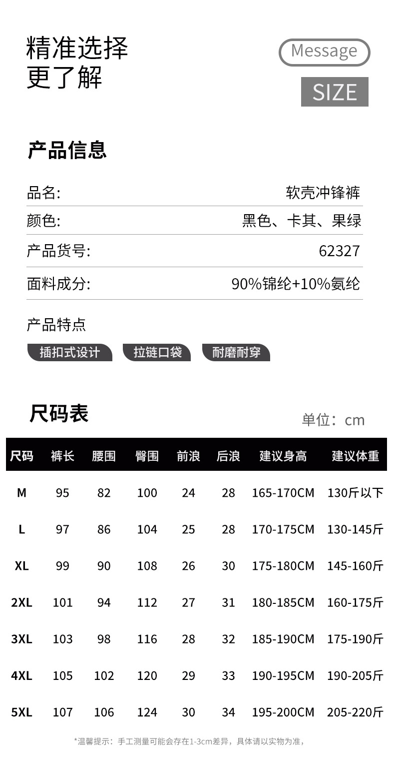 跃牌【PF系列】新款软壳冲锋裤机能户外徒步耐磨登山裤男62327