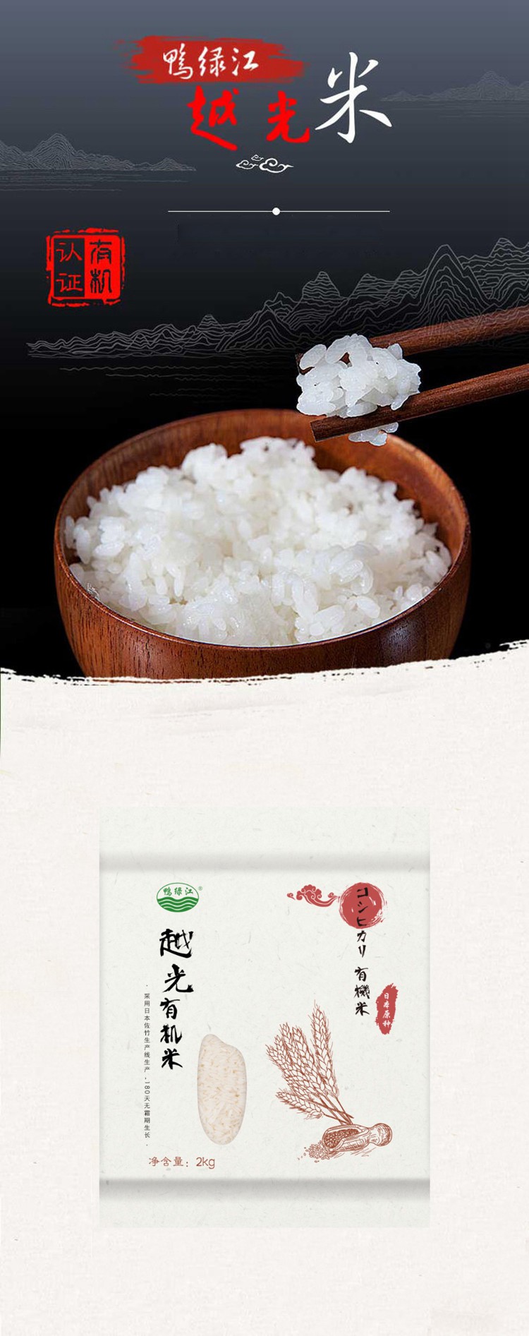 【包邮】东升农场 鸭绿江越光有机米 2kg