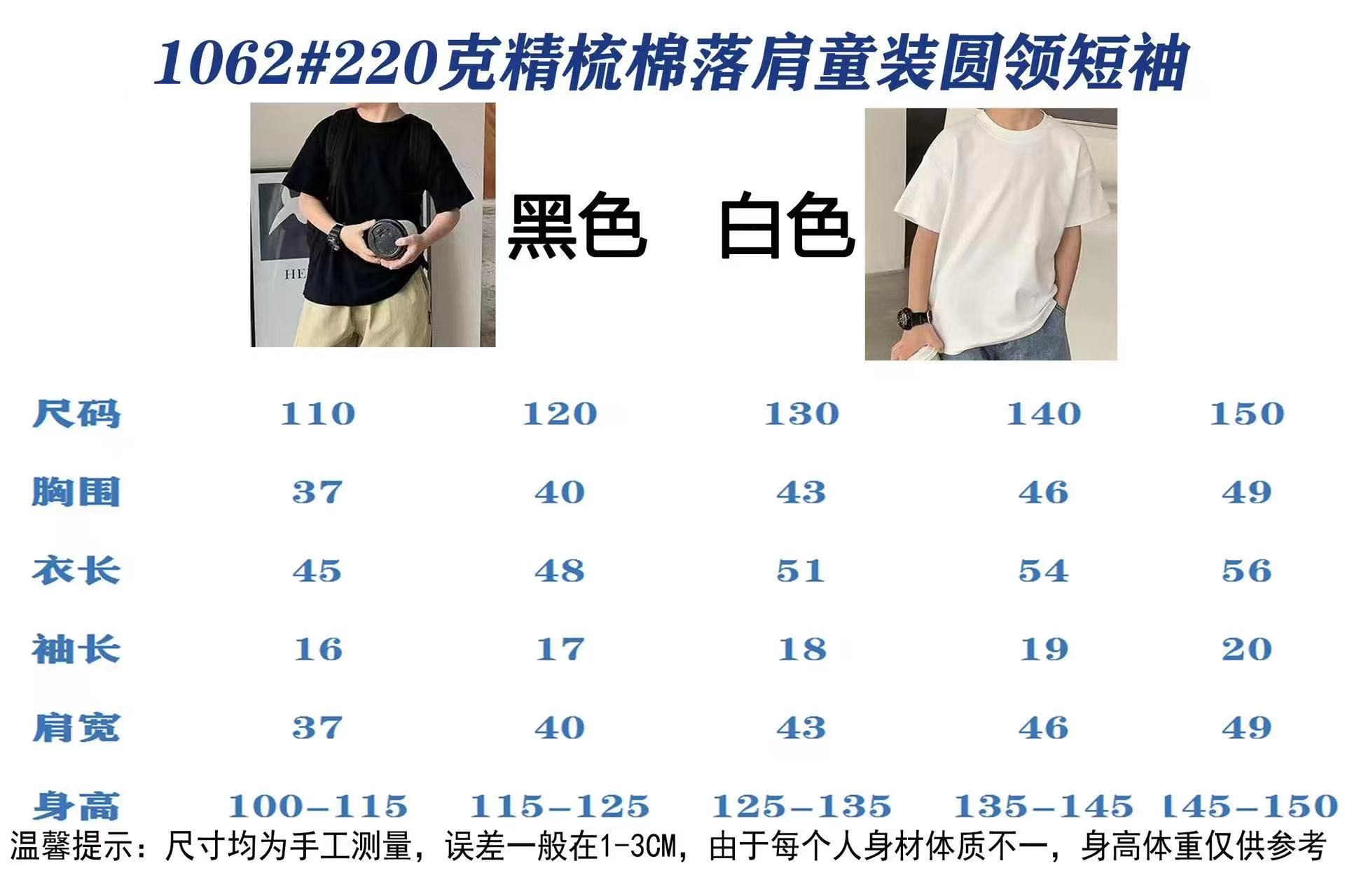220克20支精梳纯棉面料,亲肤透气,舒适耐穿。