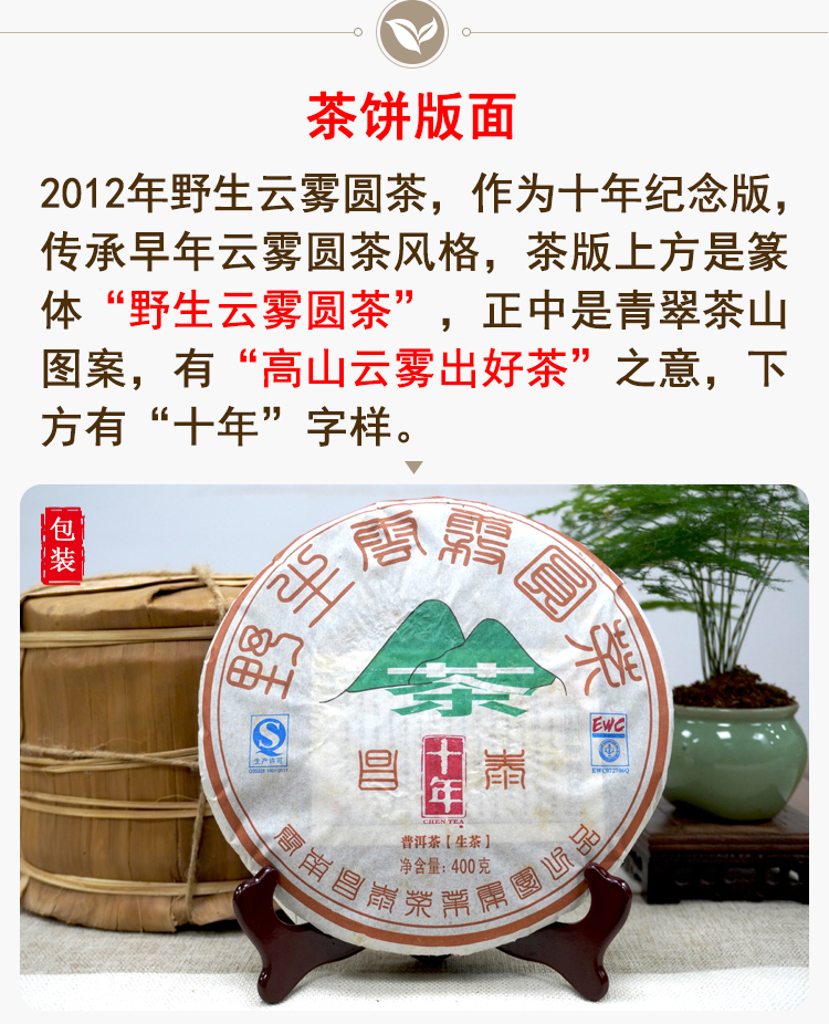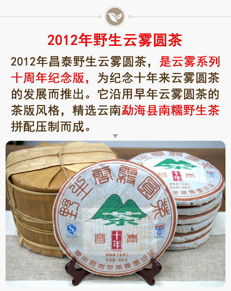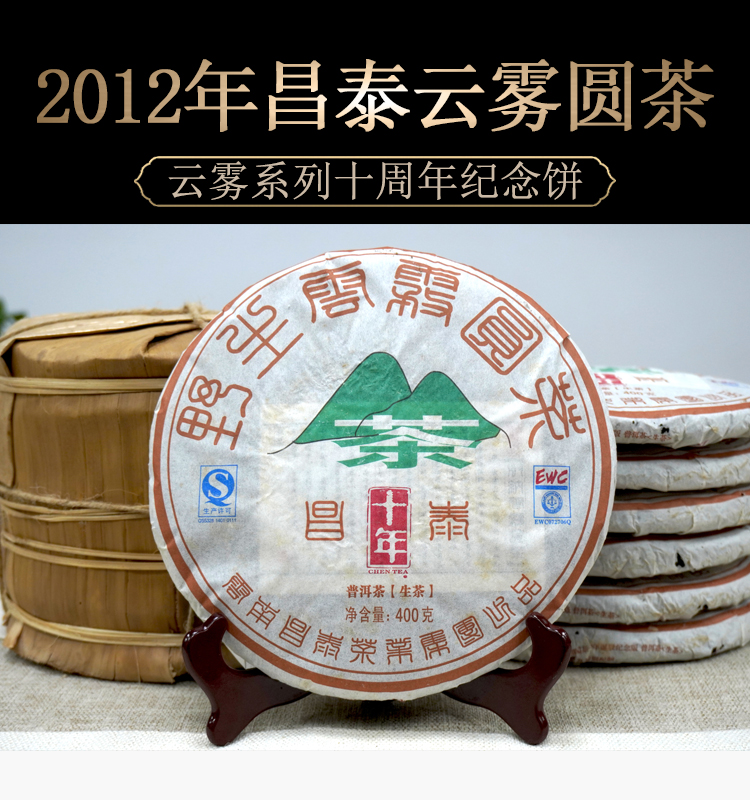 2012年昌泰云雾圆茶10周年纪念饼云雾系列经典生茶 干仓真品高性价比 一片400克