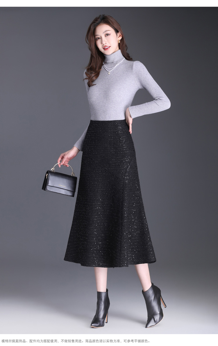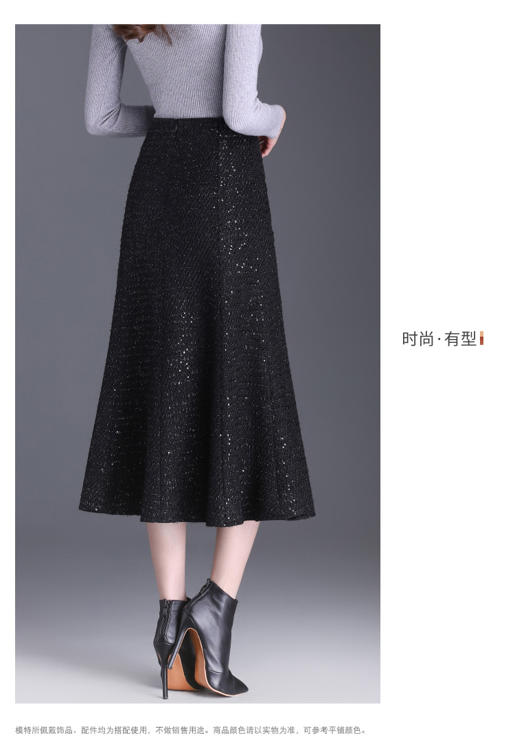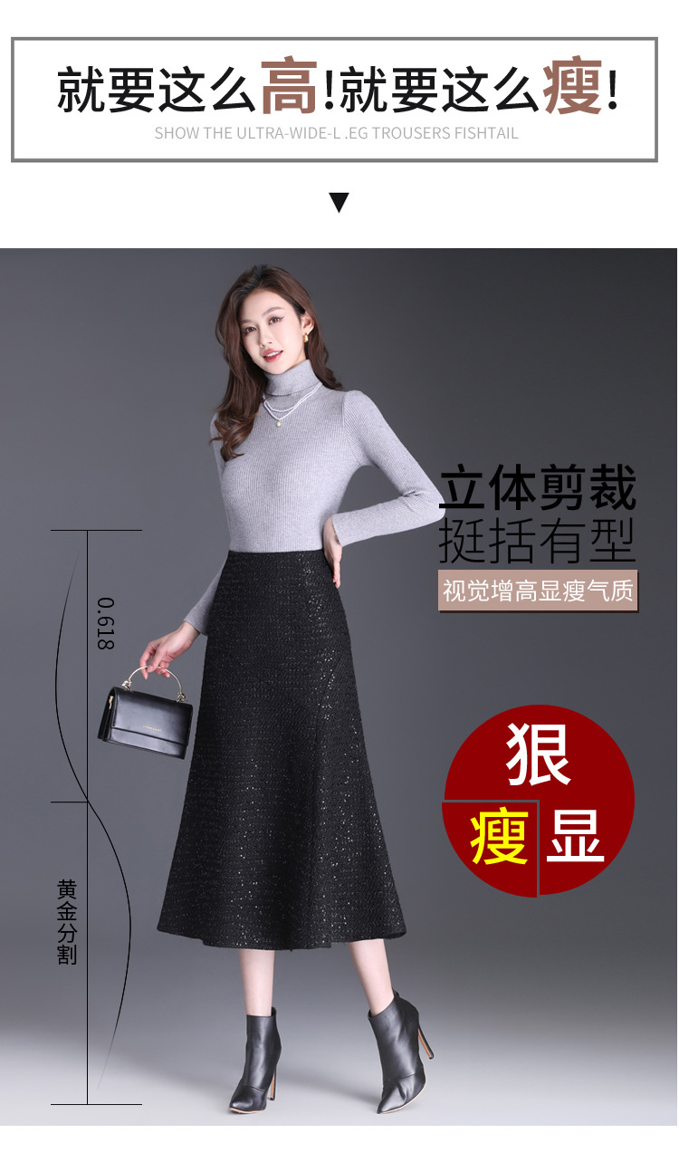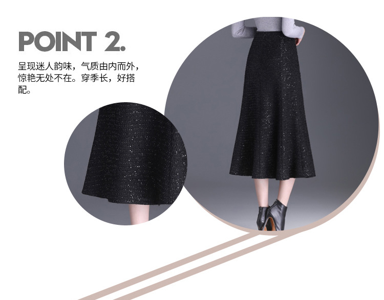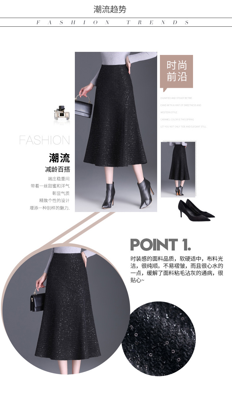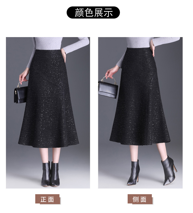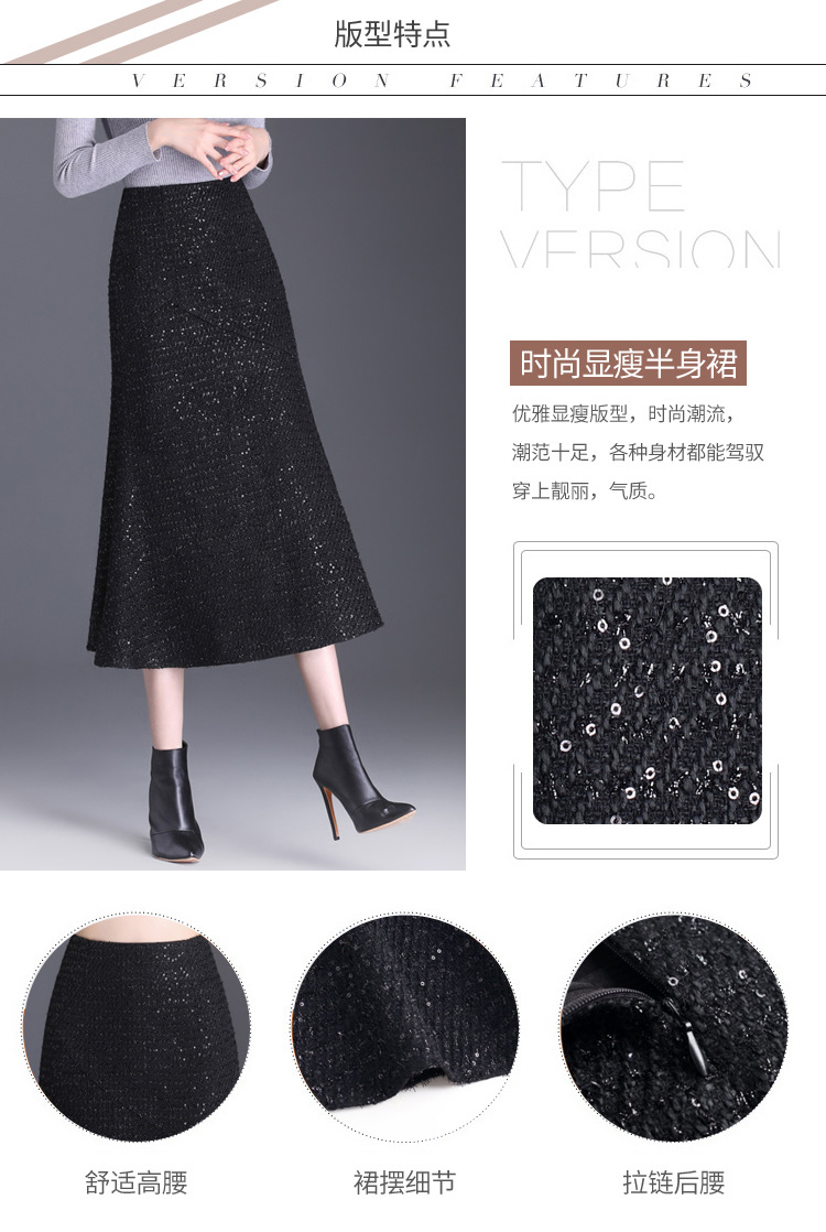 长款通勤时髦亮片修身鱼尾裙,新款高腰简约洋气时尚半身裙MYX-KYL-99683-L