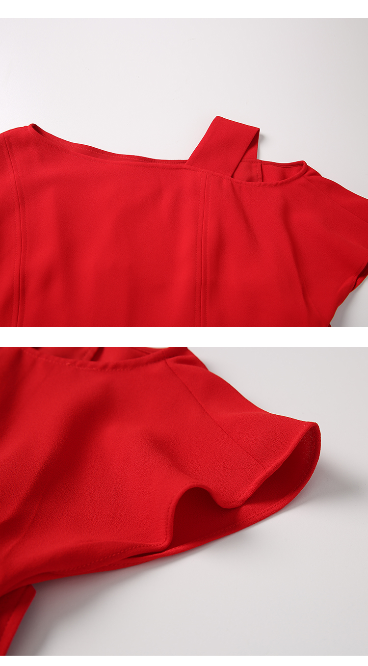 EITIE爱特爱女装夏季新品V领七分荷叶袖简约纯色衫上衣薄5713435