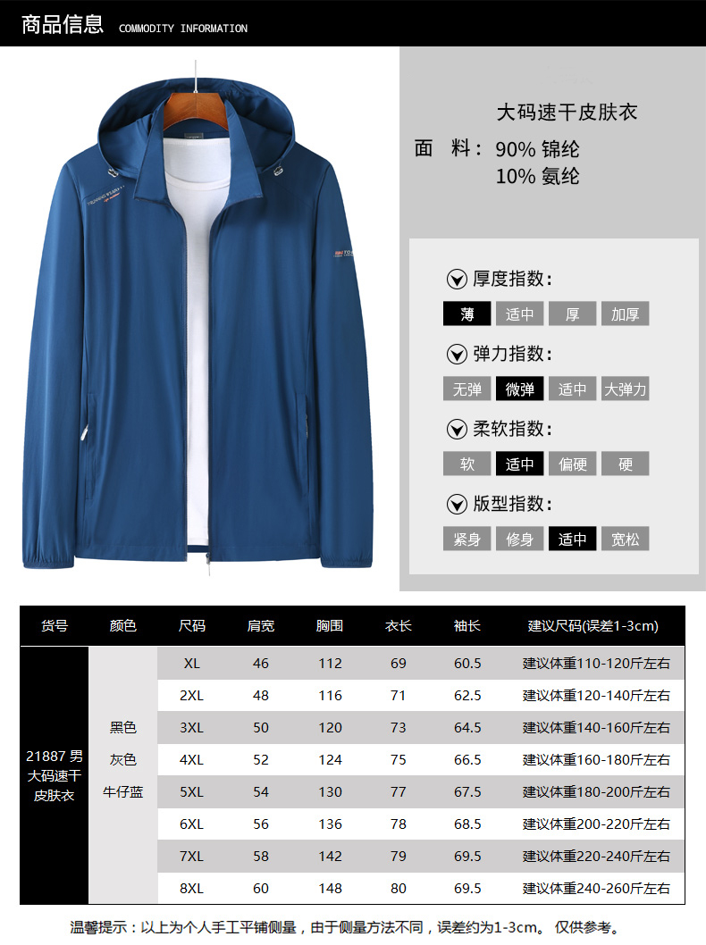【新款DZP】大依优型大码男装夏季冰丝加肥加大皮肤衣大号防晒外套