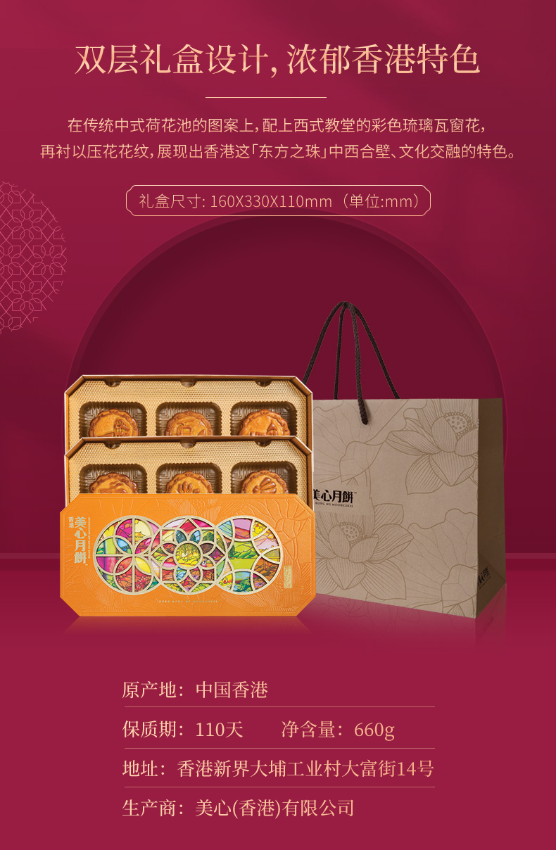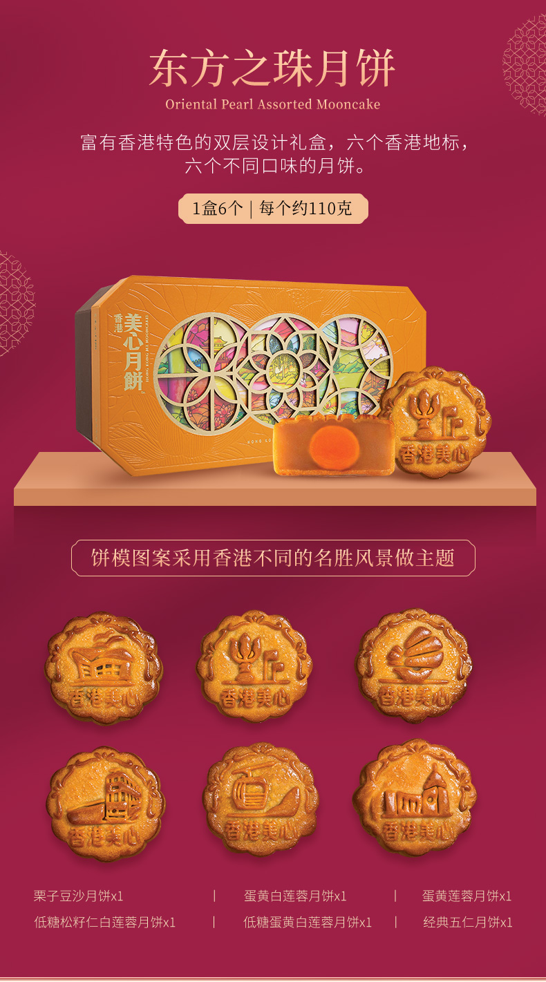 中国香港美心东方之珠月饼礼盒660g中秋港式糕点零食