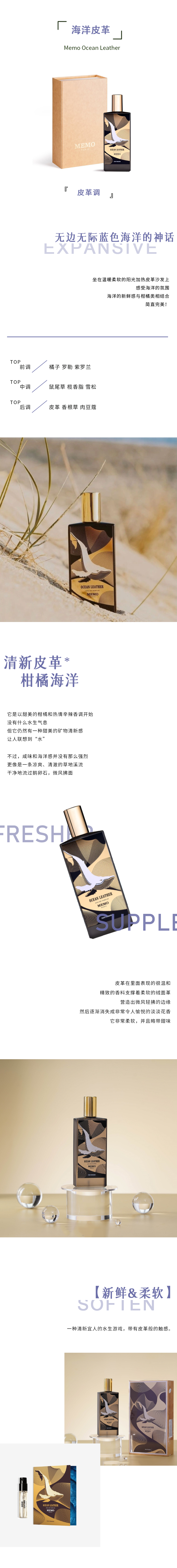 玫默 海洋皮革(海洋之歌) Memo Ocean Leather 分装 【坐在温暖柔软的阳光加热皮革沙发上,感受海洋的氛围】