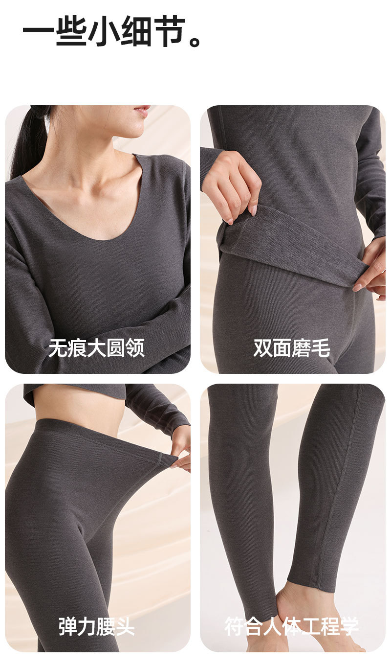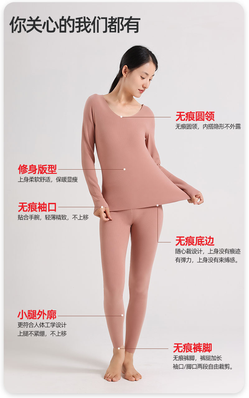 「老顾客福利— 7A抗菌 加厚双面磨毛无痕德绒保暖套装」洛诗琳德绒抗静电保暖内衣套装不含聚酯纤维无痕发热玻尿酸加绒肌底衣99029(7天左右发货)