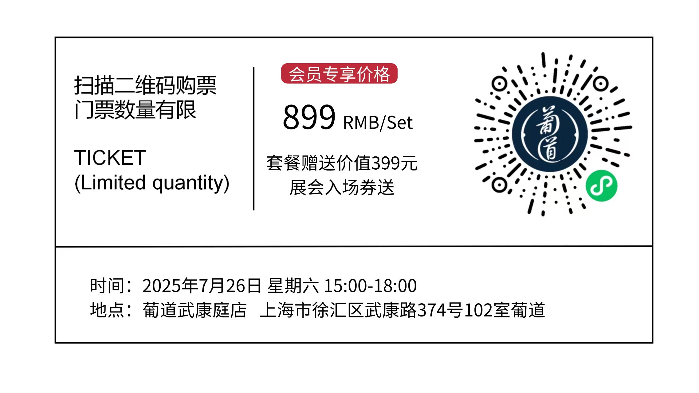 【2025.7.26 武康门票 Wukang Ticket】中国葡萄酒天花板Set(赠送中国葡萄酒自由品鉴会门票)