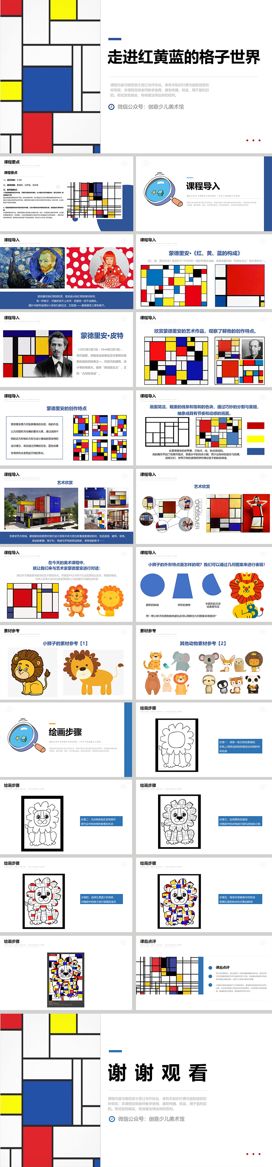 5-6岁《走进红黄蓝的格子世界》蒙德里安/大师/艺术家/【自动发货:下单后,点击手机短信中收到的链接,即可获取文件下载的链接;如有任何问题,可添加客服微信hm33268获得帮助】