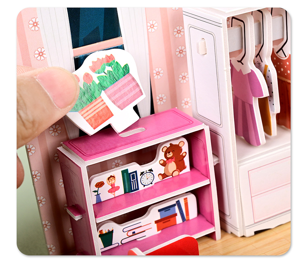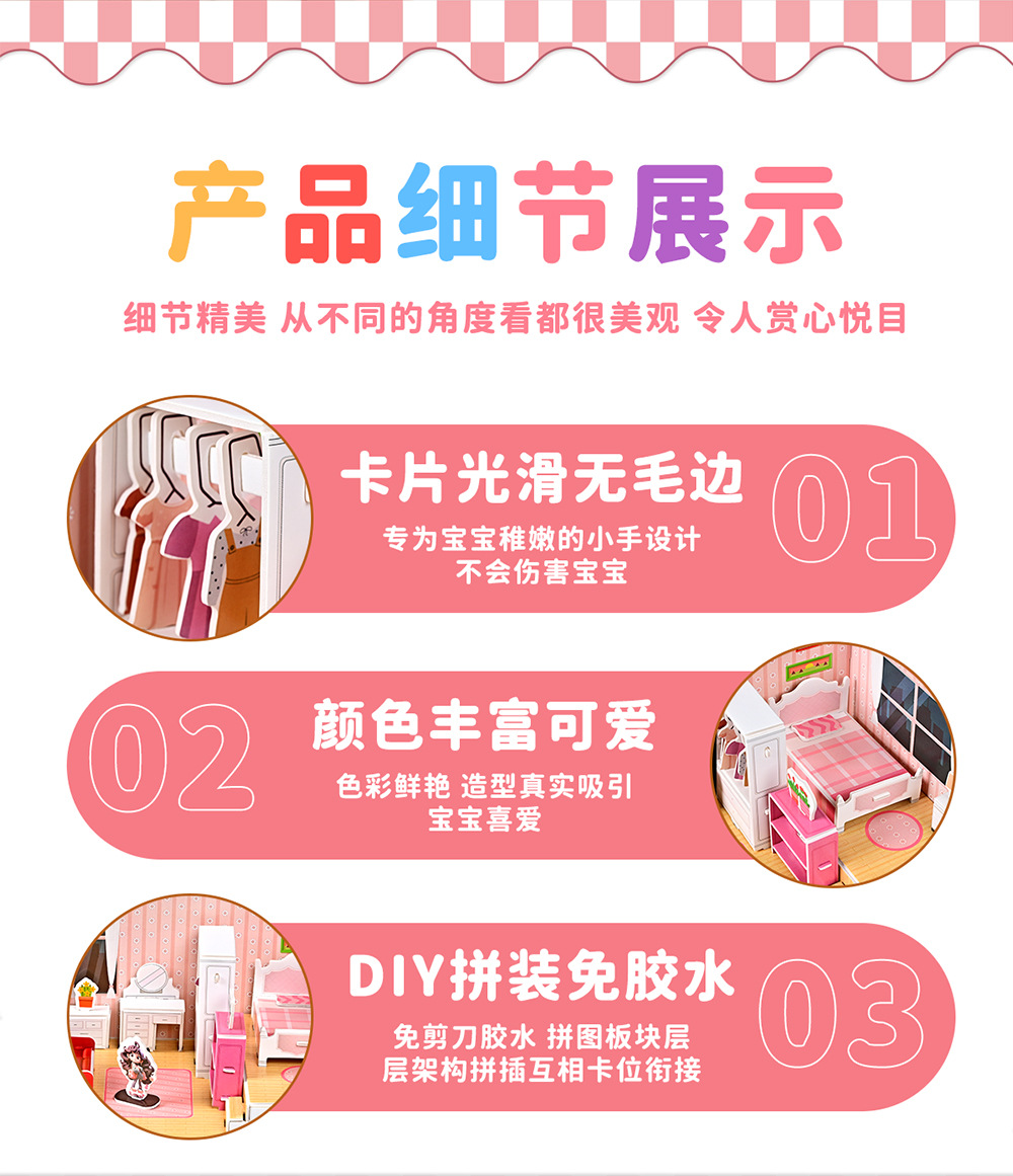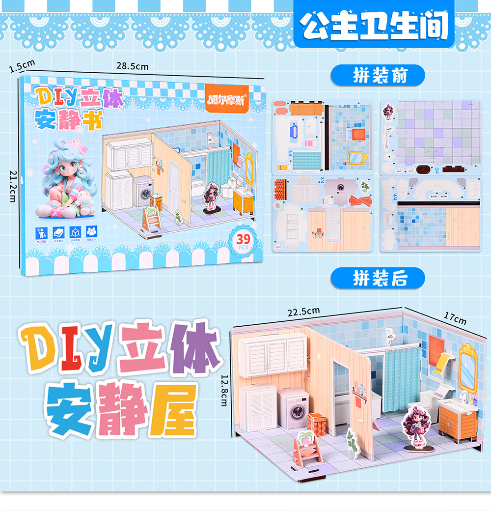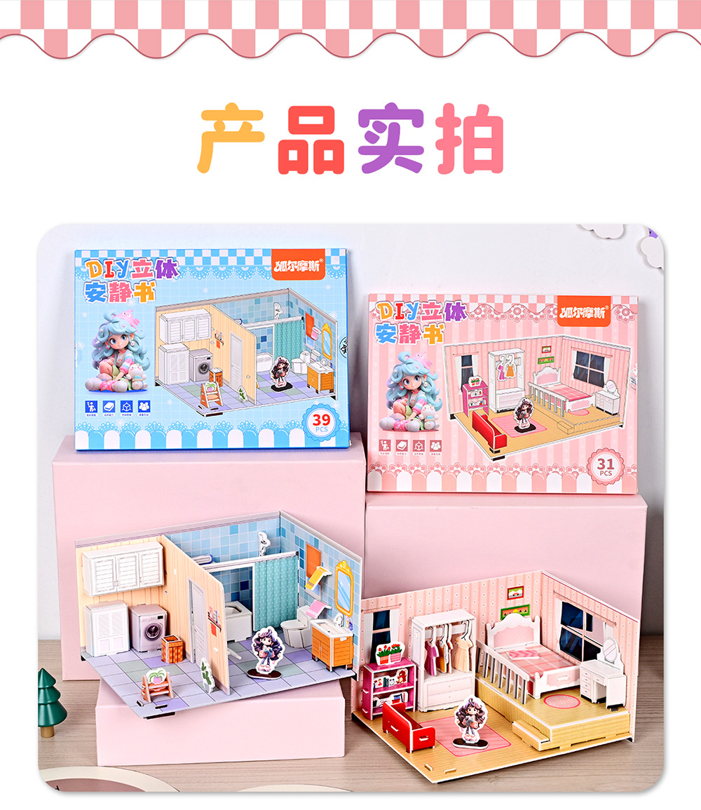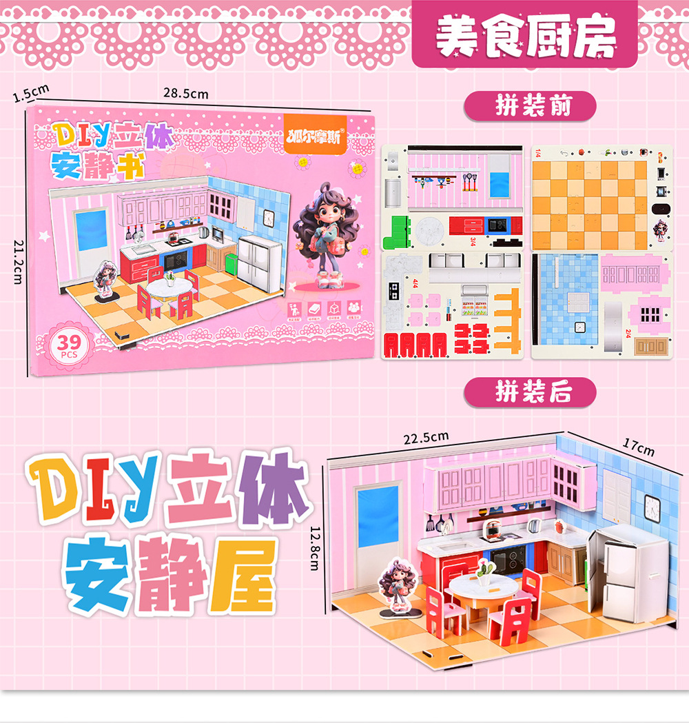 【3D趣味立体拼图!宝宝喜爱】3d立体安静书 diy手工可爱立体场景加厚拼图免裁剪机关立体拼装书。rb
