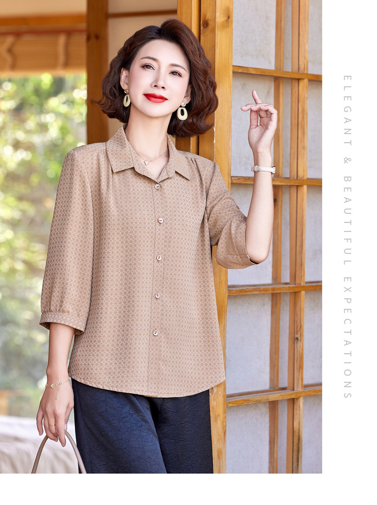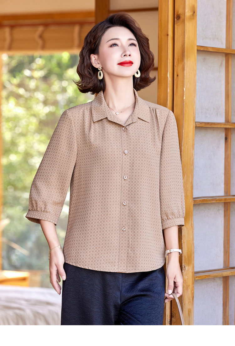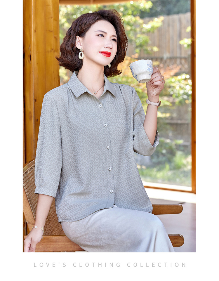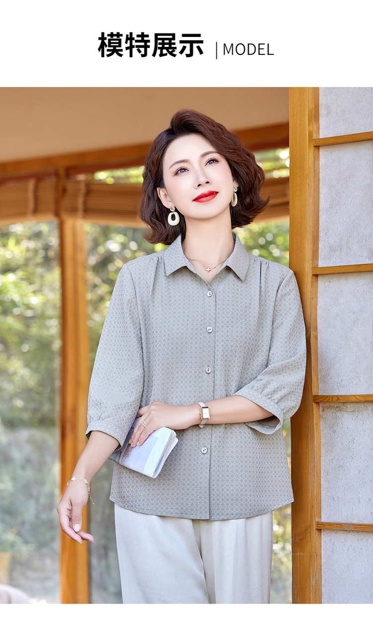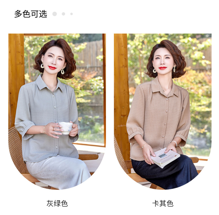 W294-58147-98-168妈妈夏装洋气质桑蚕丝衬衫中老年人女装夏季上衣真丝衬衣