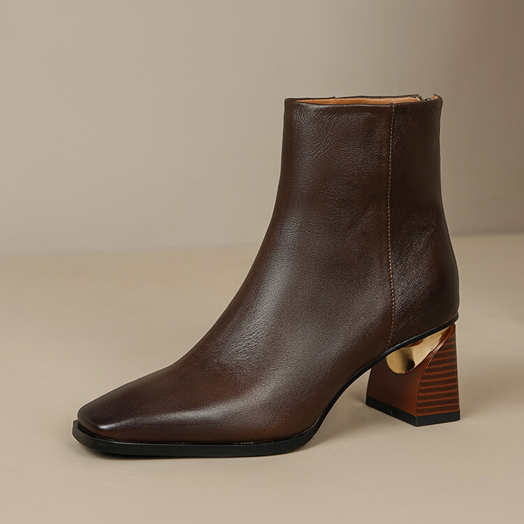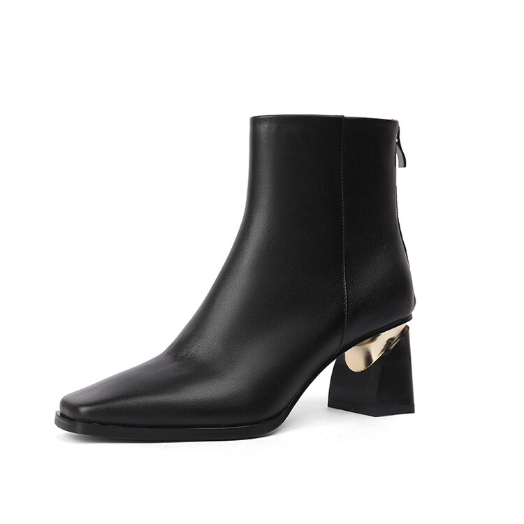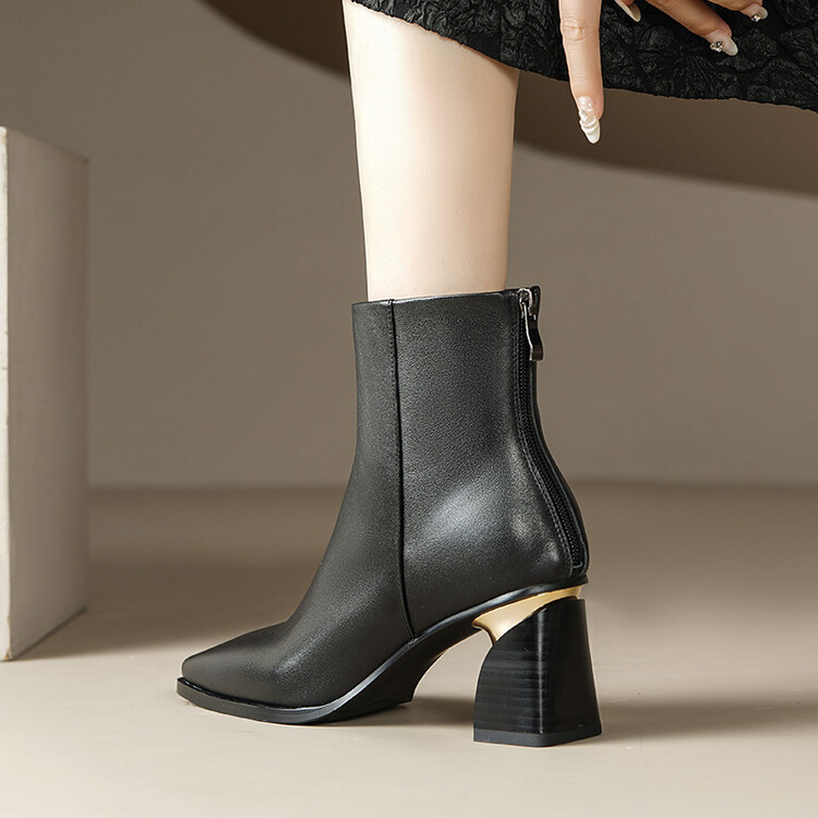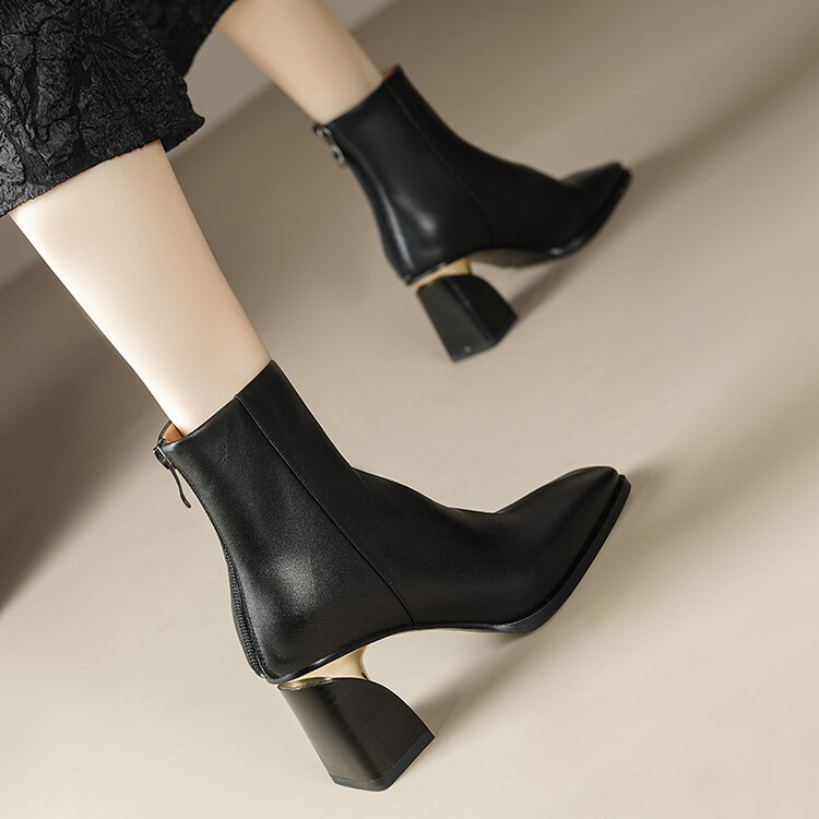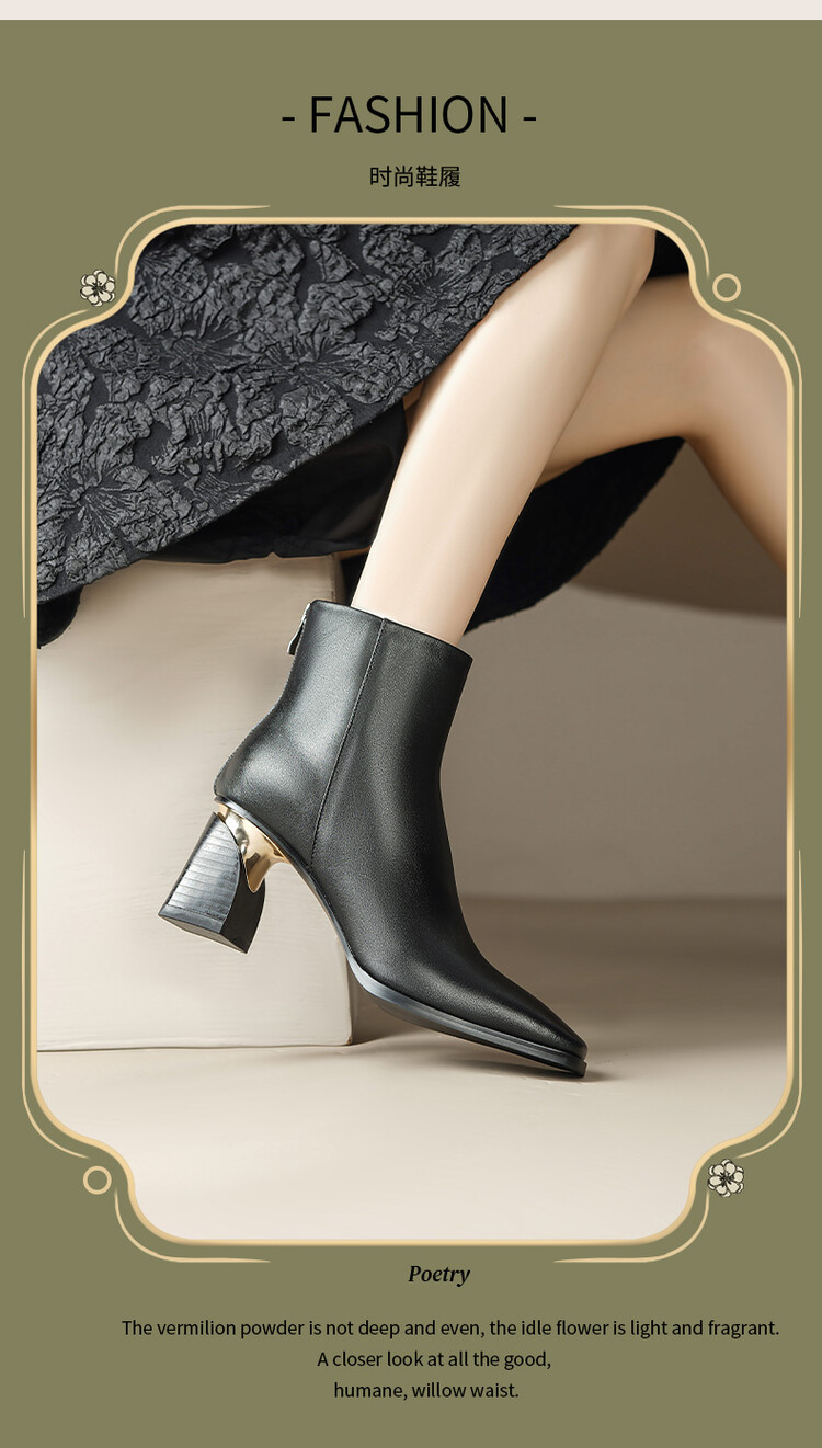 【预售5天】法式复古短靴女方头粗跟瘦瘦靴秋冬气质切尔西靴短筒高跟女皮靴ALS&2338-1