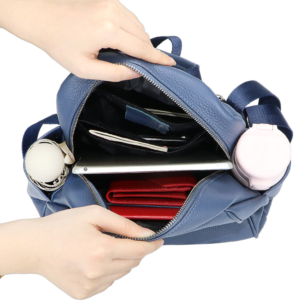 雀说 头层牛皮双肩包真皮大容量荔枝纹通勤包女背包1667
