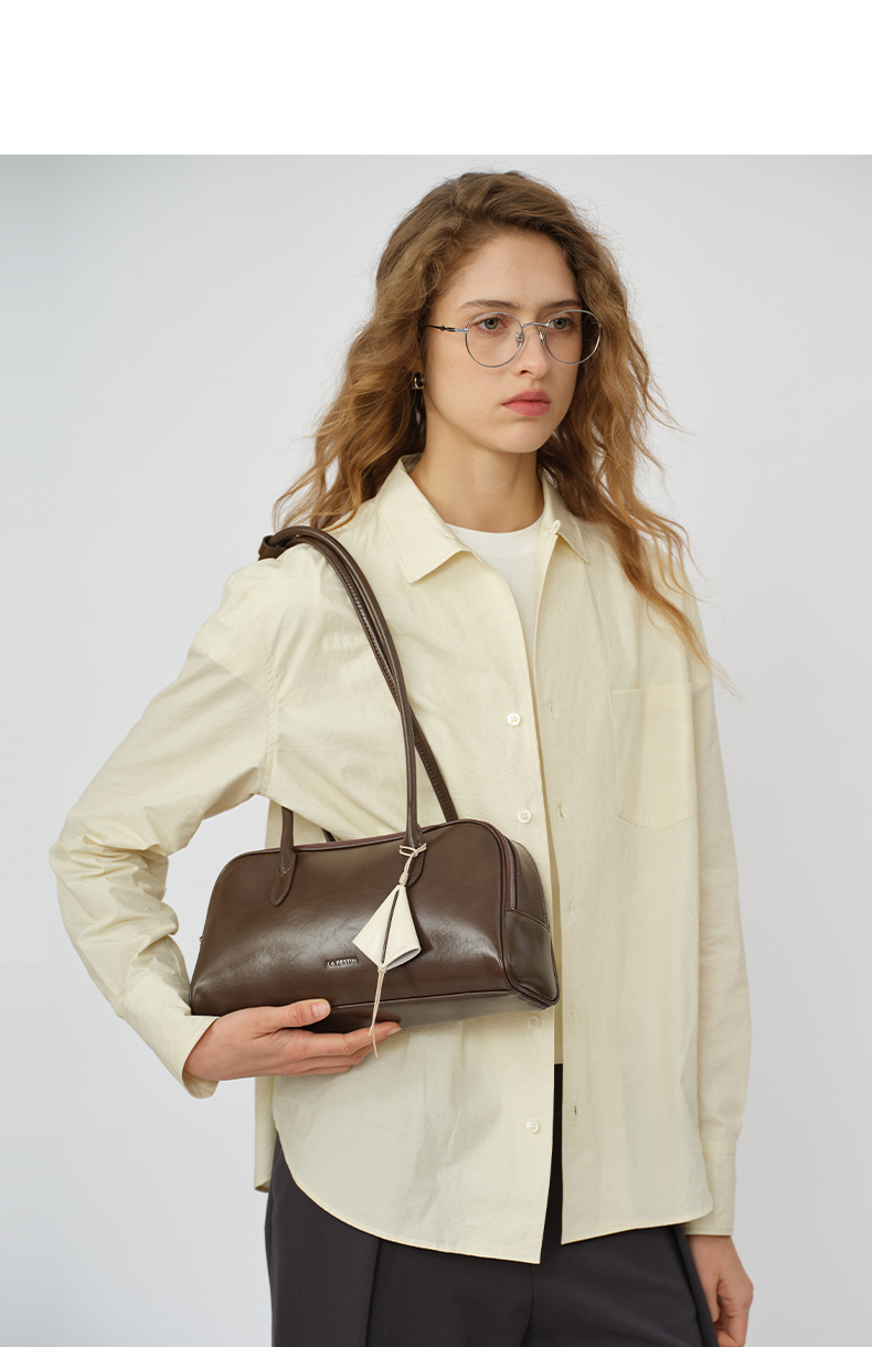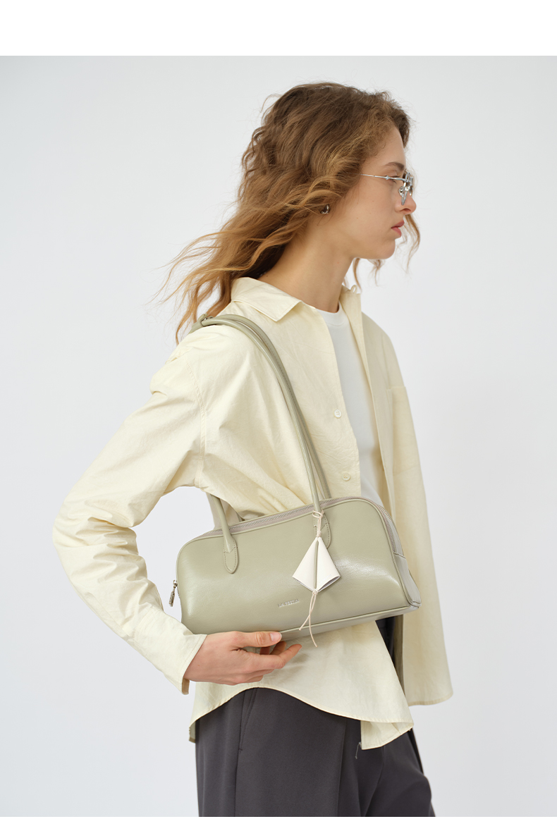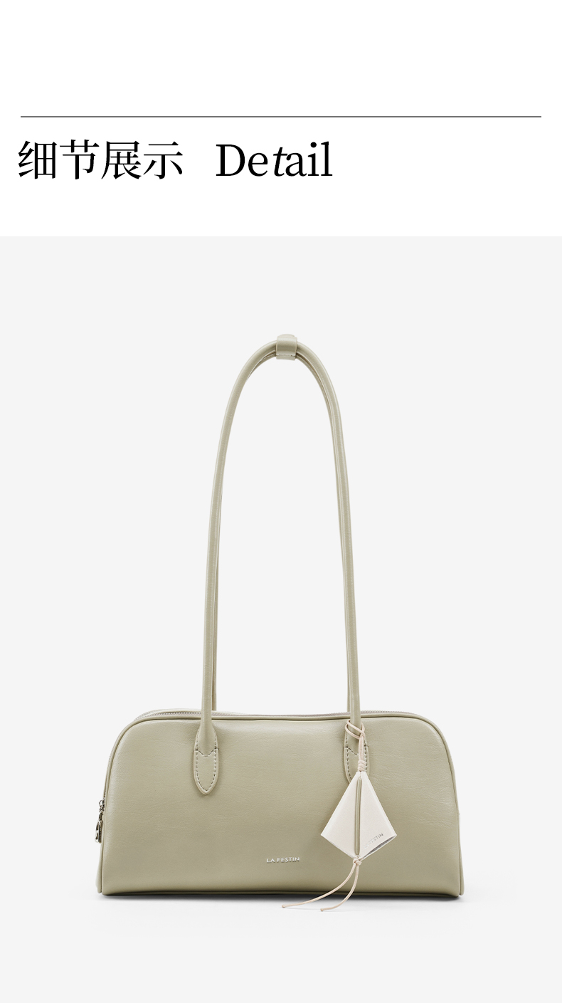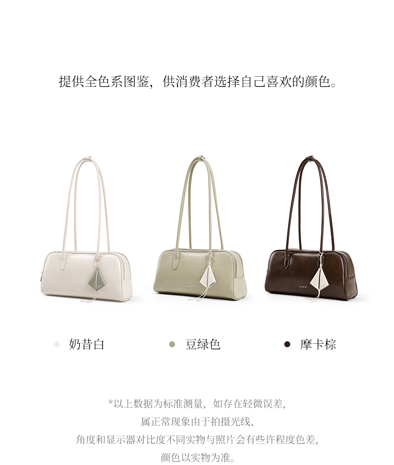 拉菲斯汀 筝筝法棍包小众白色单肩腋下腊肠包保龄球包