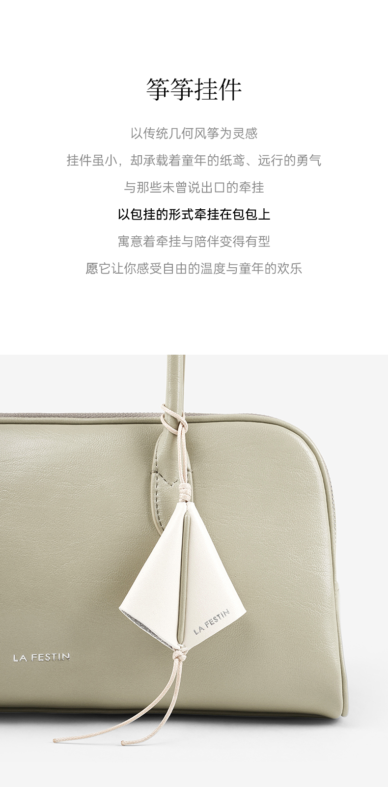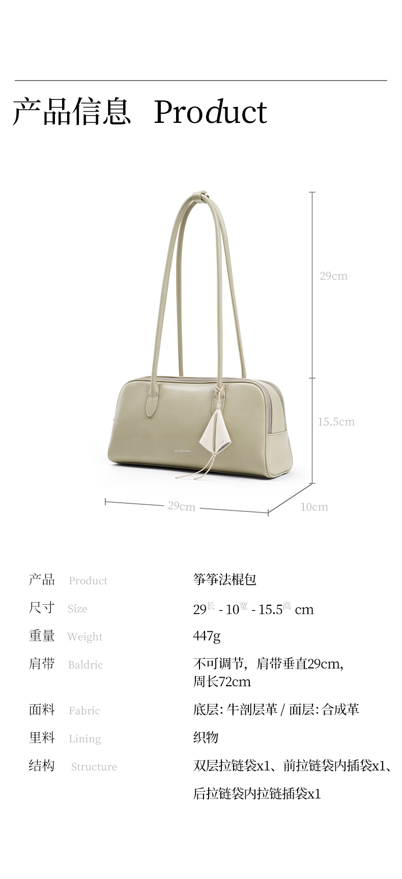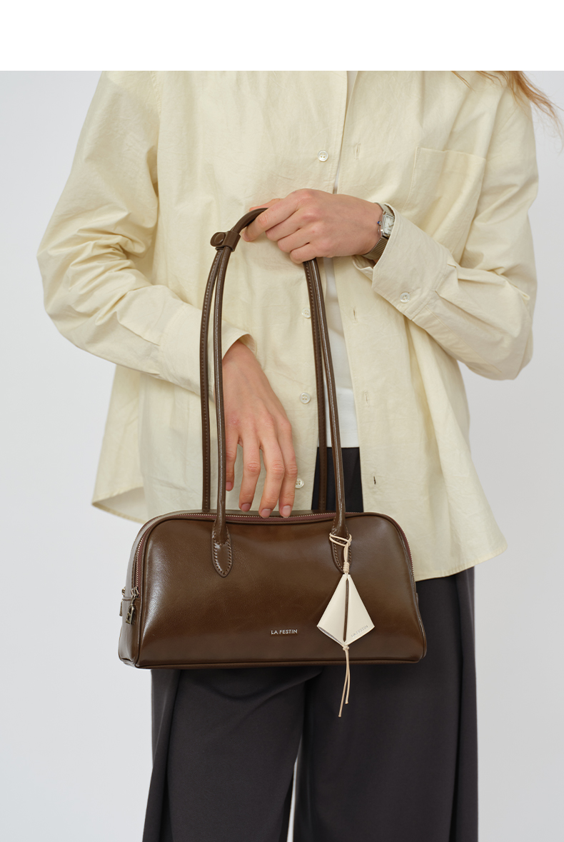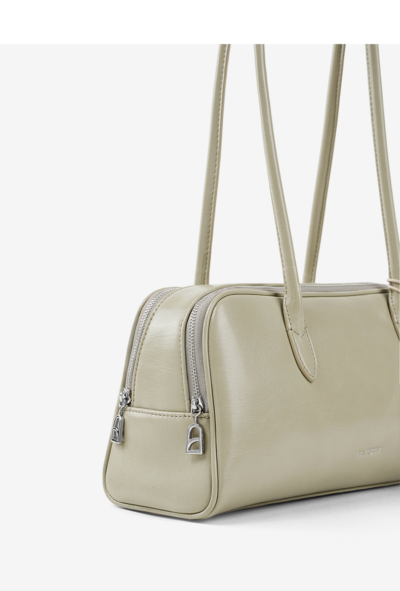 拉菲斯汀 筝筝法棍包小众白色单肩腋下腊肠包保龄球包