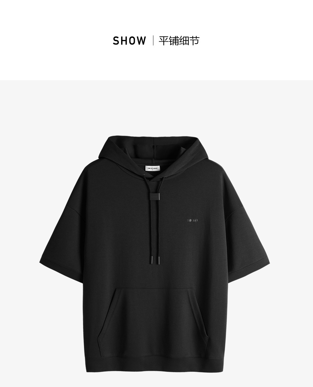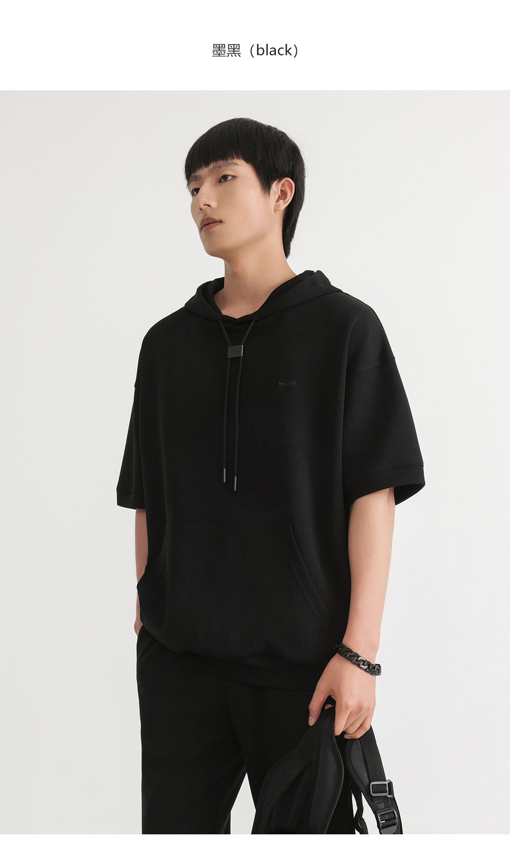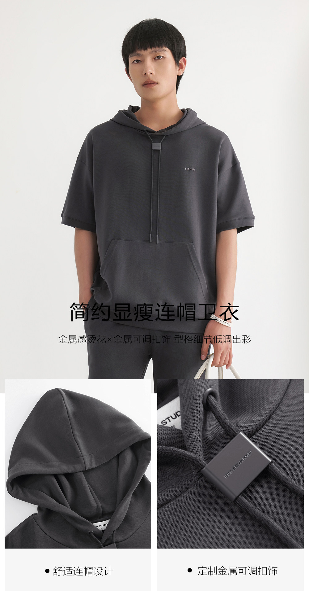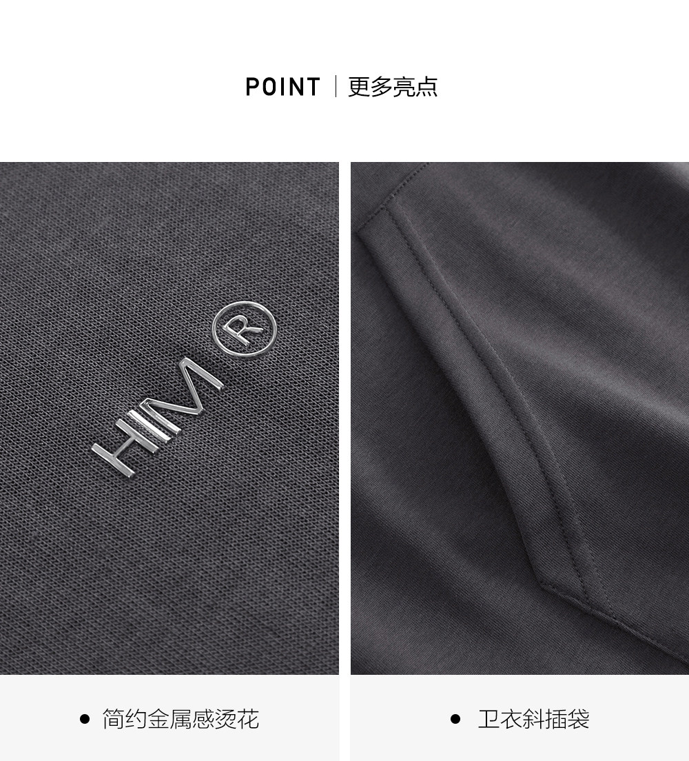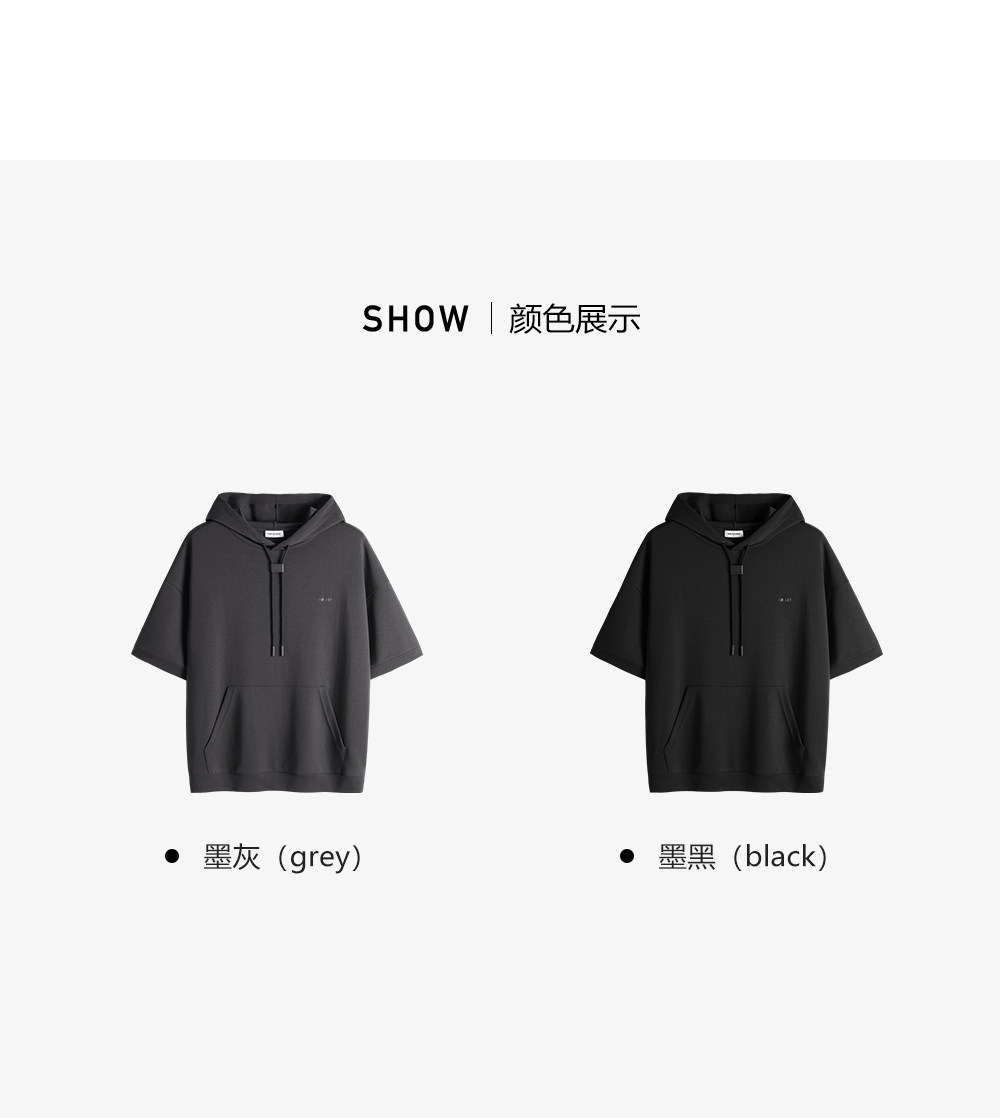 HIM漢崇 休闲百搭简约连帽卫衣男舒适微弹运动短袖帽衫 2026春夏