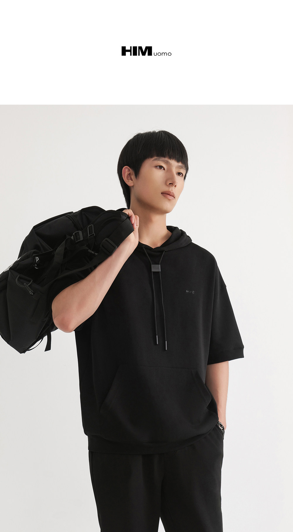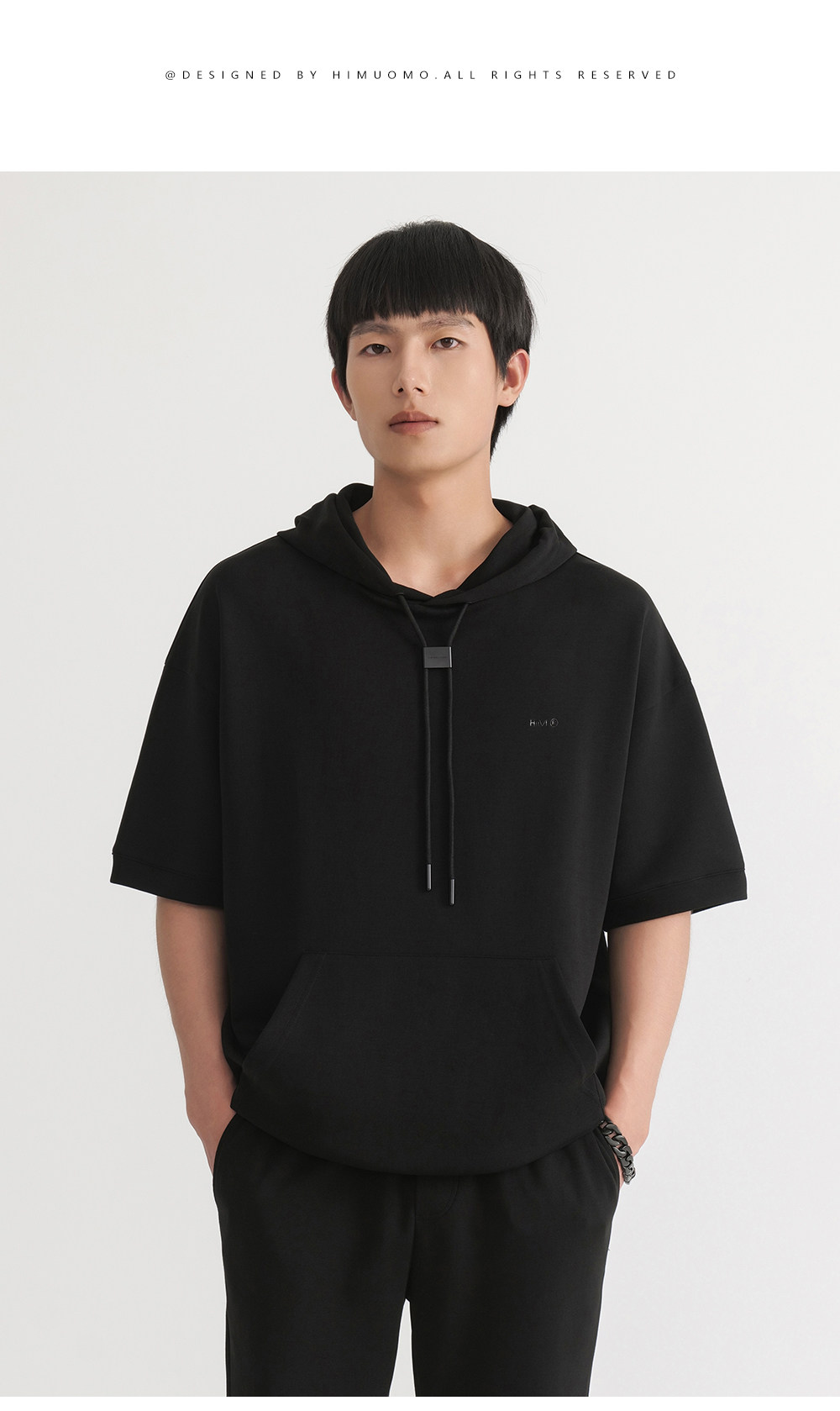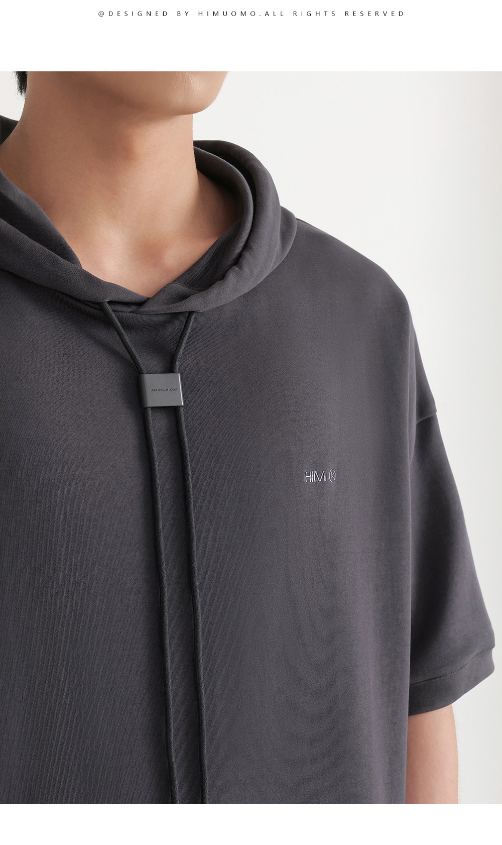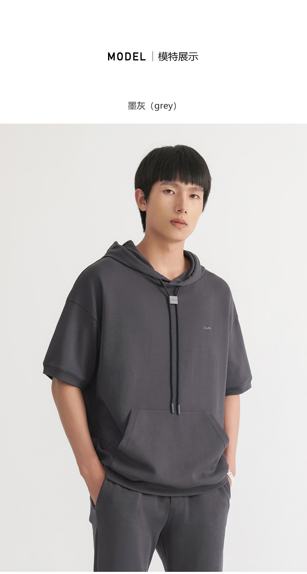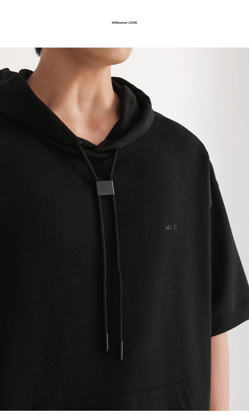 HIM漢崇 休闲百搭简约连帽卫衣男舒适微弹运动短袖帽衫 2026春夏