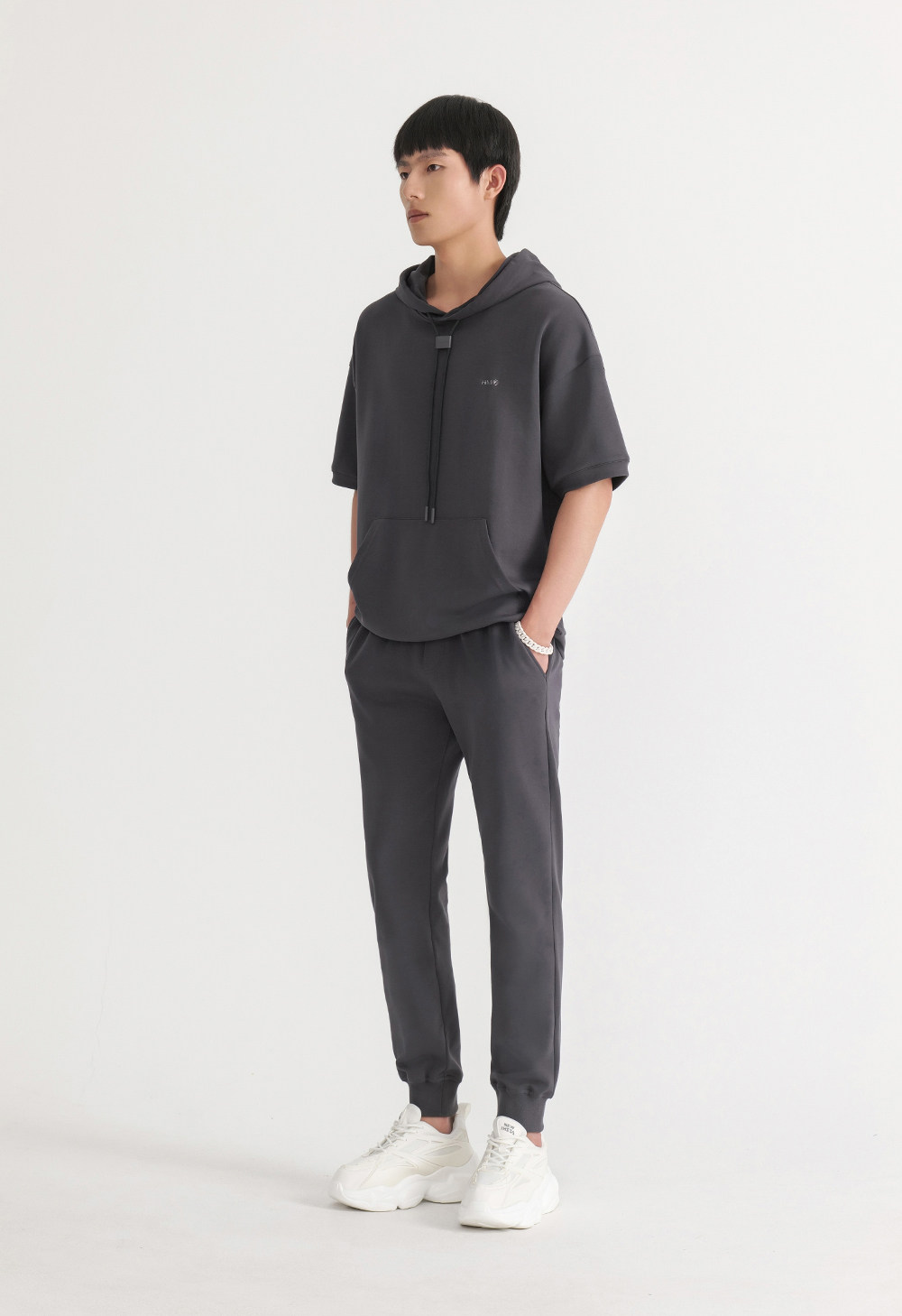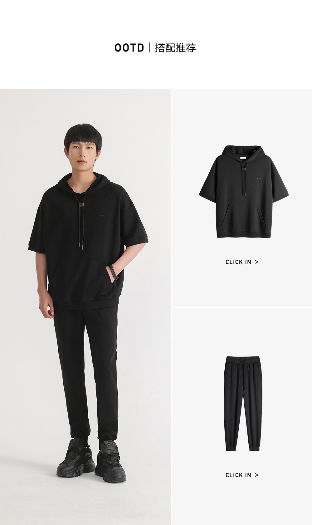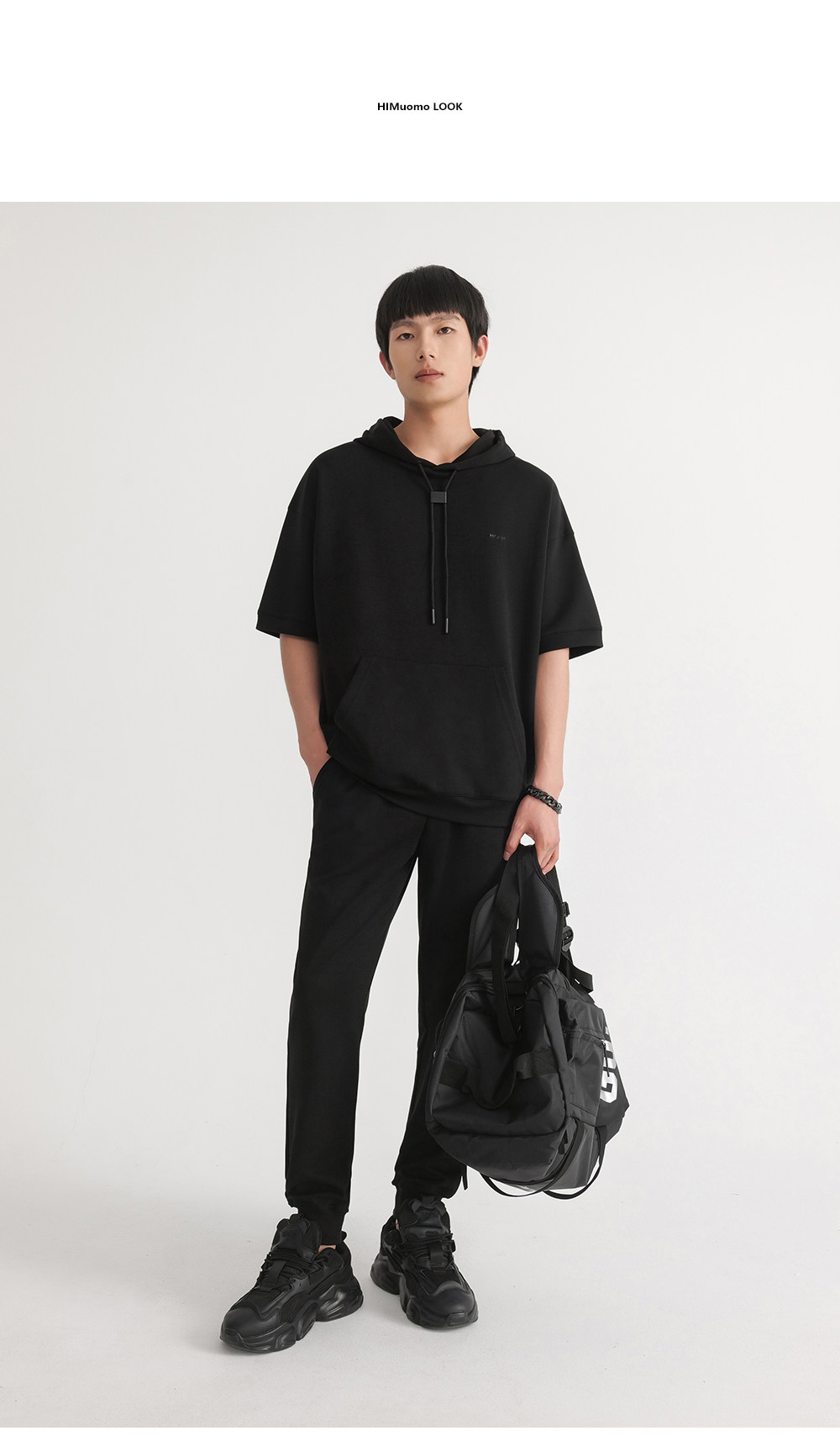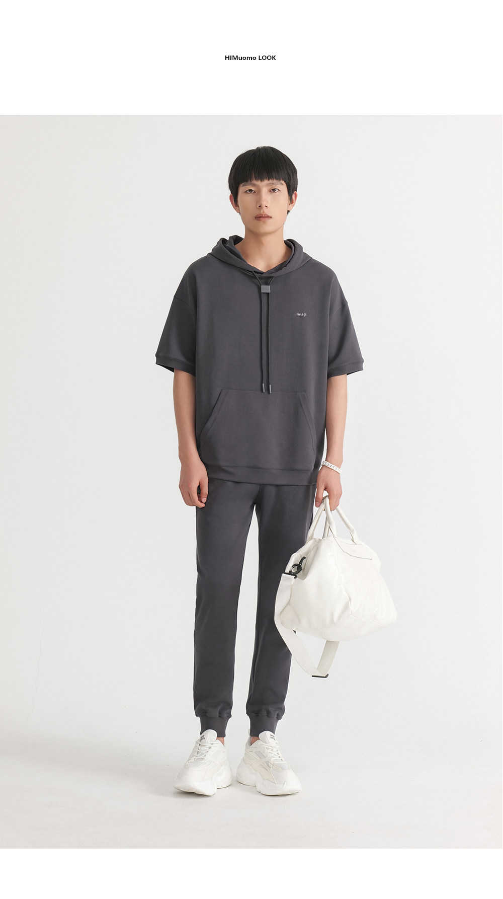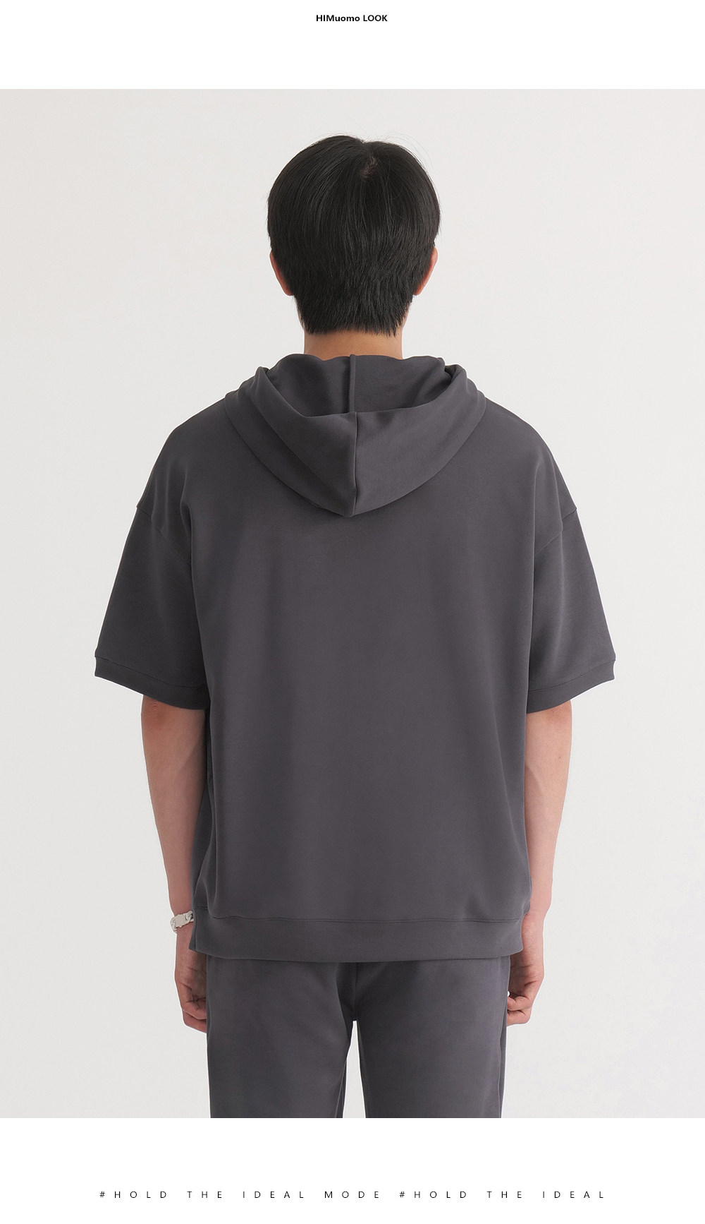 HIM漢崇 休闲百搭简约连帽卫衣男舒适微弹运动短袖帽衫 2026春夏