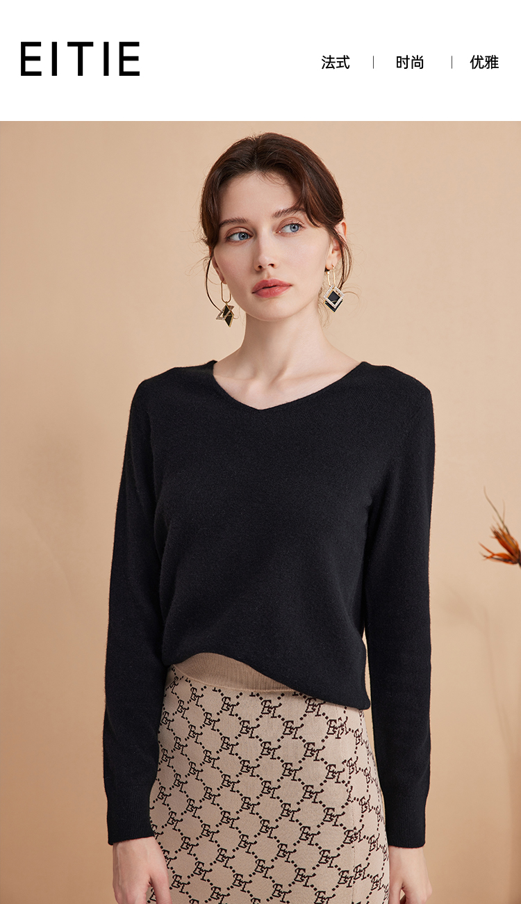 EITIE爱特爱秋季新款羊毛羊绒舒适保暖打底百搭针织衫D2401409