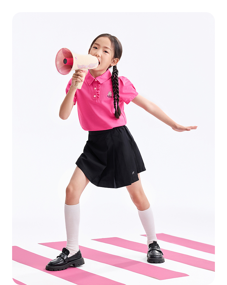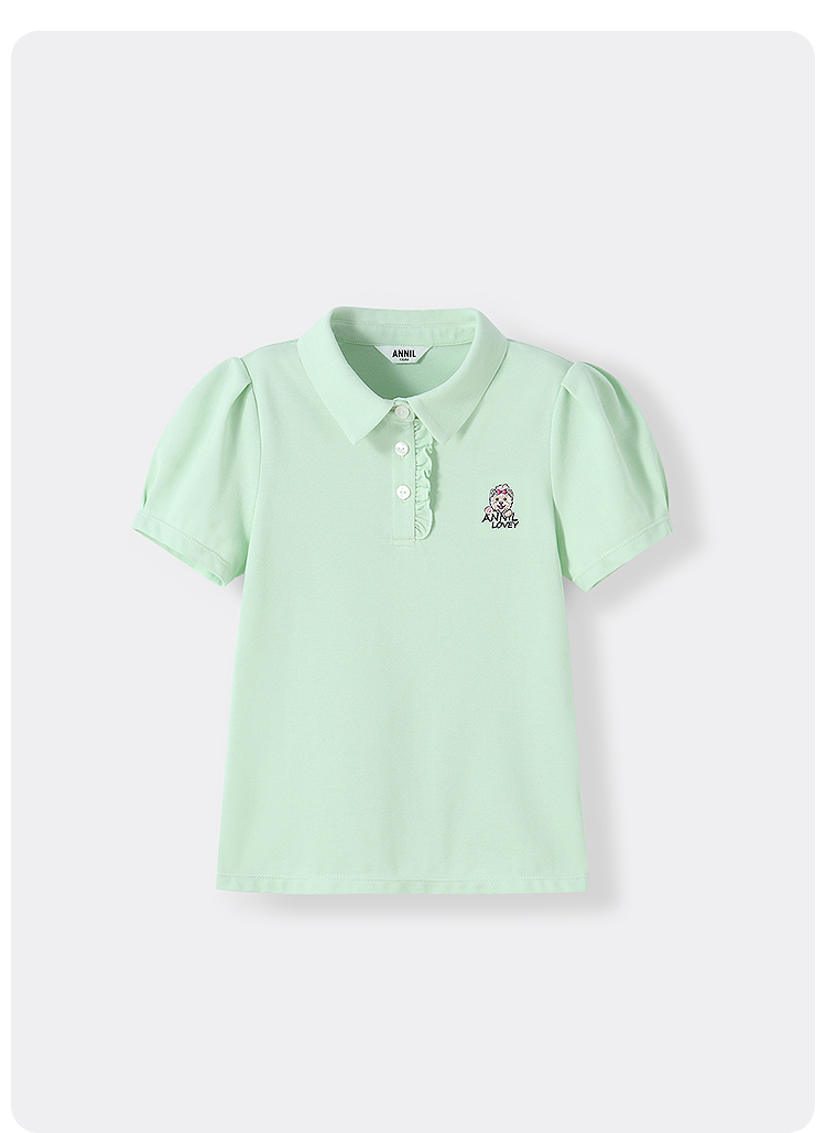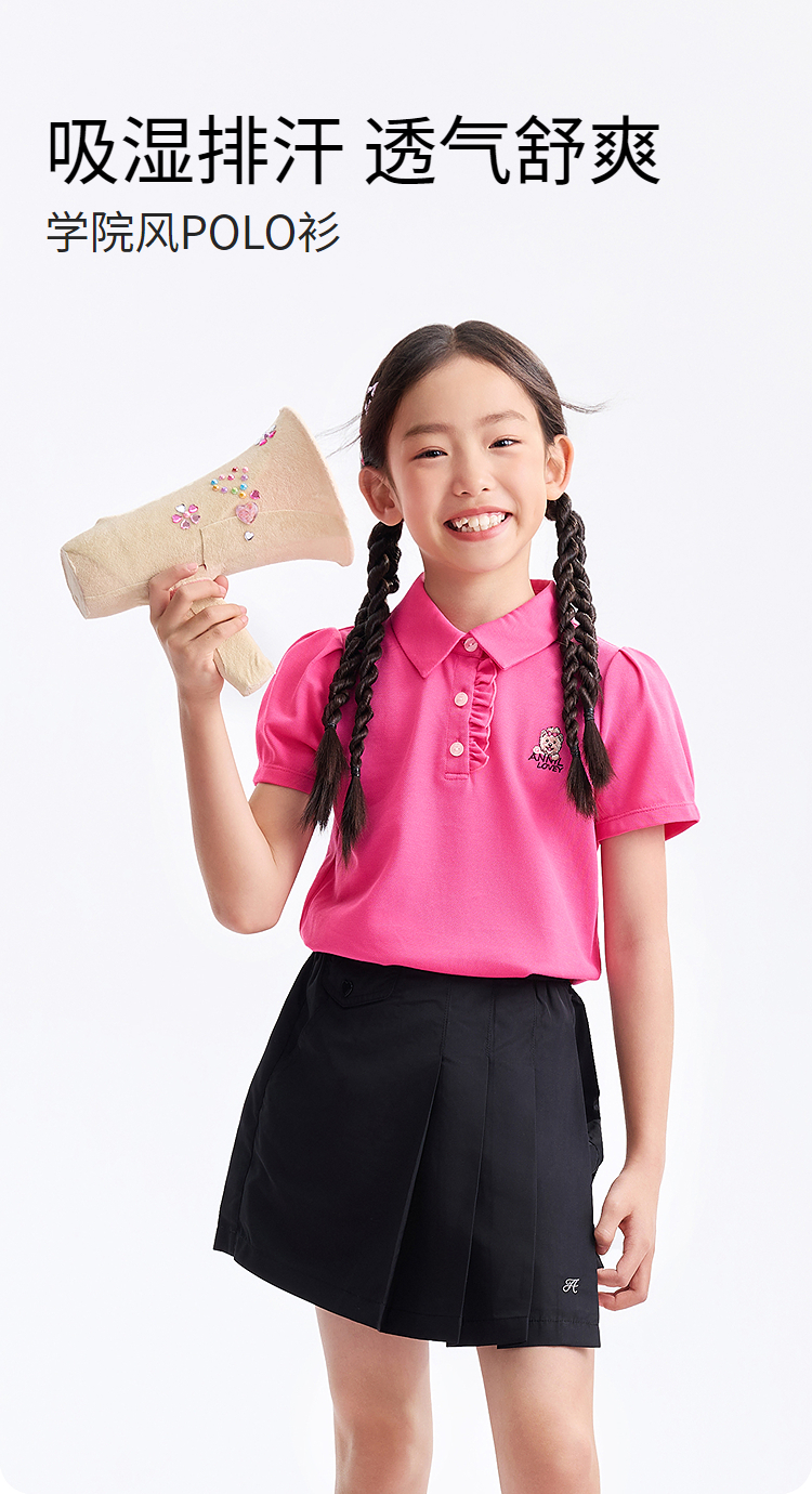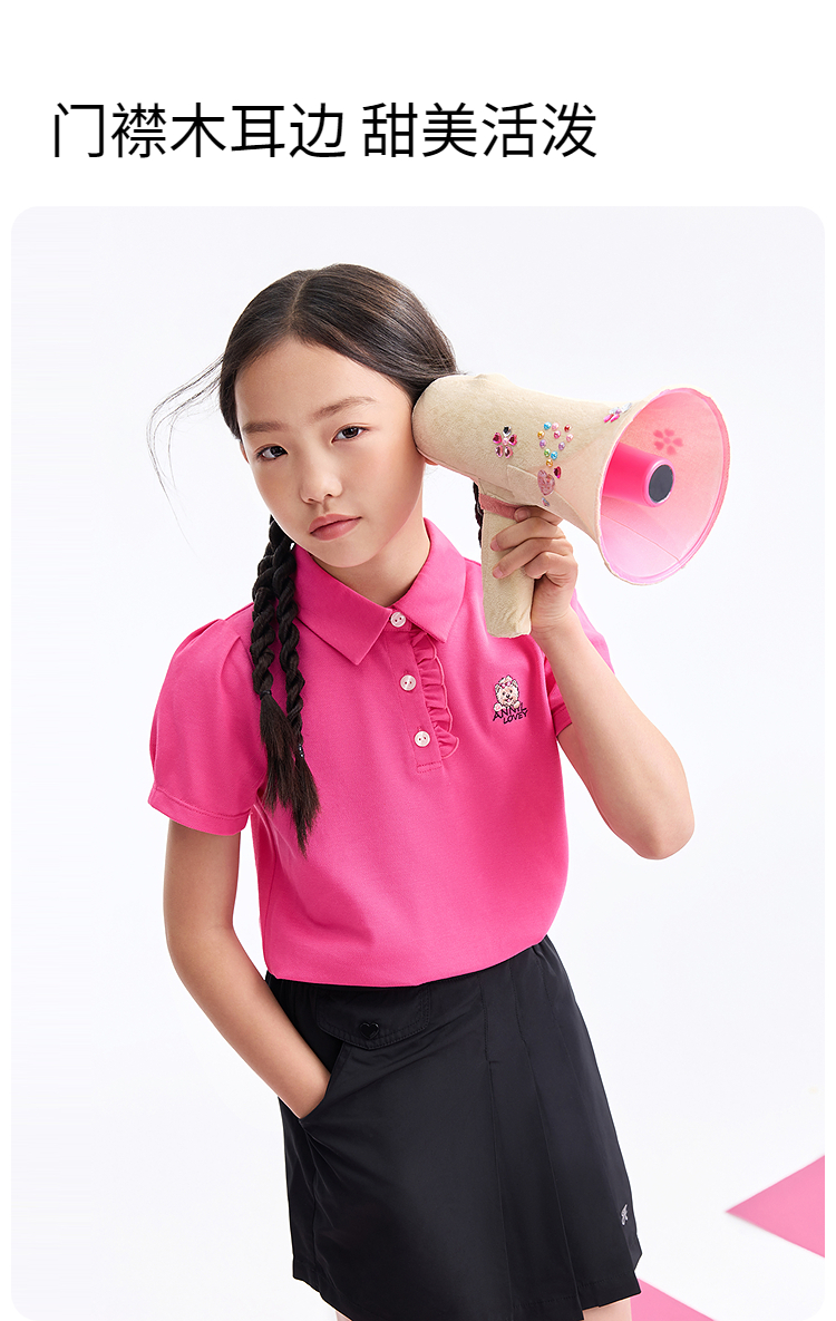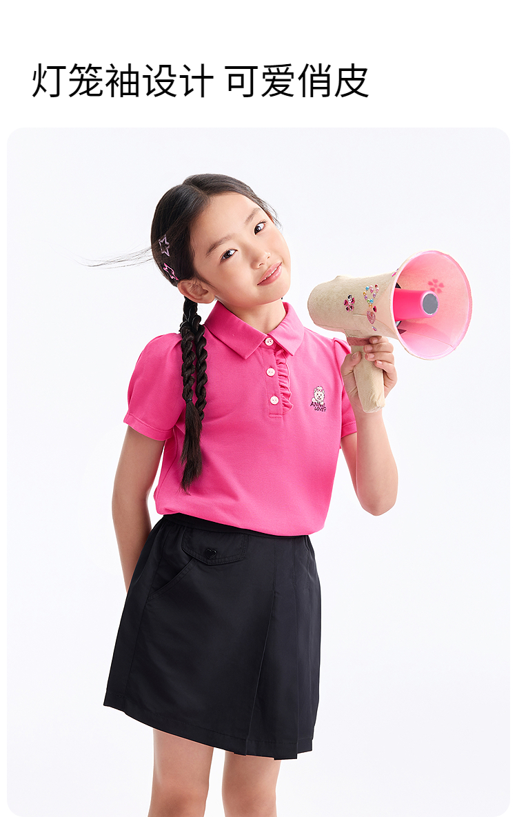 女童翻领短袖针织衫夏季新款安奈儿童装EG521217