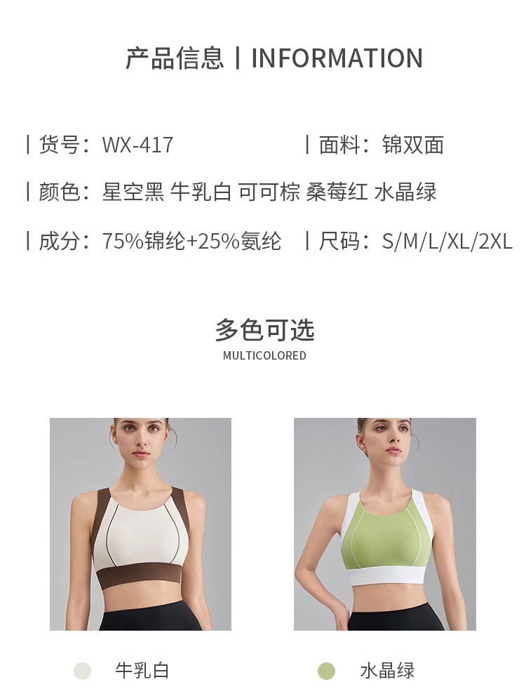 跃牌【美西西系列】新款春夏撞色固定杯运动内衣女高强度包裹瑜伽服跑步防震文胸WX-5928