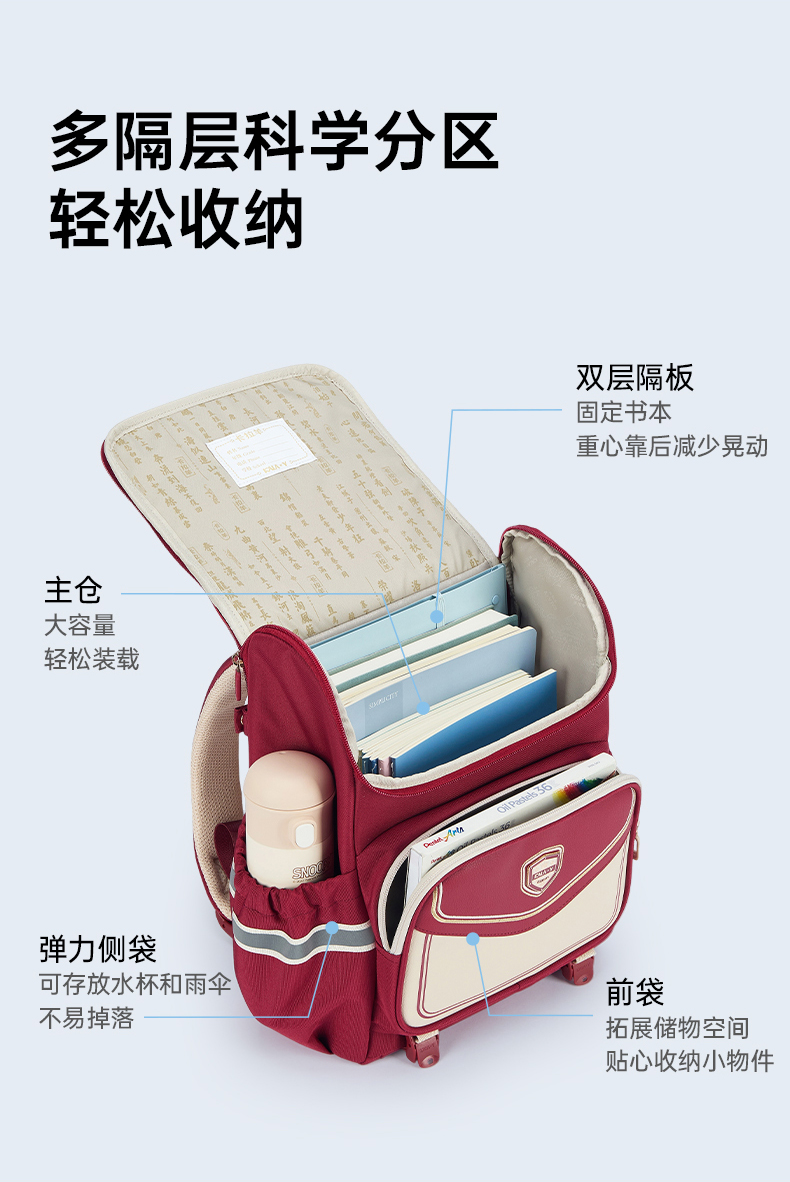 【大嘴书包3.0】卡拉羊小学生6维减负阻尼防下坠大嘴书包大容量双肩背包未来式CX2291+2585