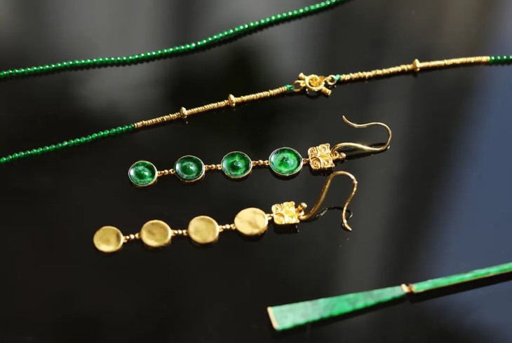黄金翠玉从来都是最佳搭档,这一手扣子,颜色极其美貌,难以求寻。