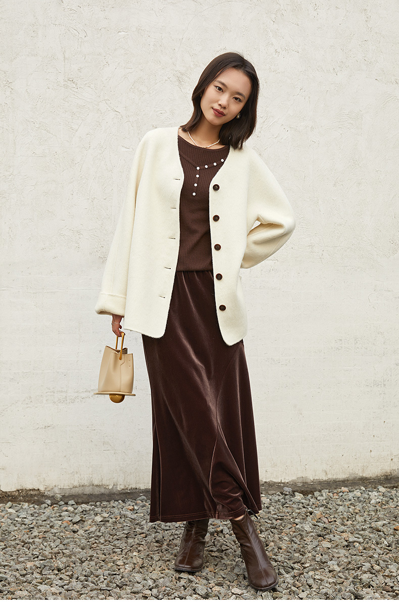 轻奢高级感高腰假两件开叉半身裙女 灰色大口袋显瘦 A 字中长款西装裙 通勤气质