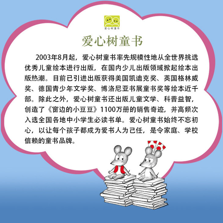 “可爱的鼠小弟”系列是日本绘本作家中江嘉男和上野纪子的不朽经典,自1974年问世以来就深受孩子们的喜爱,囊括了日本各大童书奖项,被誉为“世界绘本经典中的经典”。自2005年引进出版后,该系列长期位于儿童畅销书排行榜前列,销量累计超过1200万册,成为广受欢迎的儿童早期阅读启蒙读物。小小的、善良的鼠小弟成为了几代孩子难忘的童年伙伴。透过鼠小弟,孩子们看到真善美,并在感动中体验爱与被爱的快乐,人与人之间交往的真谛。