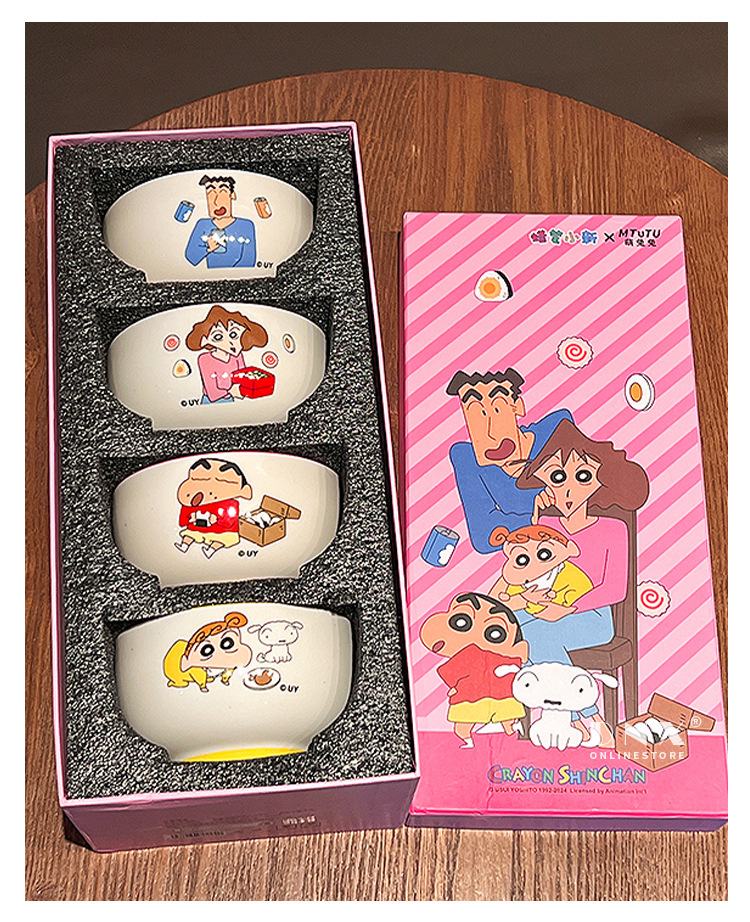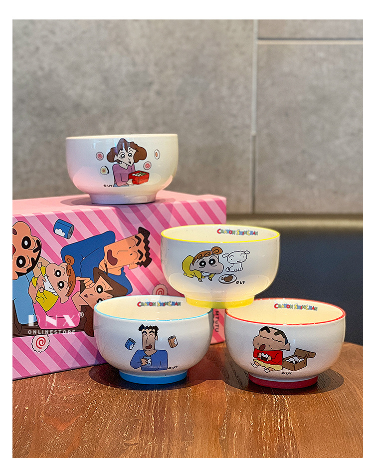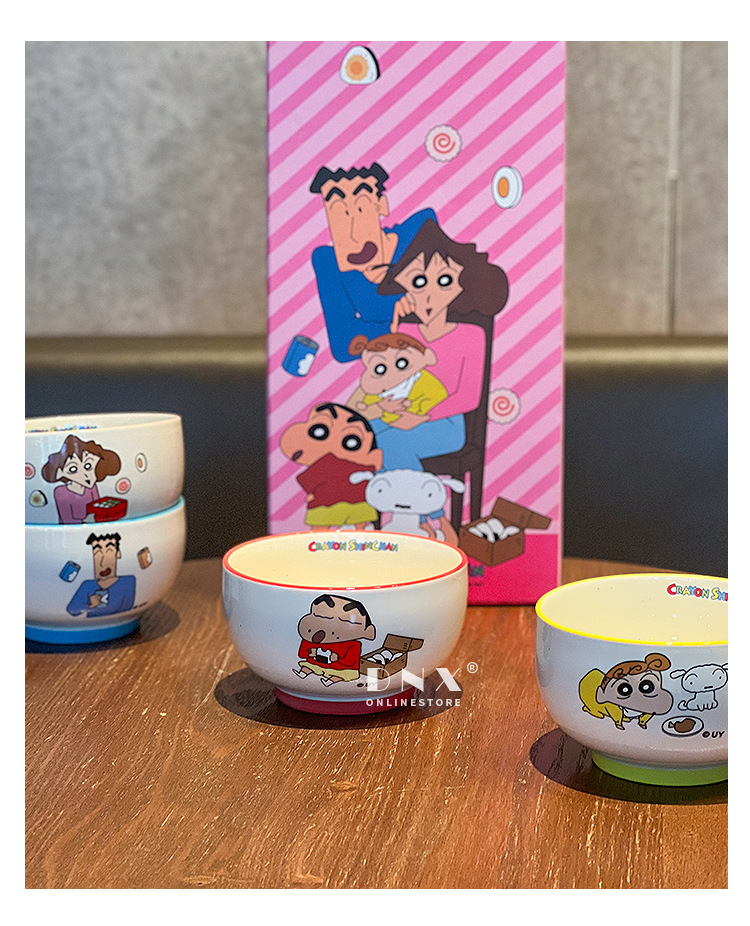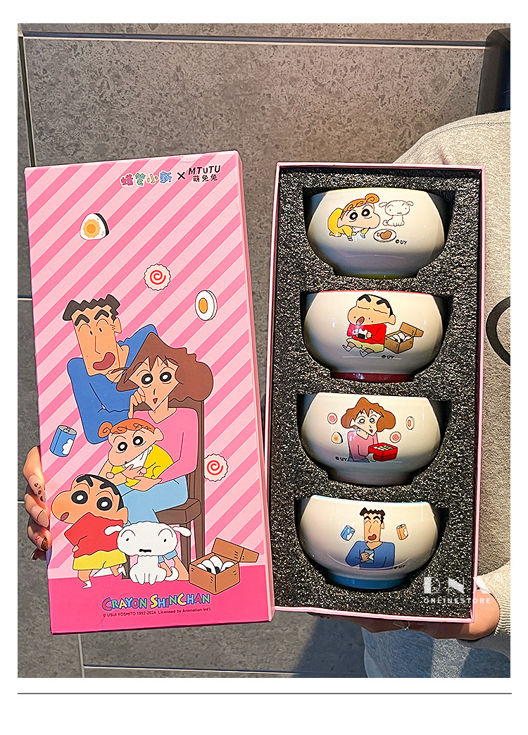 【小新家庭陶瓷套装,高颜值新款!】蜡笔小新家庭陶瓷套装 儿童新款高颜值米饭碗 家用汤碗礼盒 生日礼物儿童节礼物-QQ