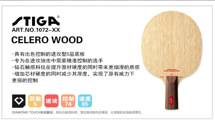 STIGA斯帝卡CE-CELERO WOOD赛睿木5层纯木乒乓底板斯蒂卡