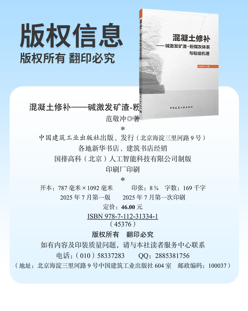 书名:混凝土修补--碱激发矿渣-粉煤灰体系与粘结机理